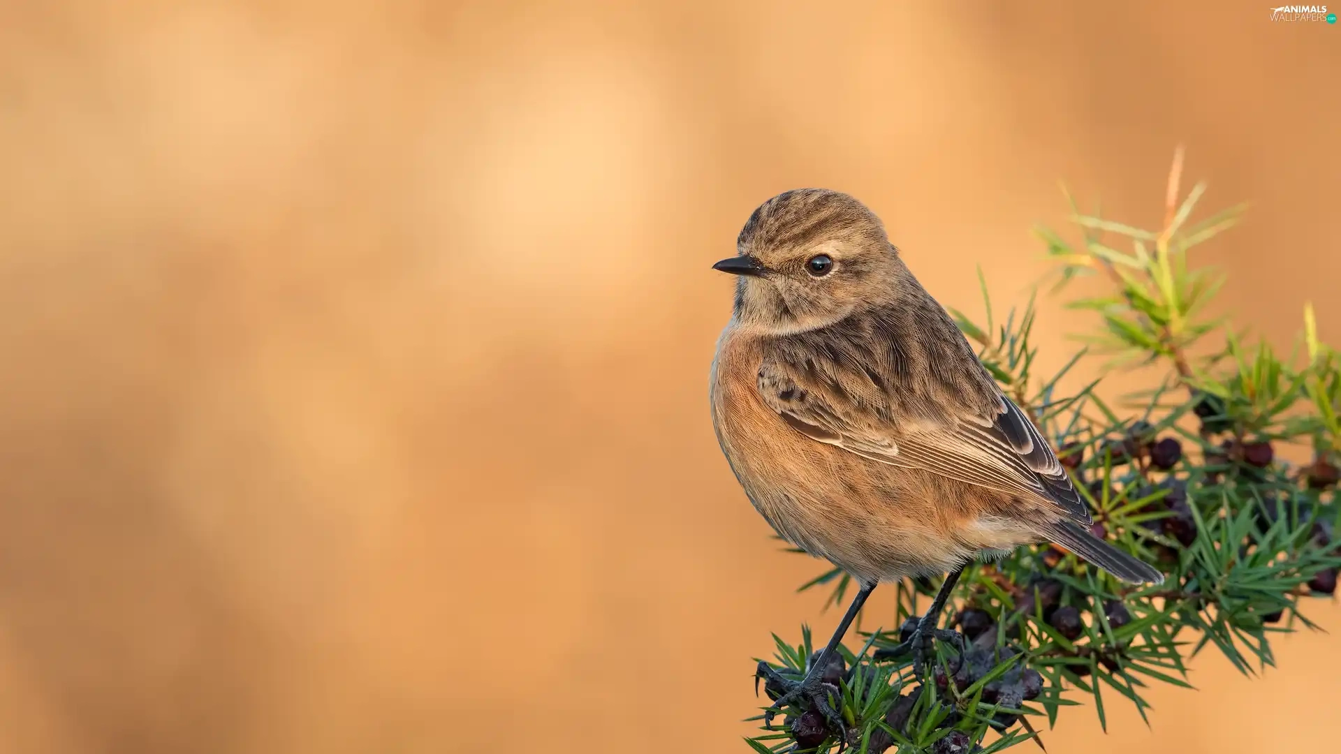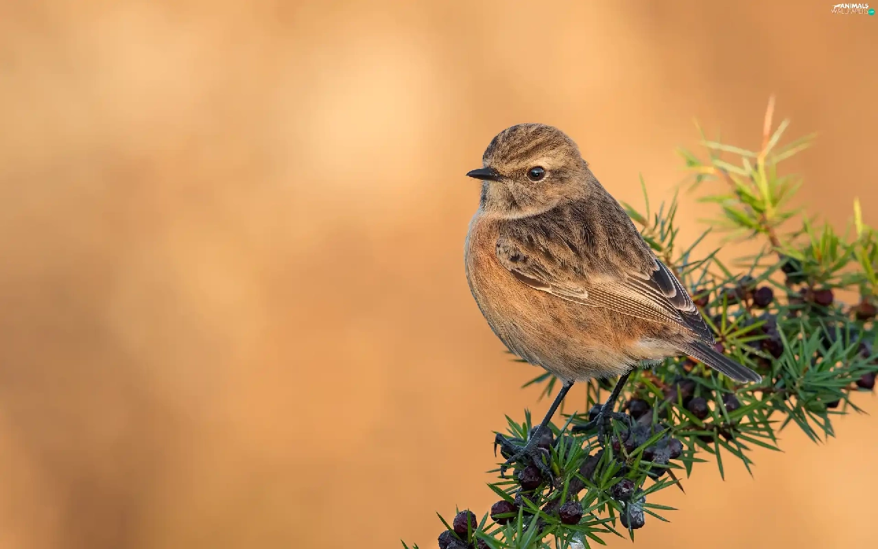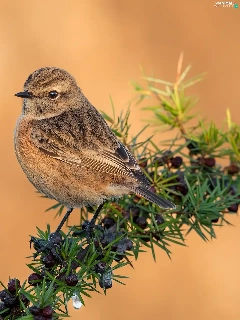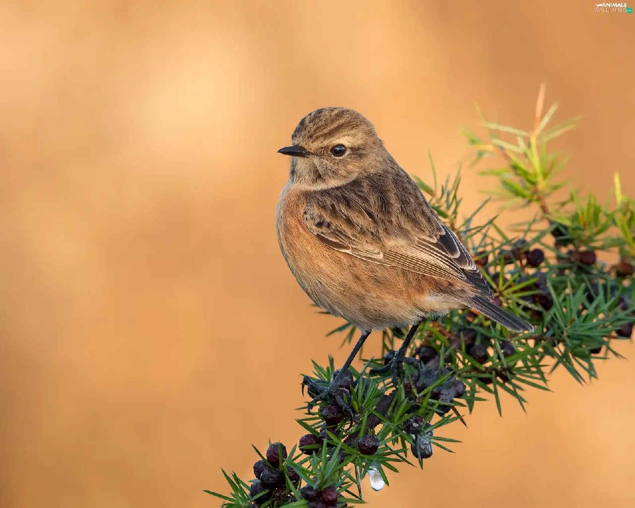 Bird, female, twig, European Stonechat