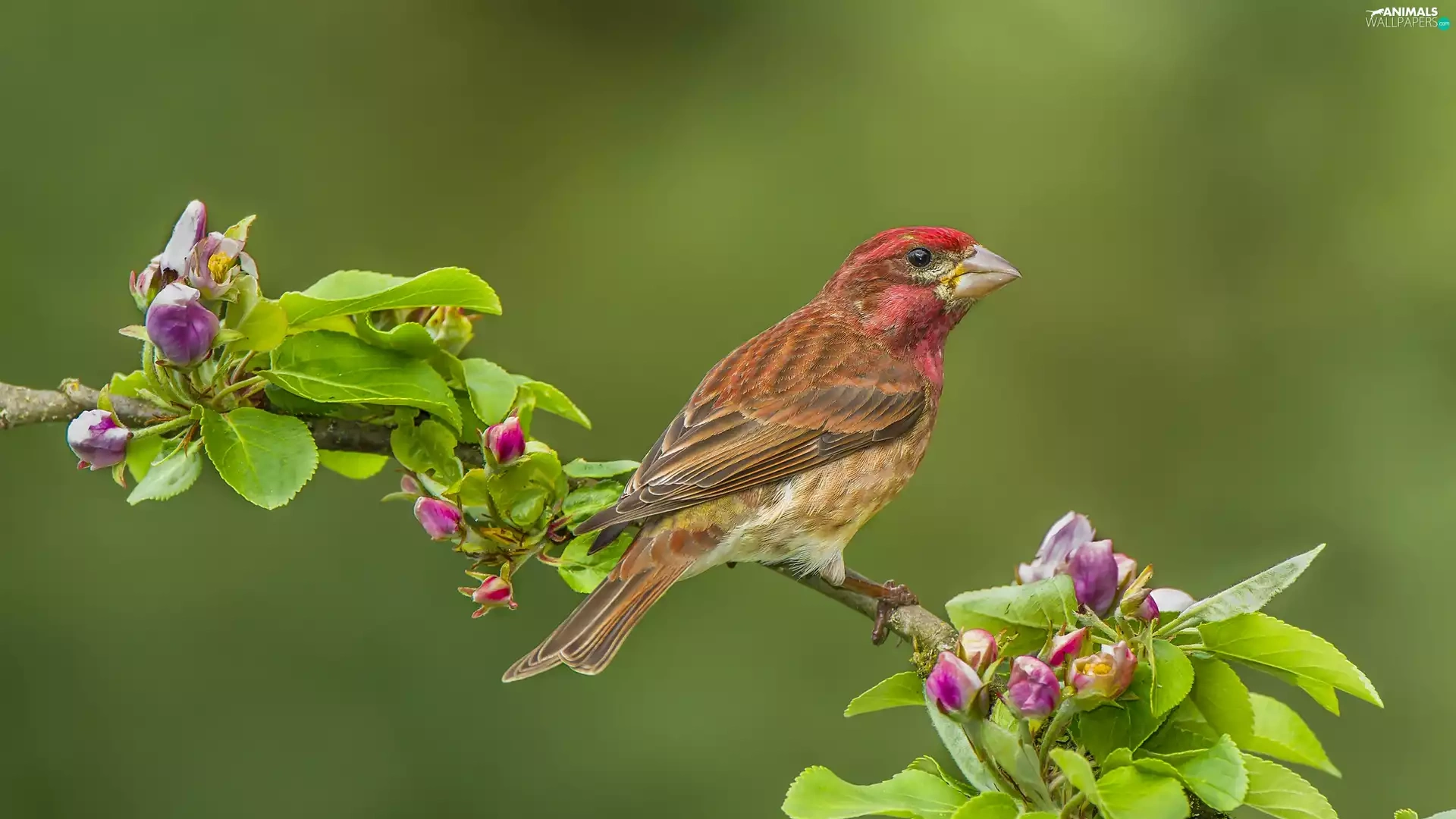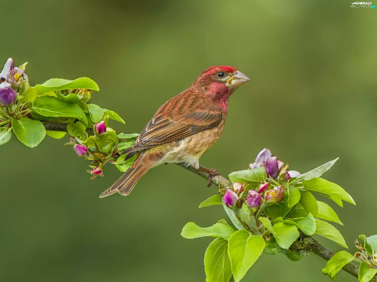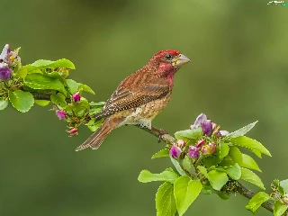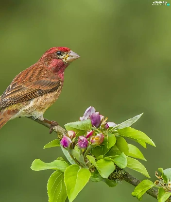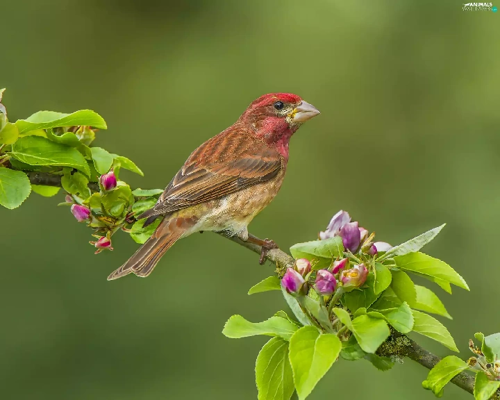Bird, twig, Flower, House Finch
