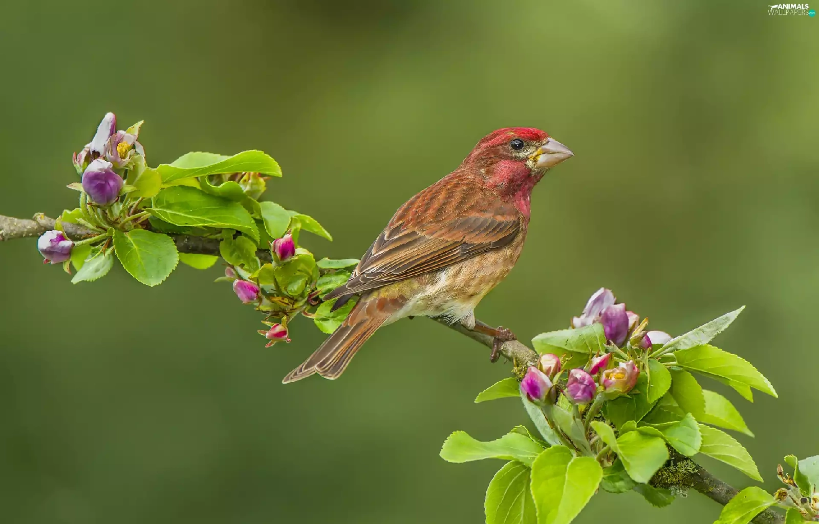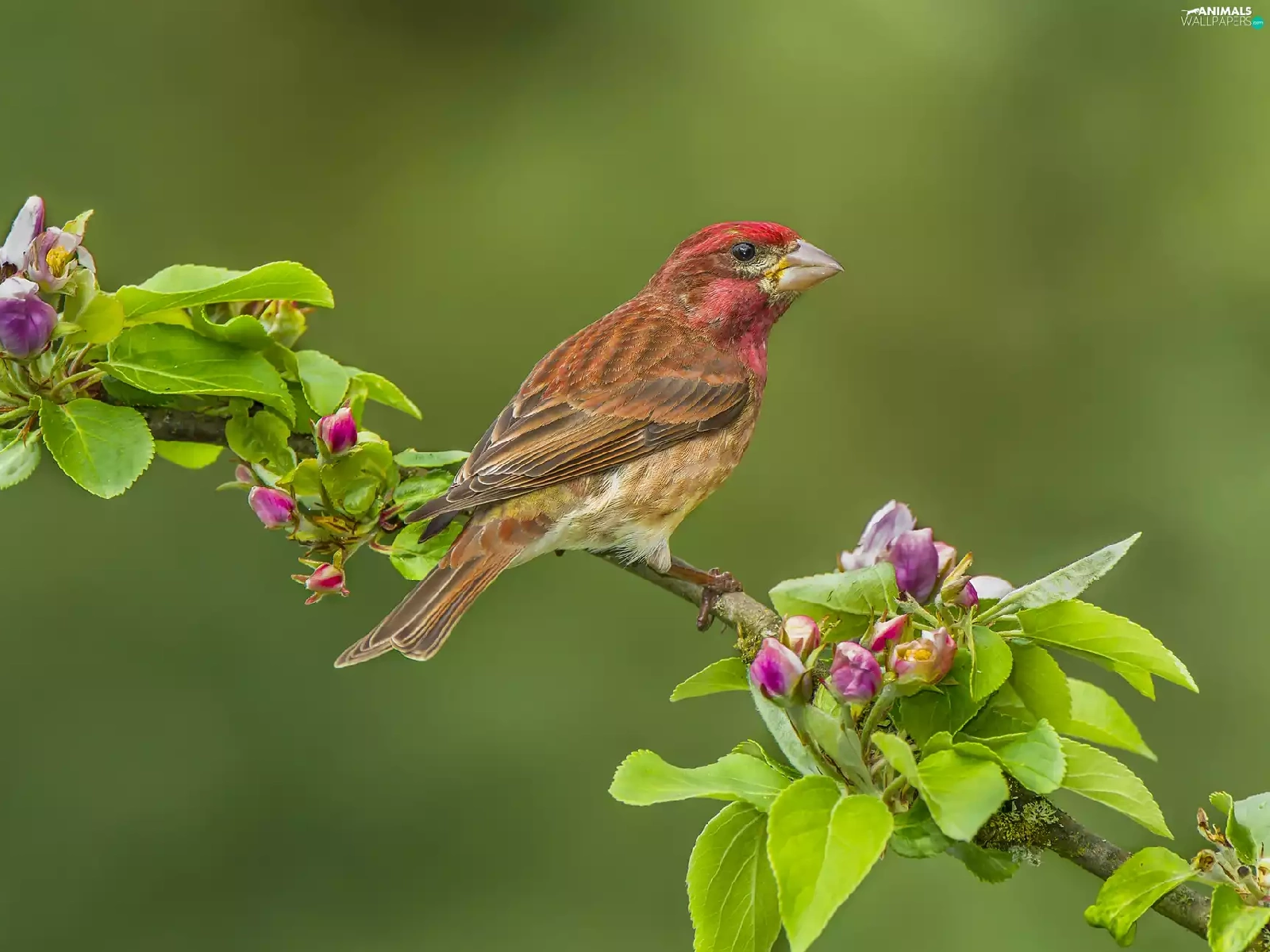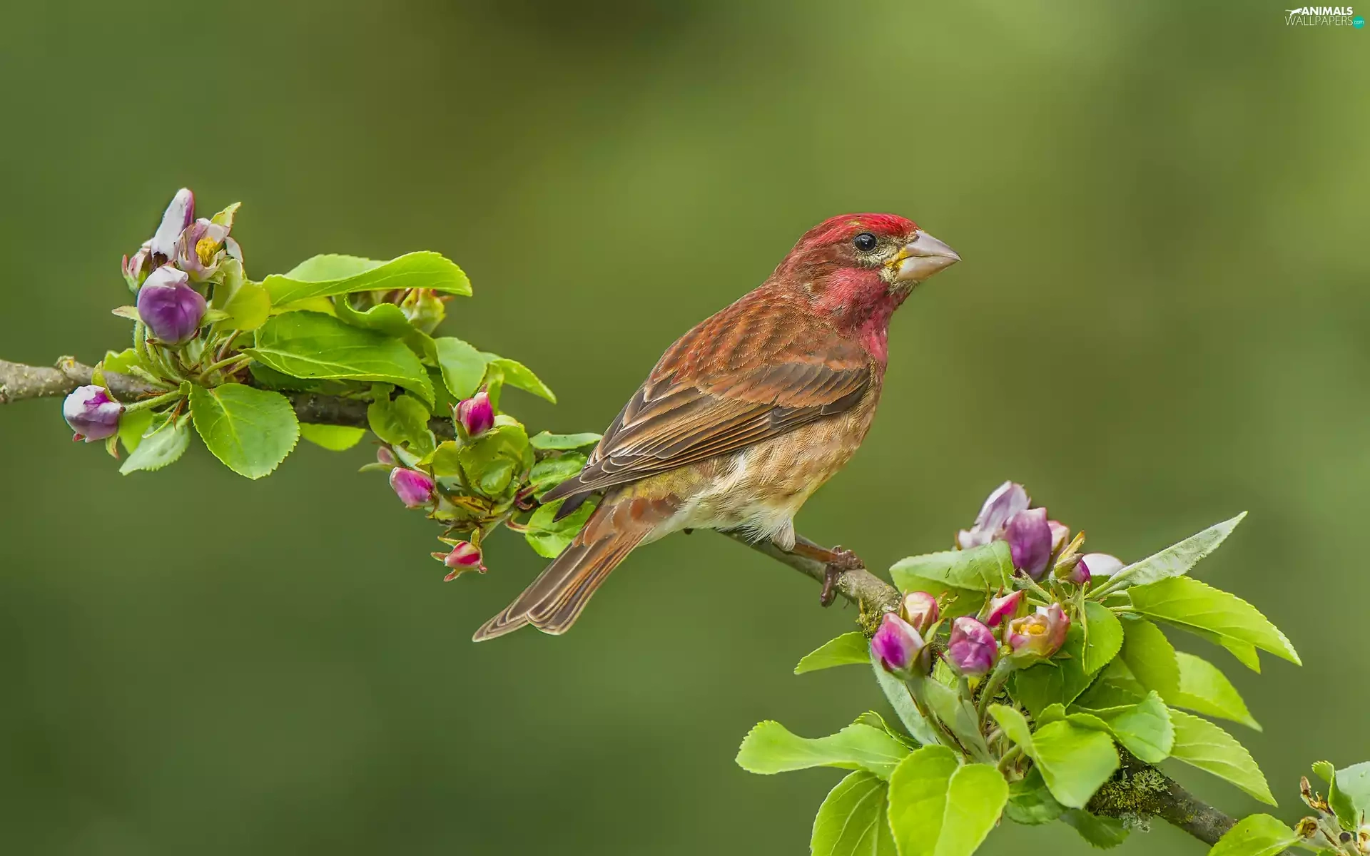 Bird, twig, Flower, House Finch