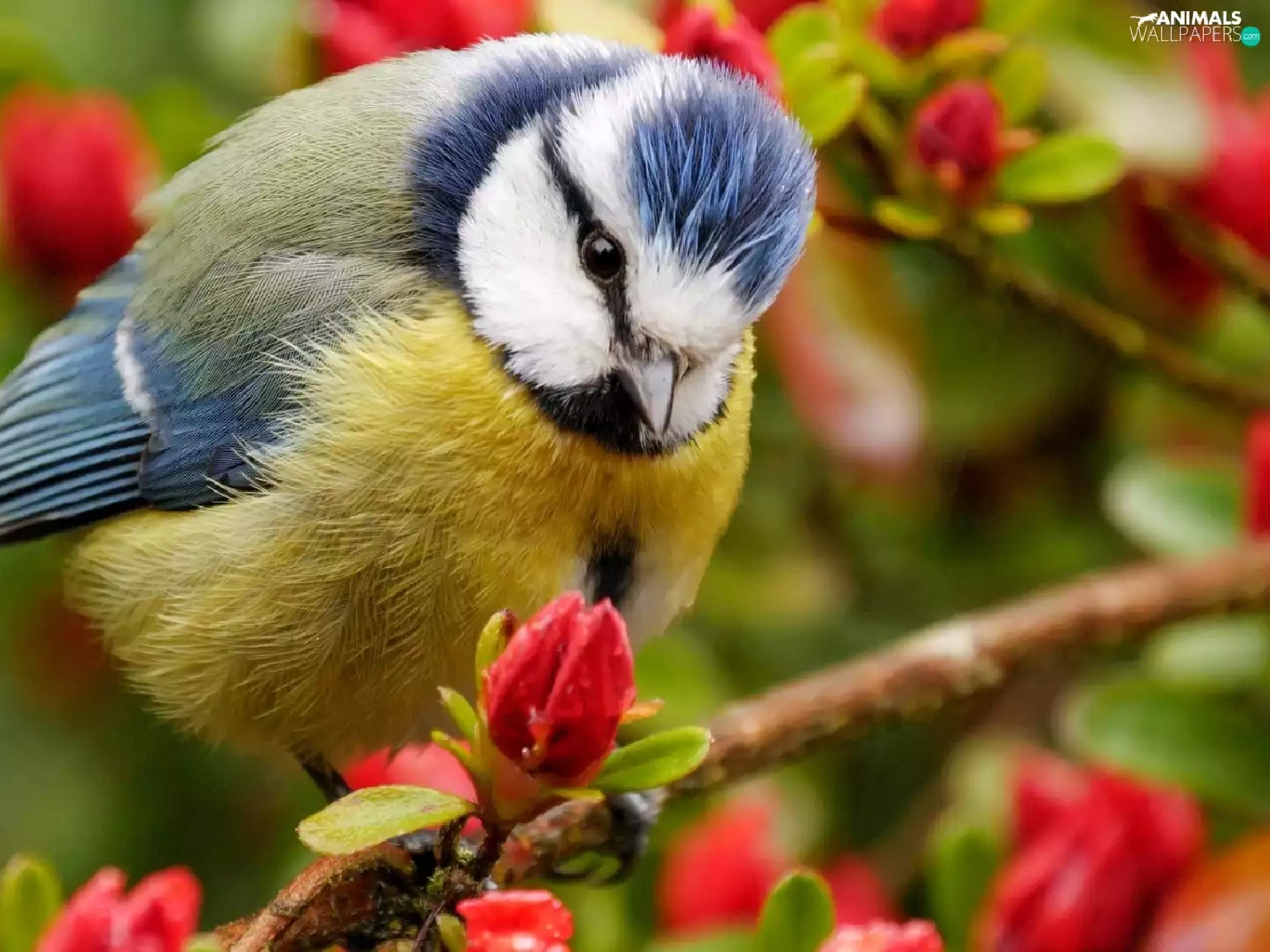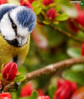 tit, twig, Flowers, Blue Tit