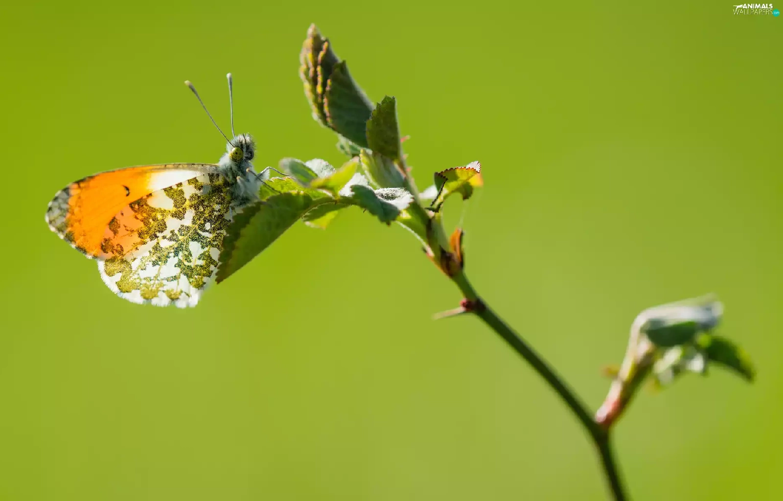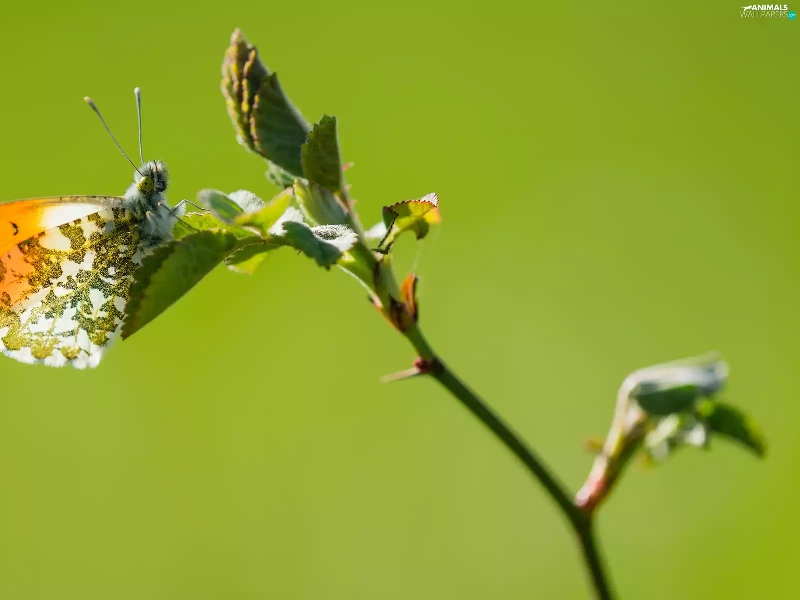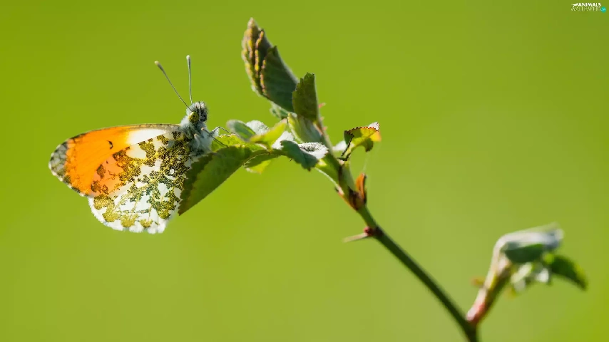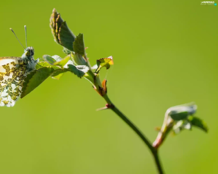 butterfly, twig, rapprochement, Orange Tip