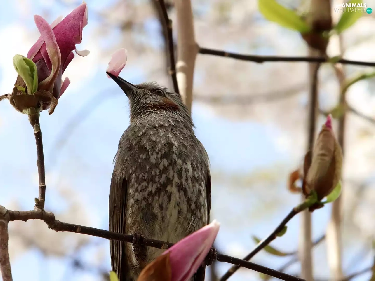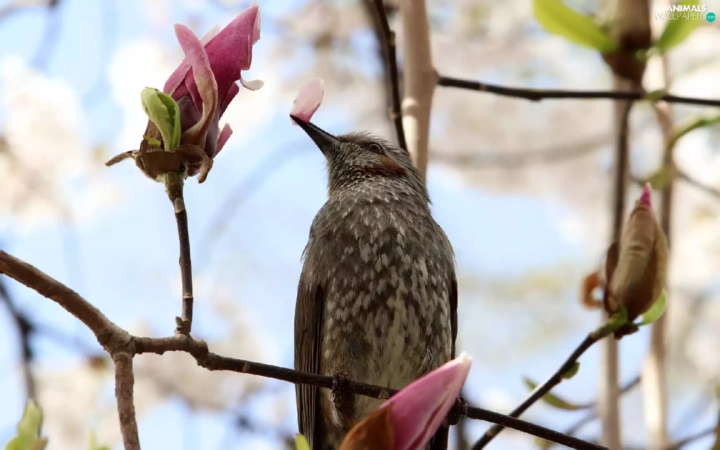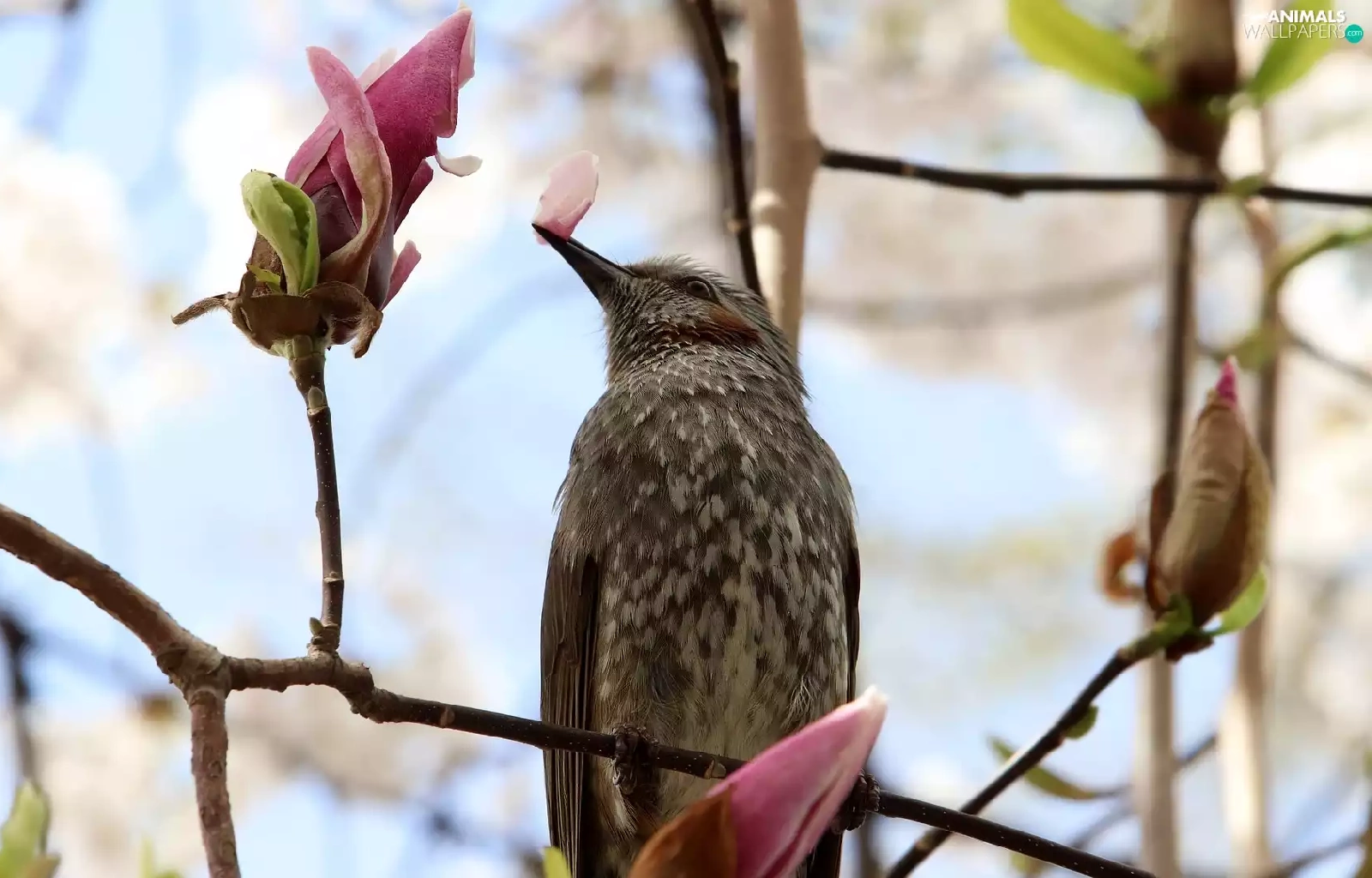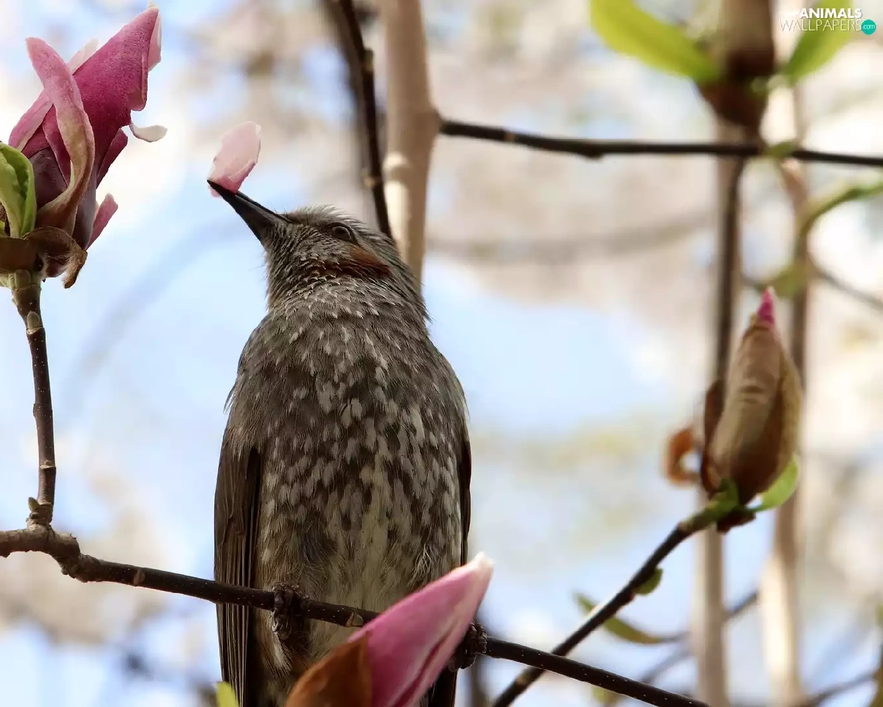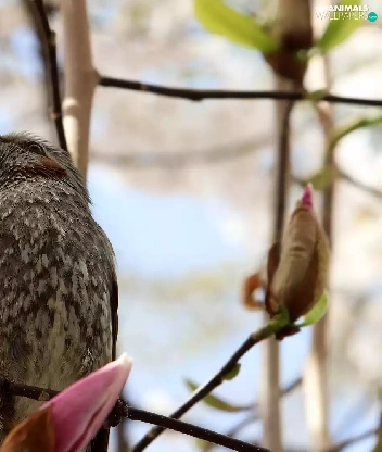 Bird, Magnolia, Buds, Twigs