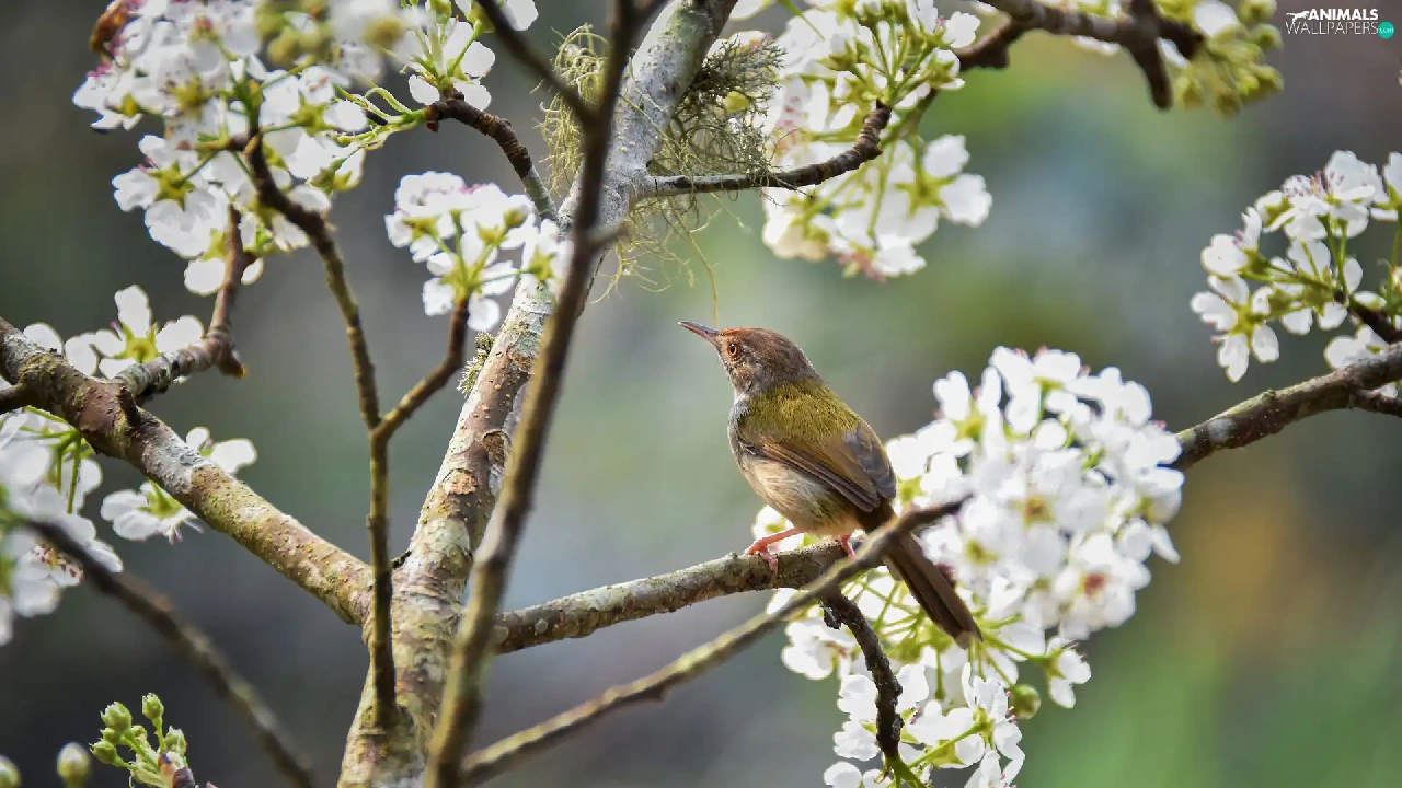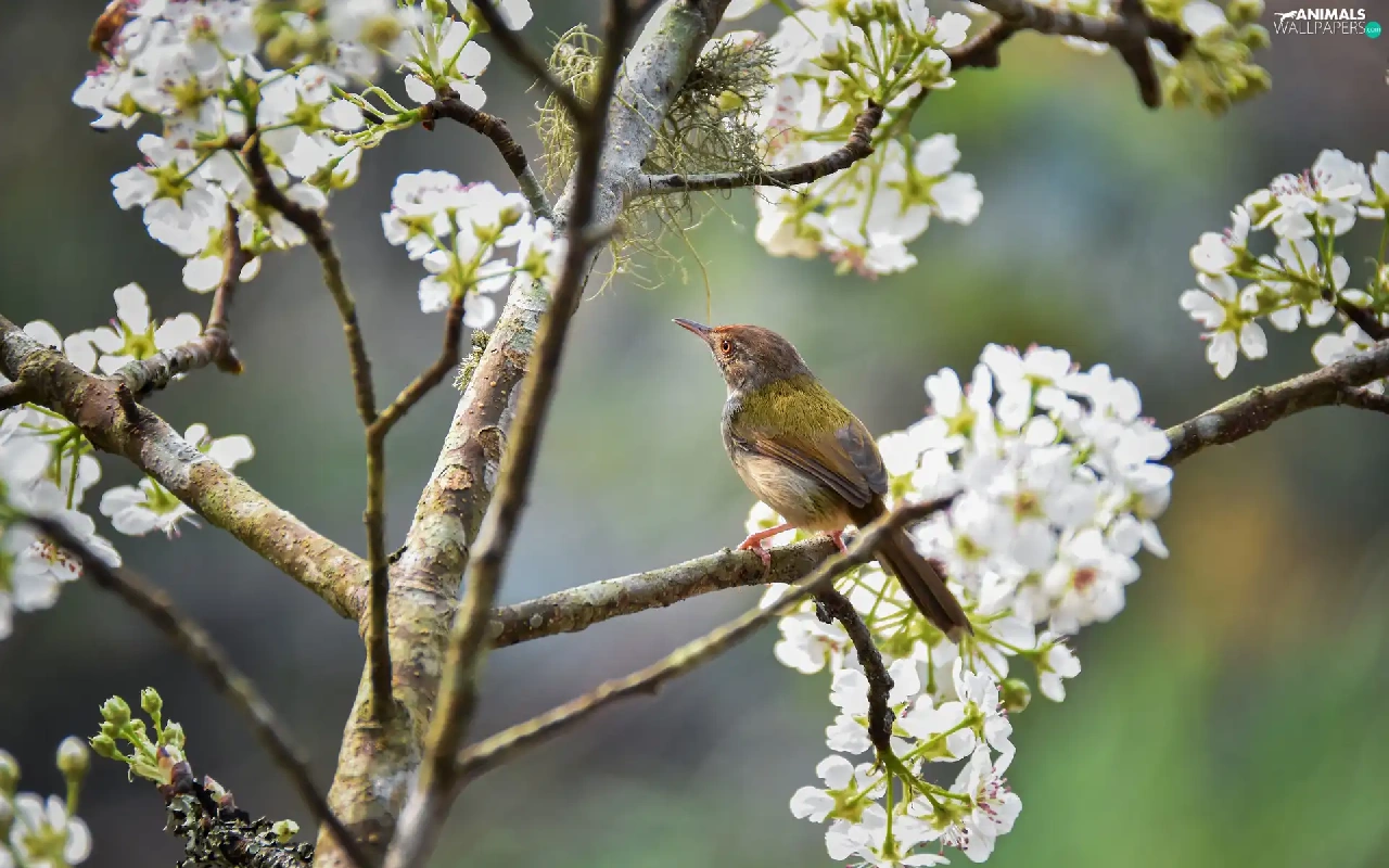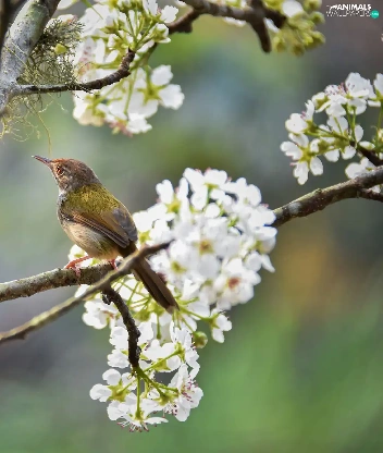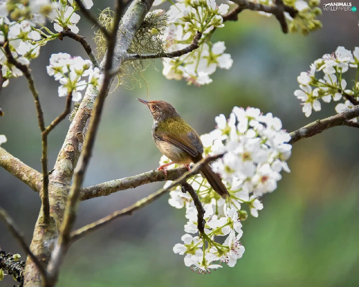 Bird, Fruit Tree, Twigs