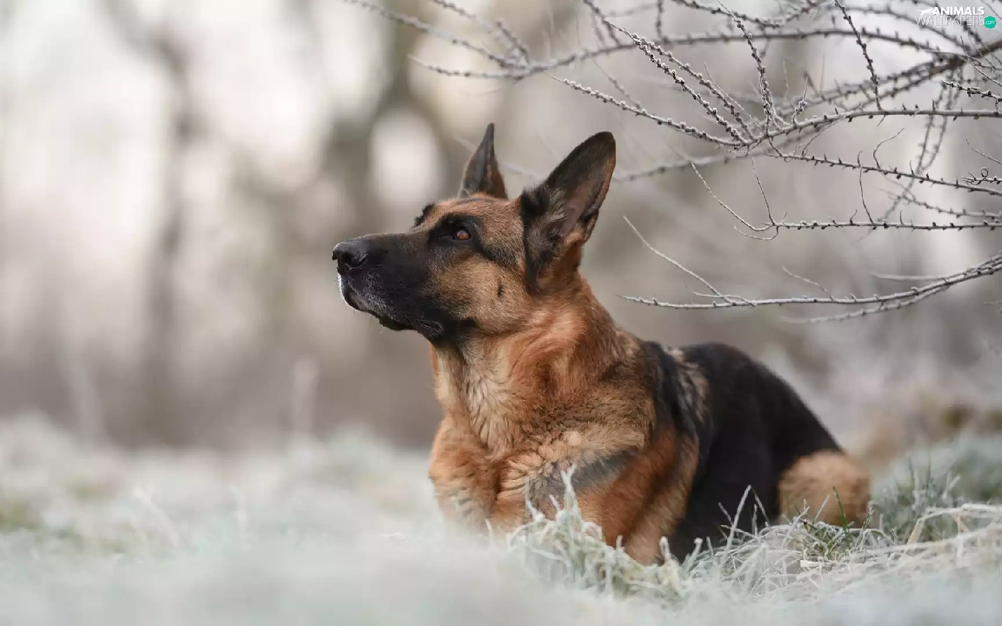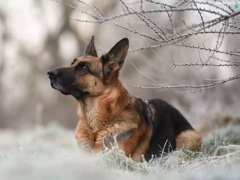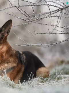 dog, Twigs, grass, German Shepherd