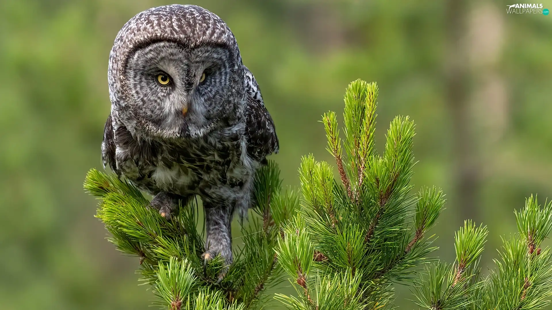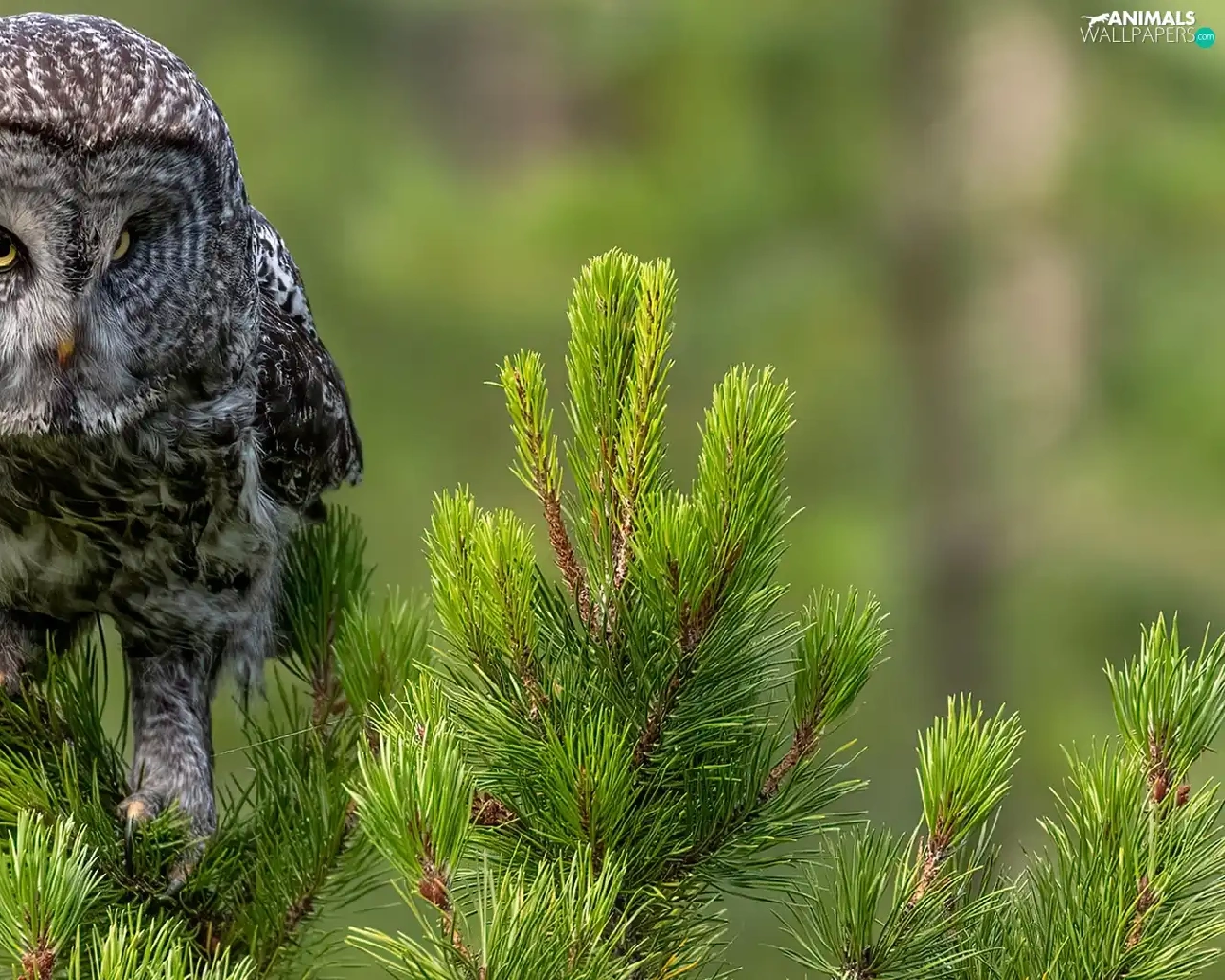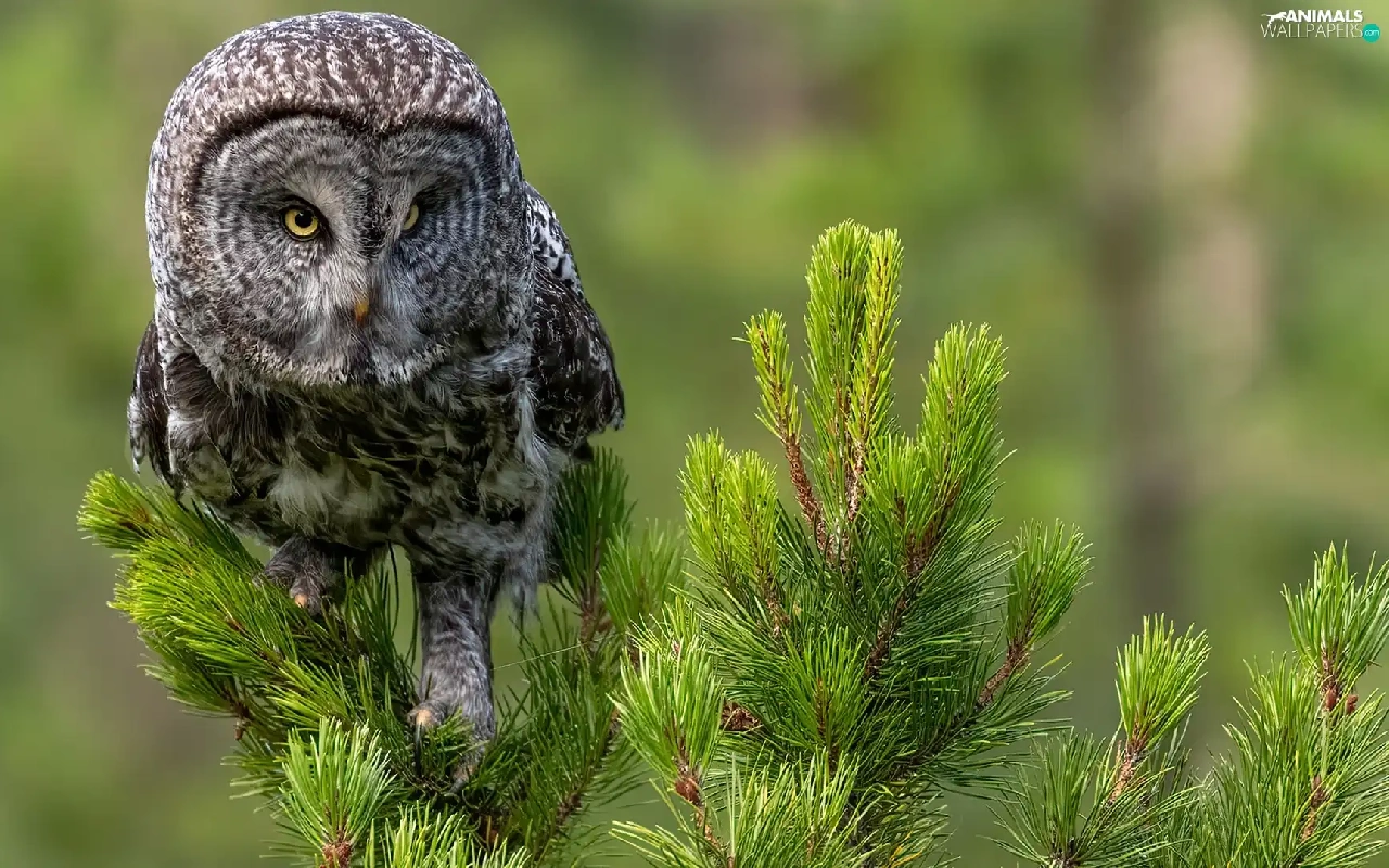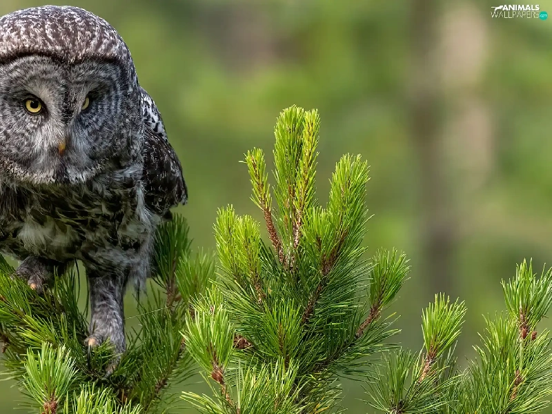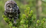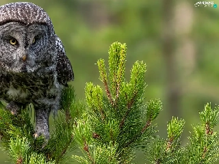 Twigs, spruce, owl, Tawny owl great gray owl, Bird