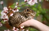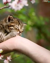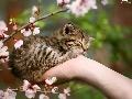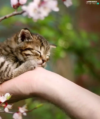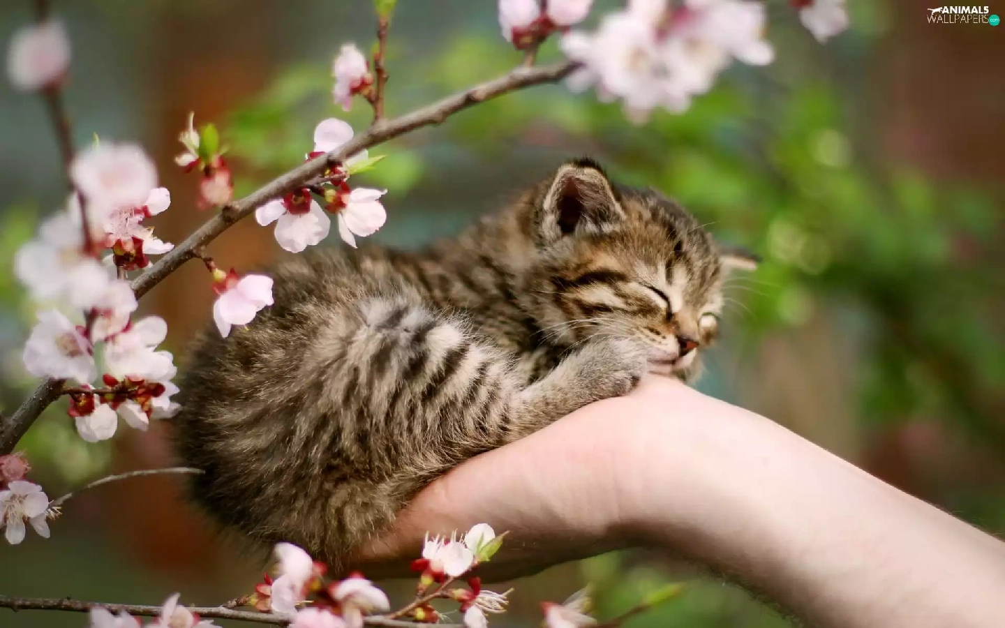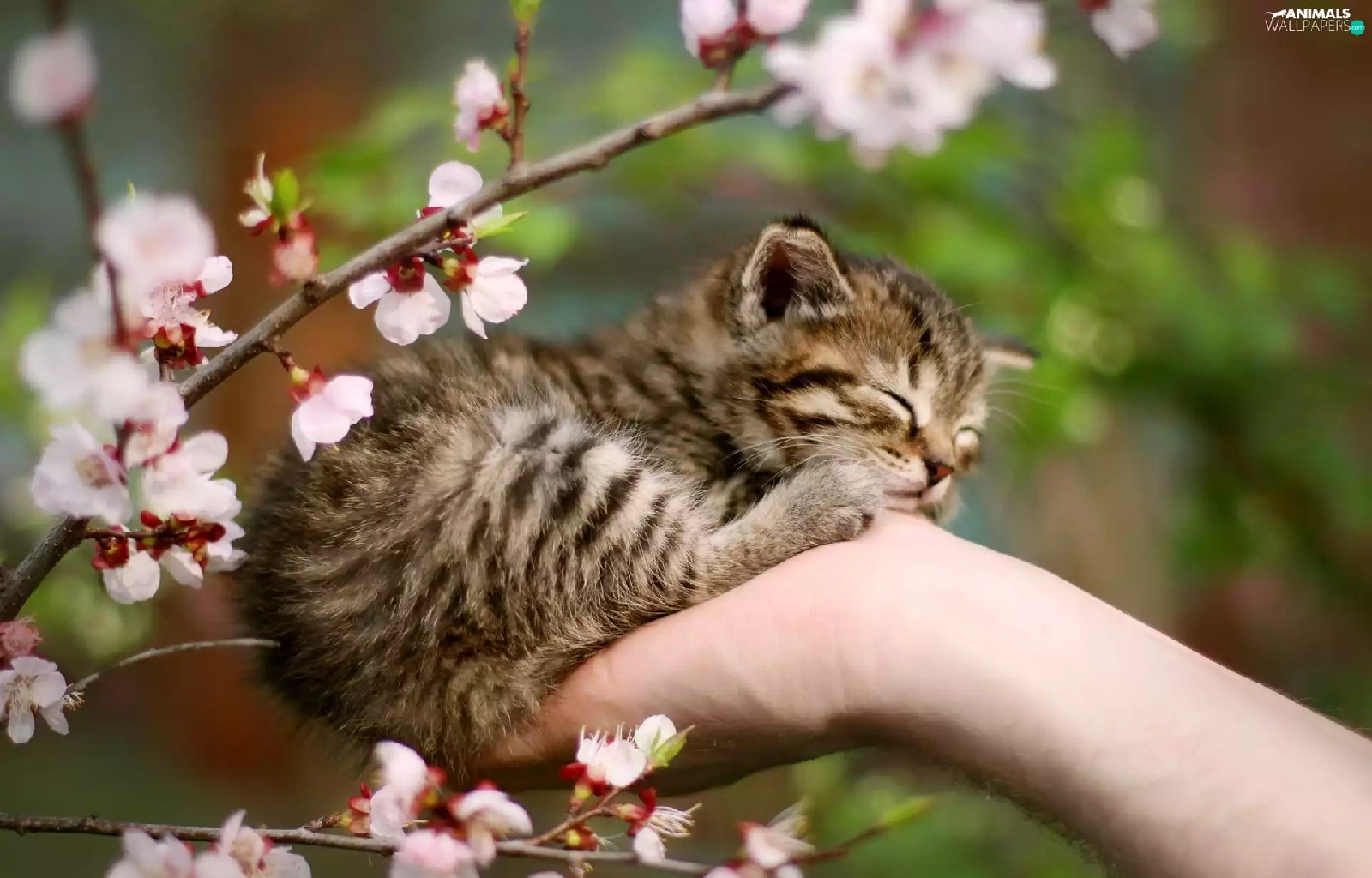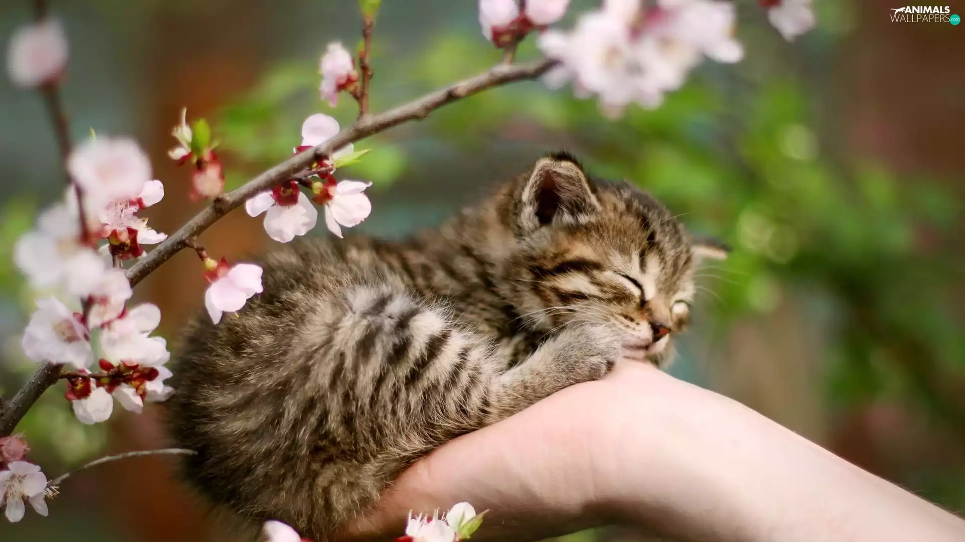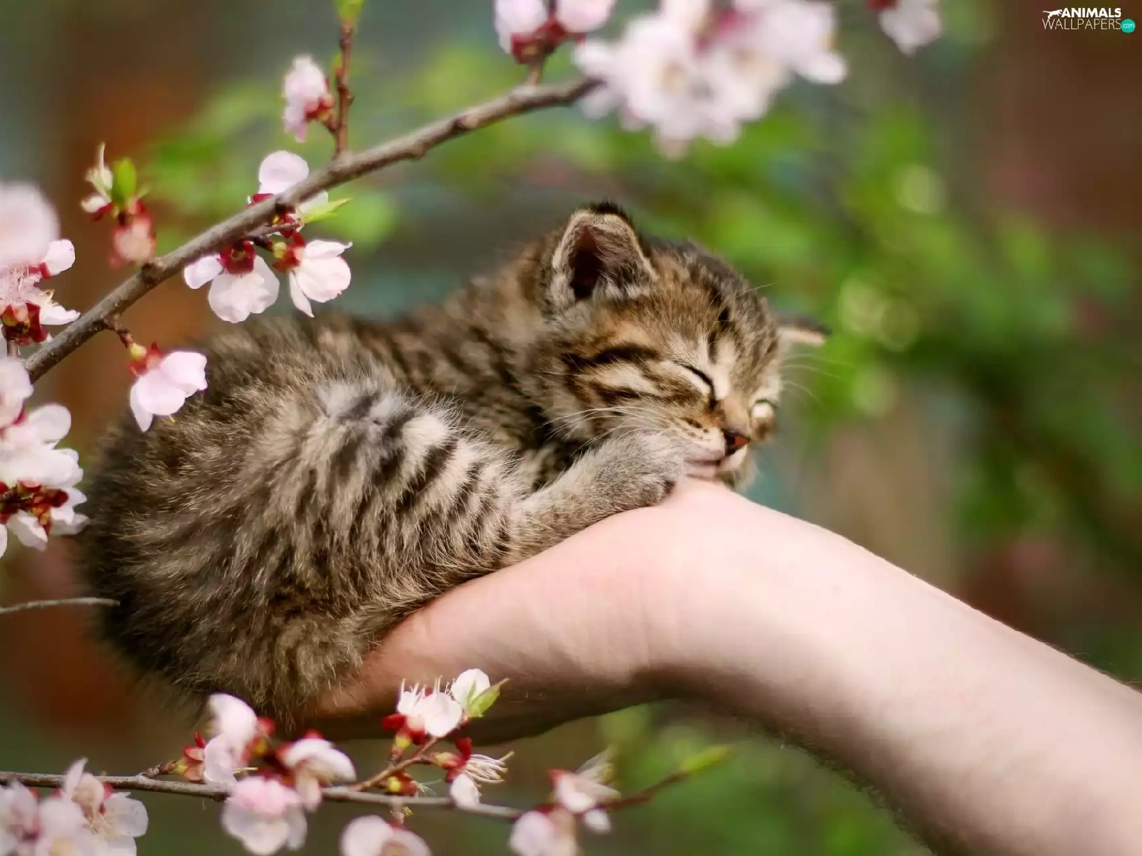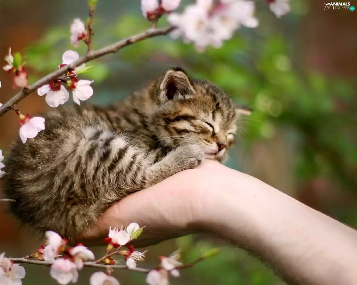 hand, sleepy, flourishing, Twigs, Spring, kitten