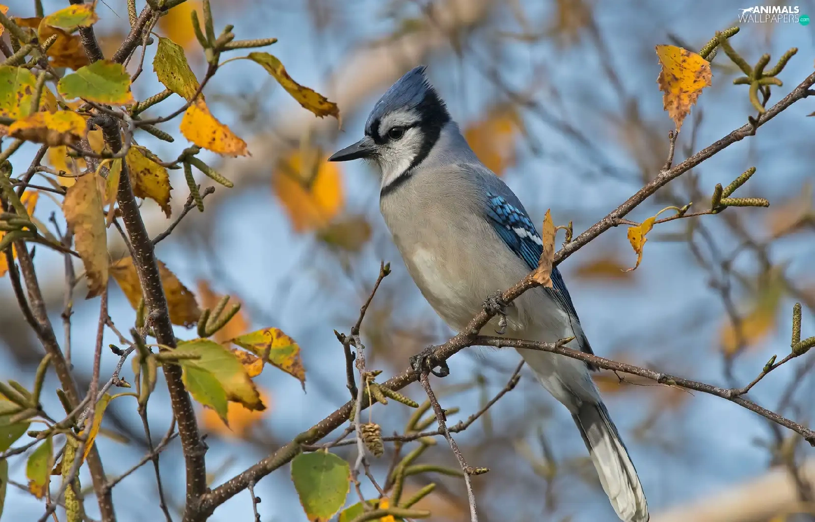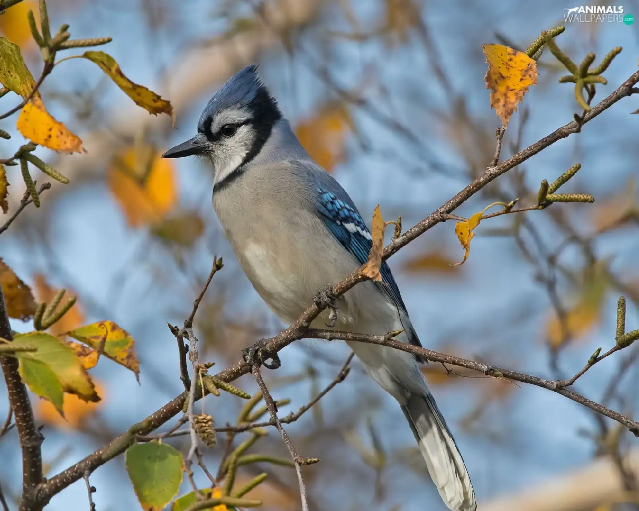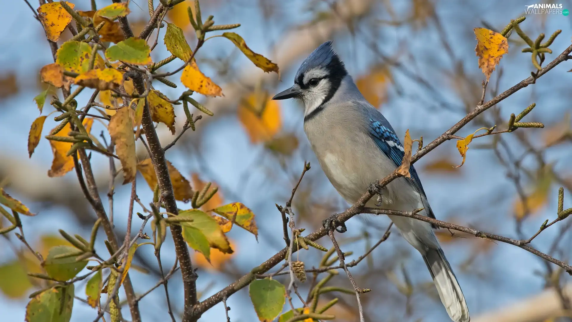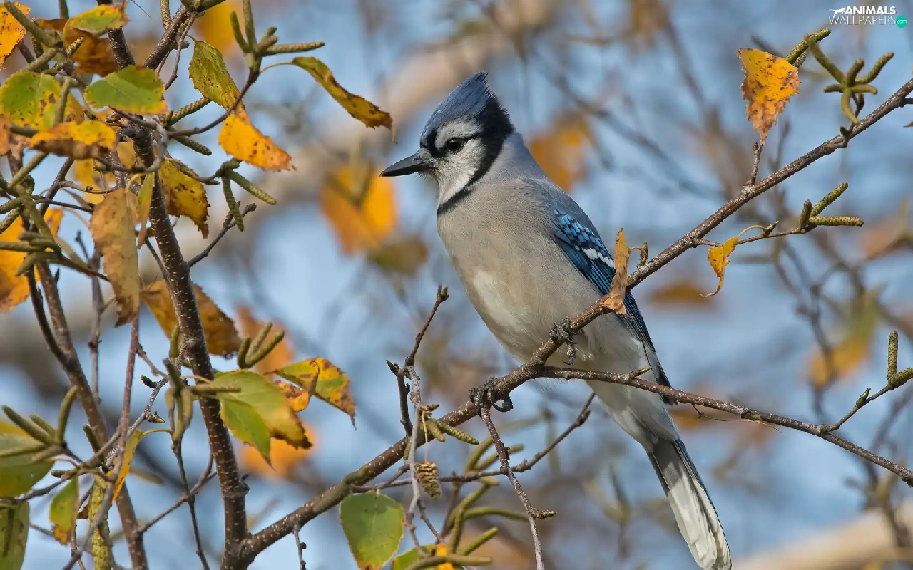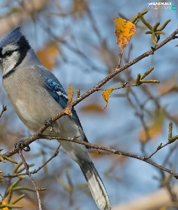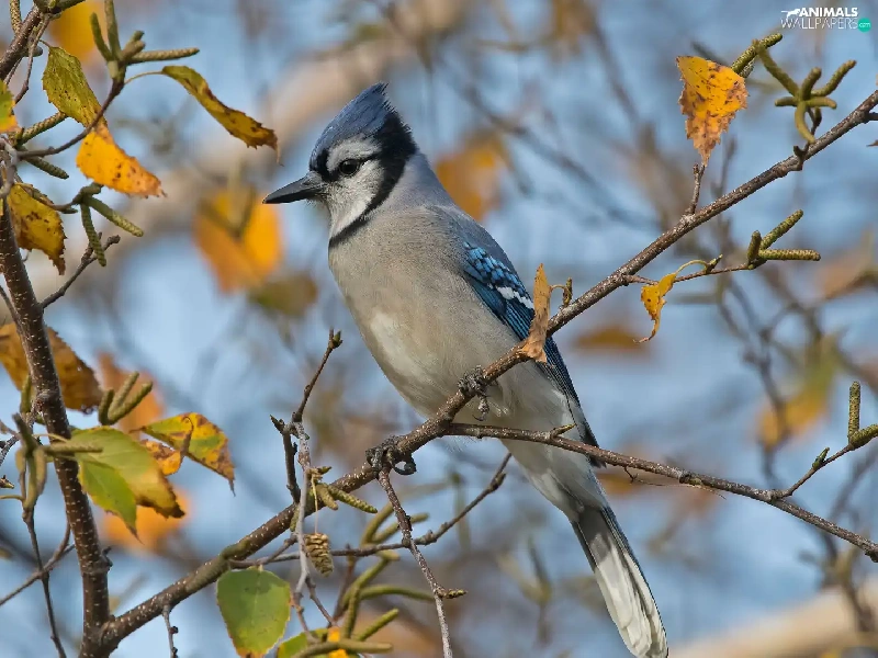 Bird, Twigs, leaves, Blue jay