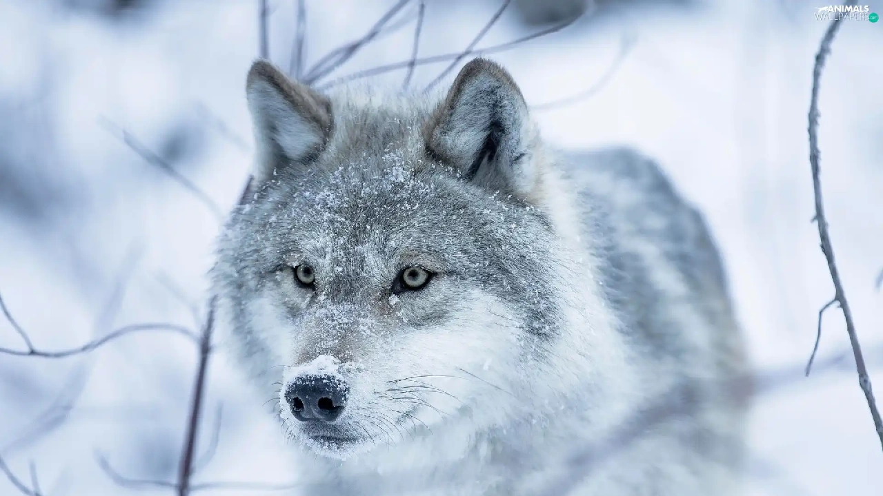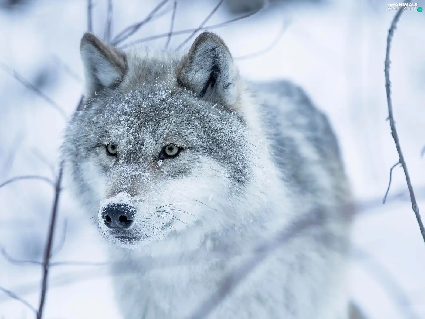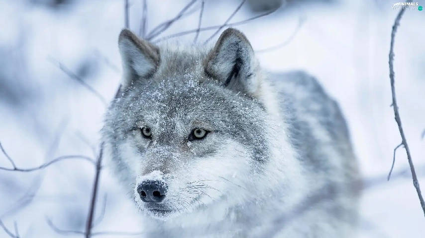 Twigs, Wolf, snow