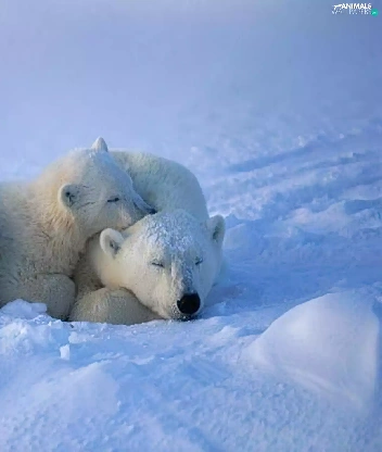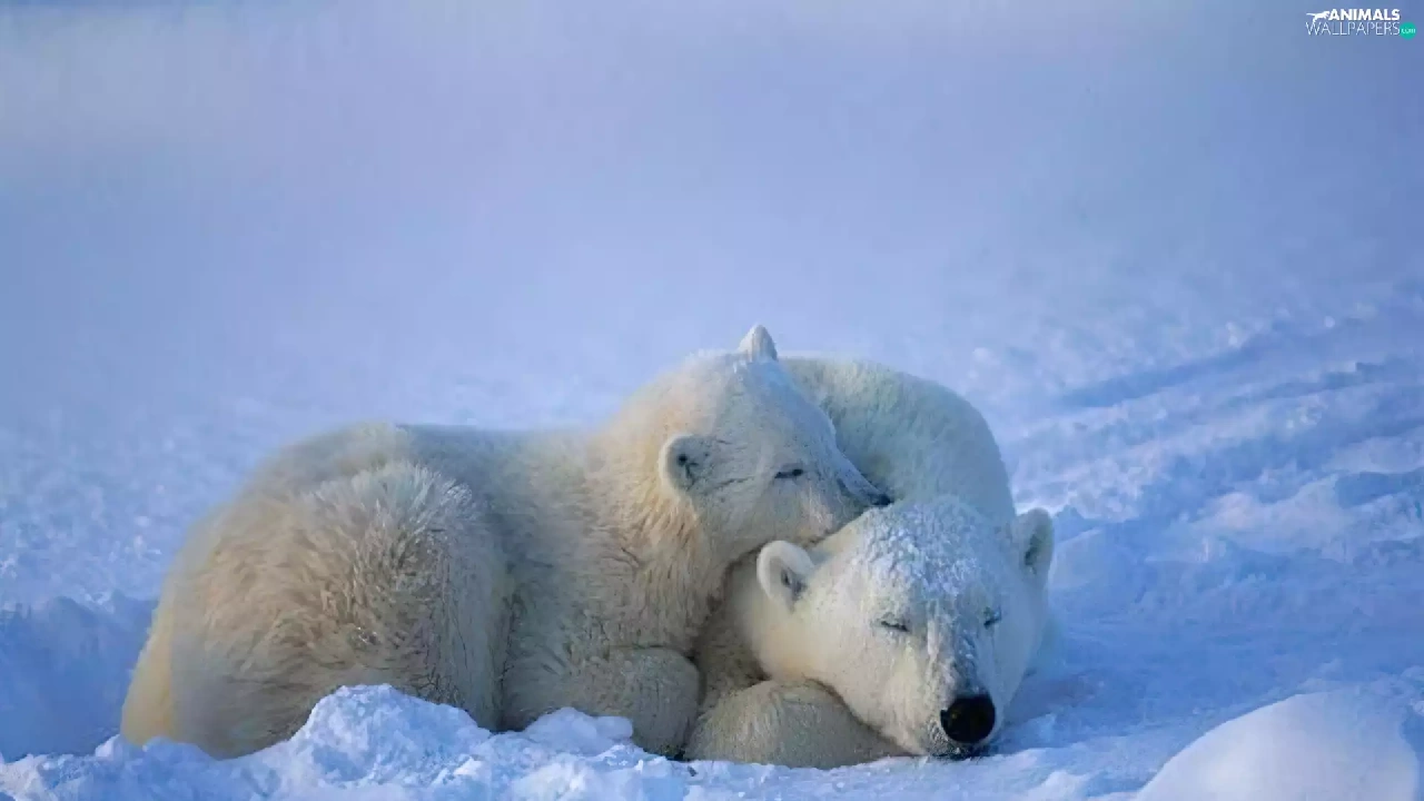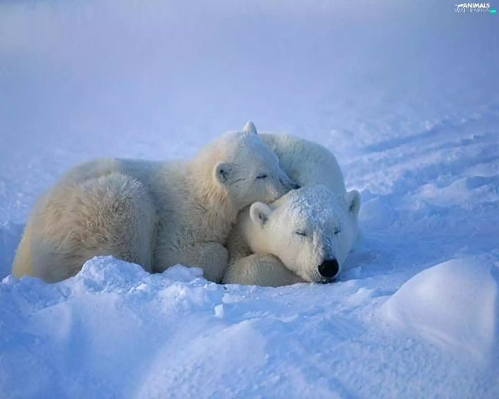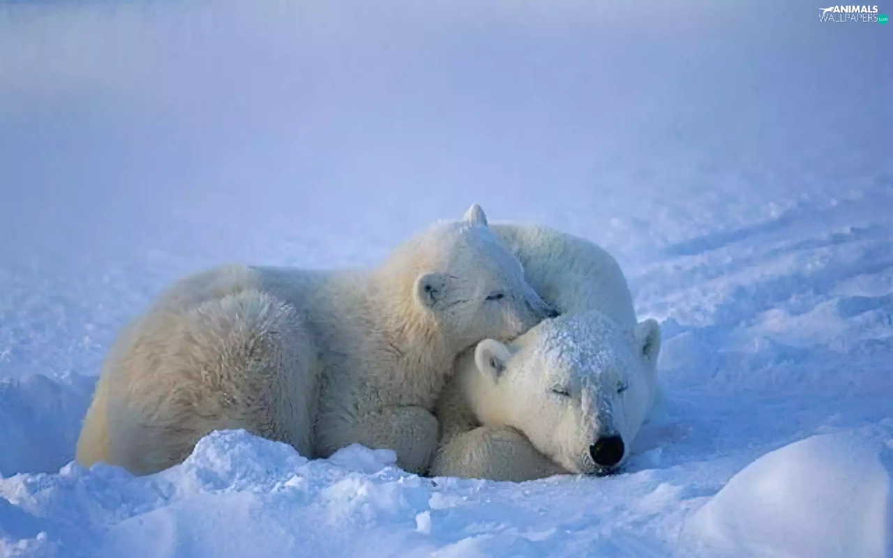 snow, Two cars, Little bears