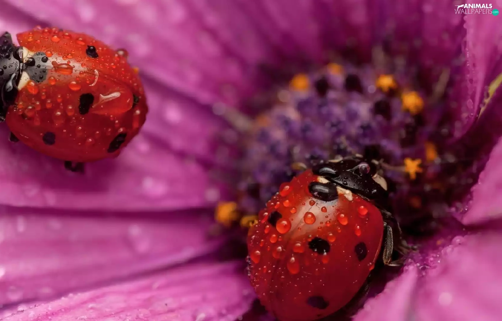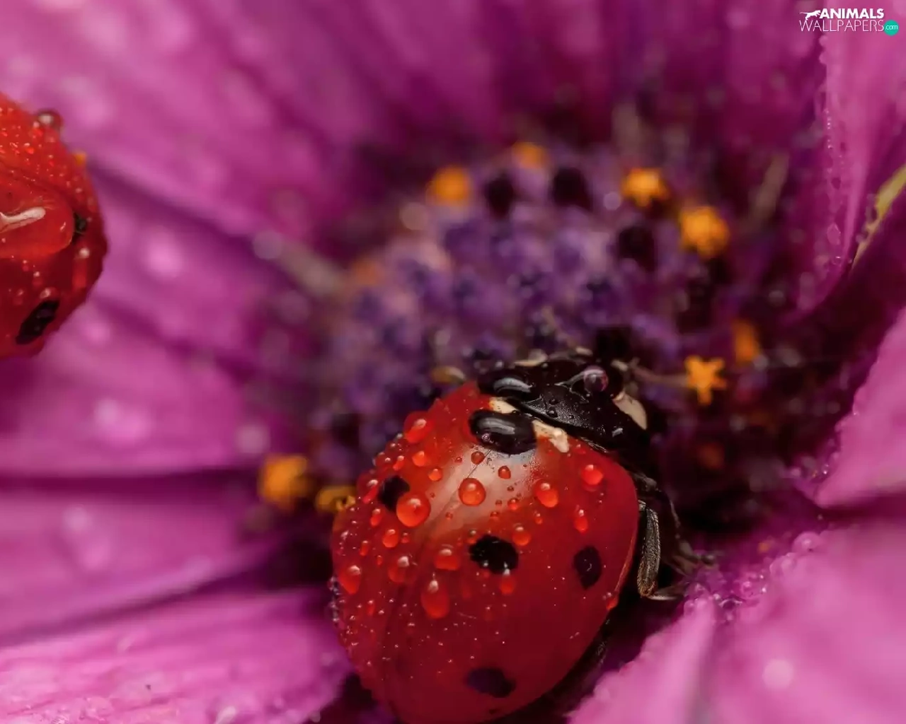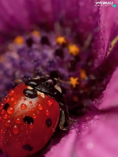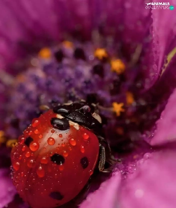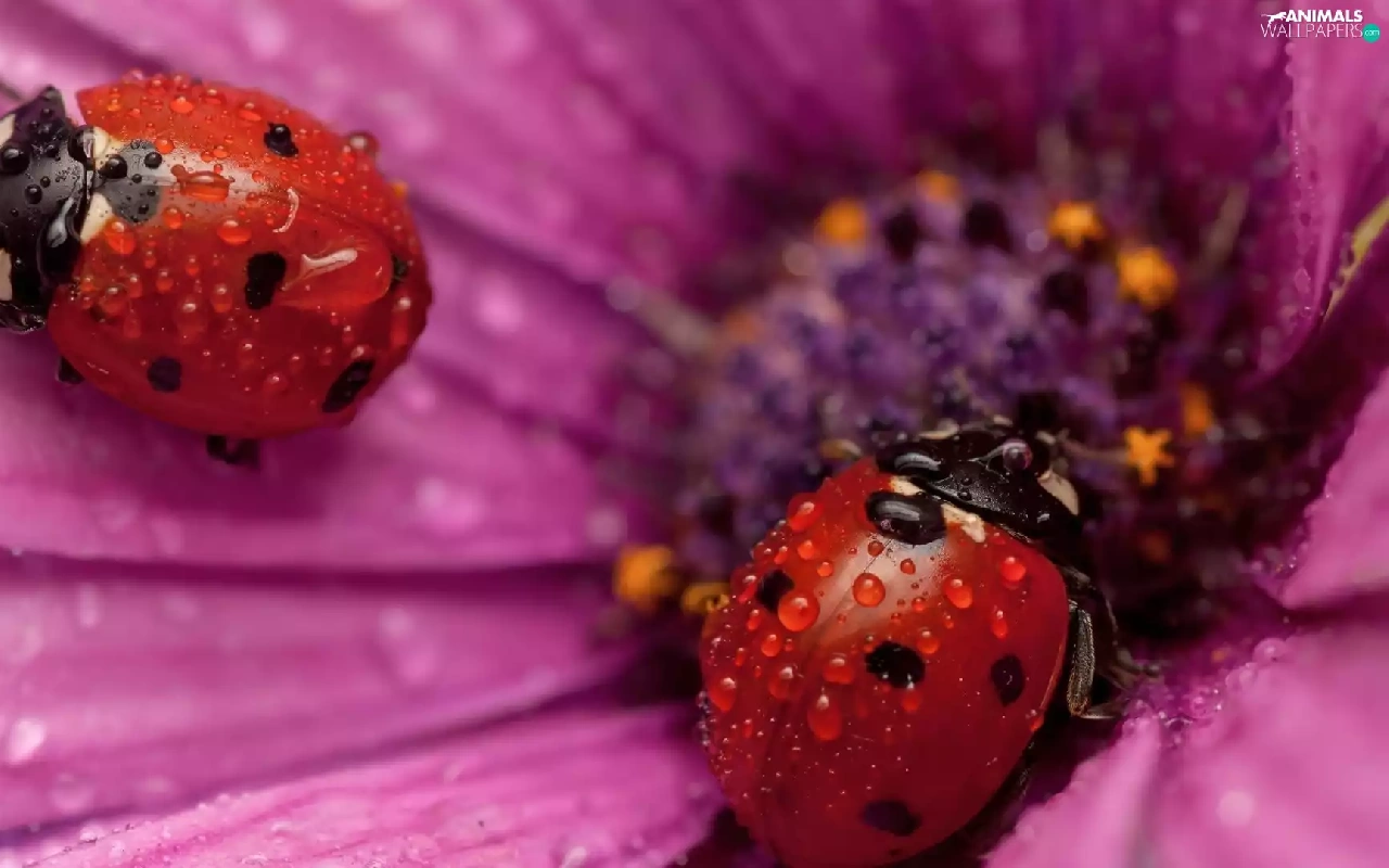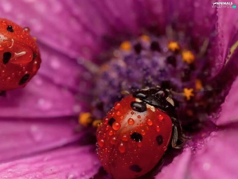 Flower, ladybugs, drops, Two