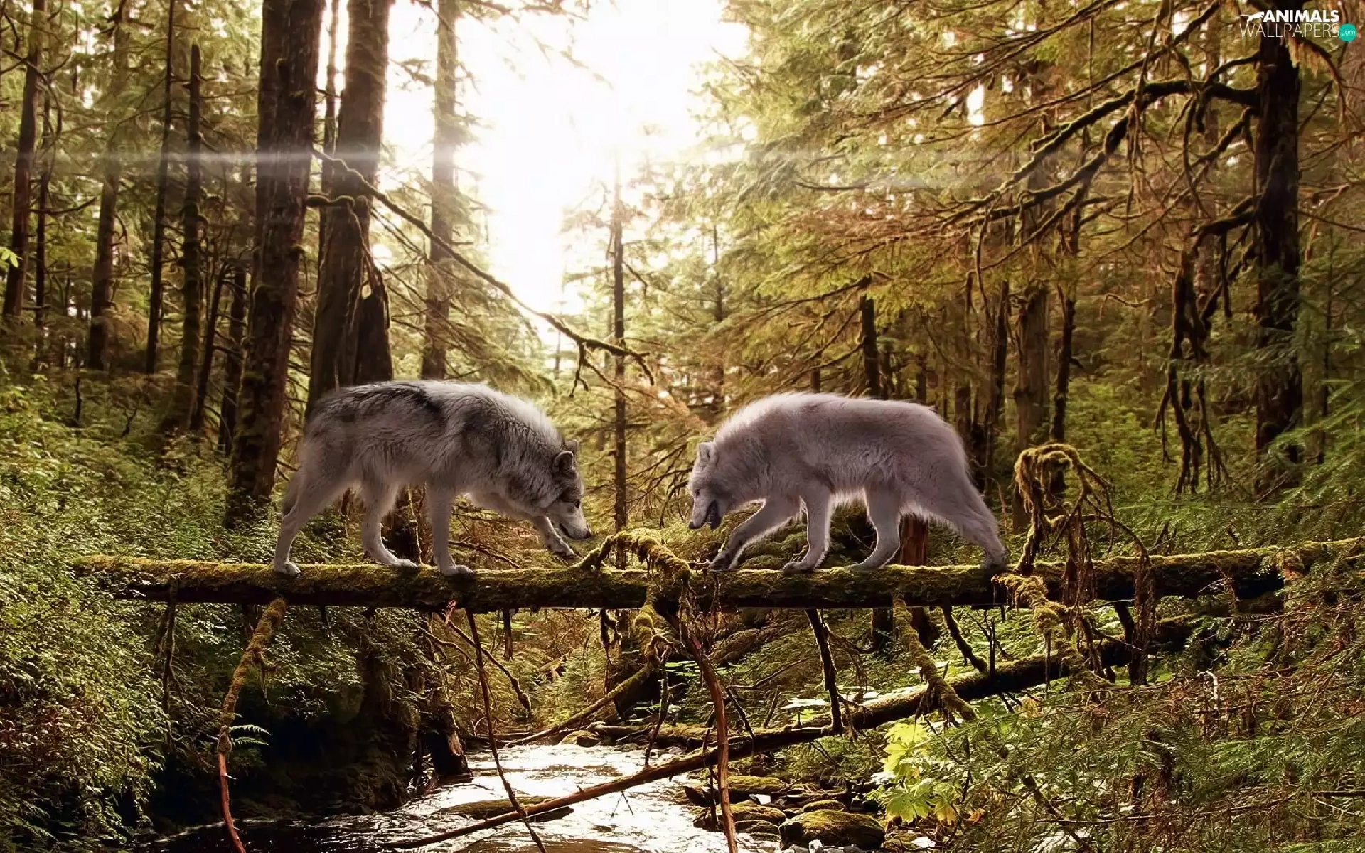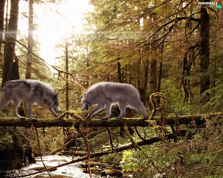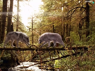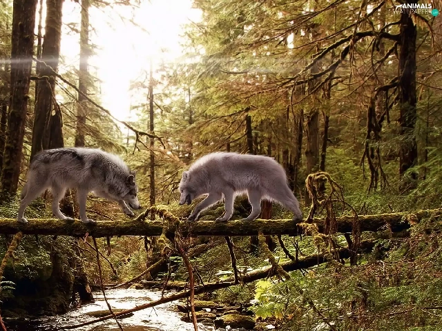 wolves, aggression, River, Two cars, forest