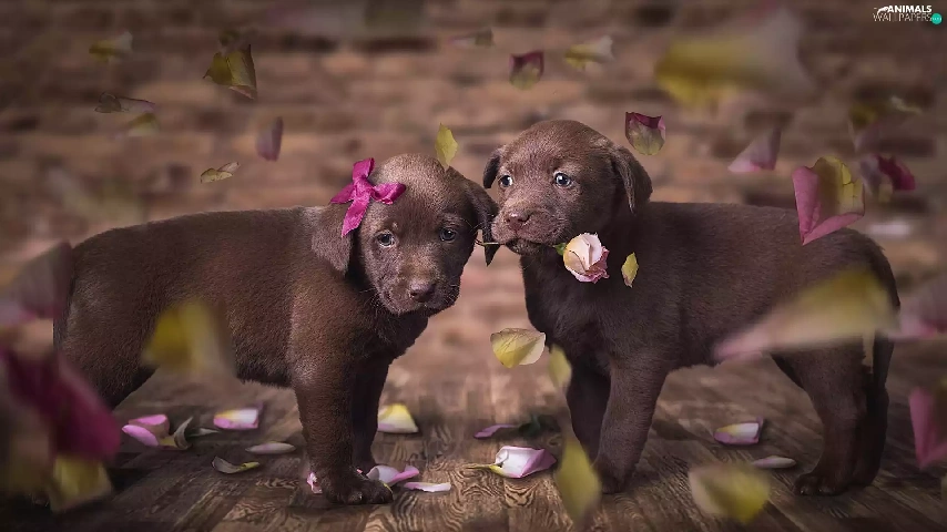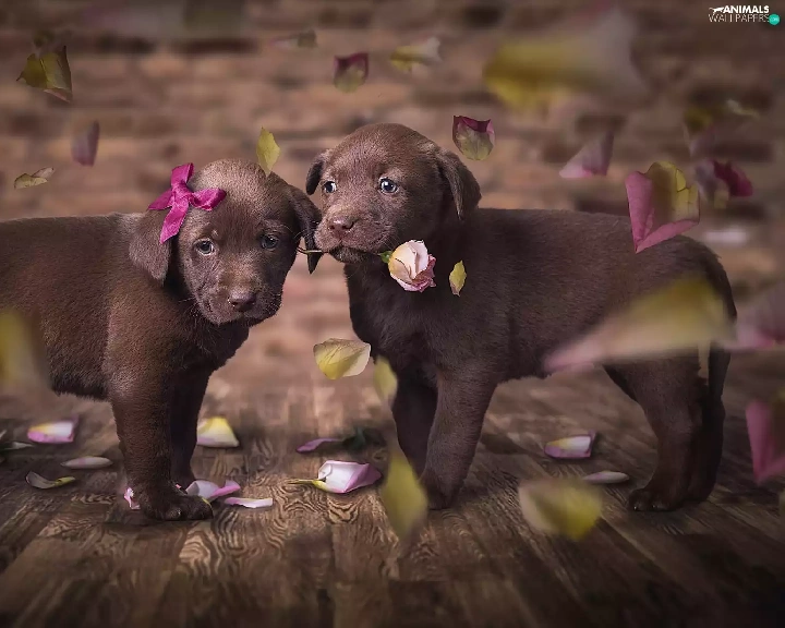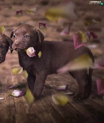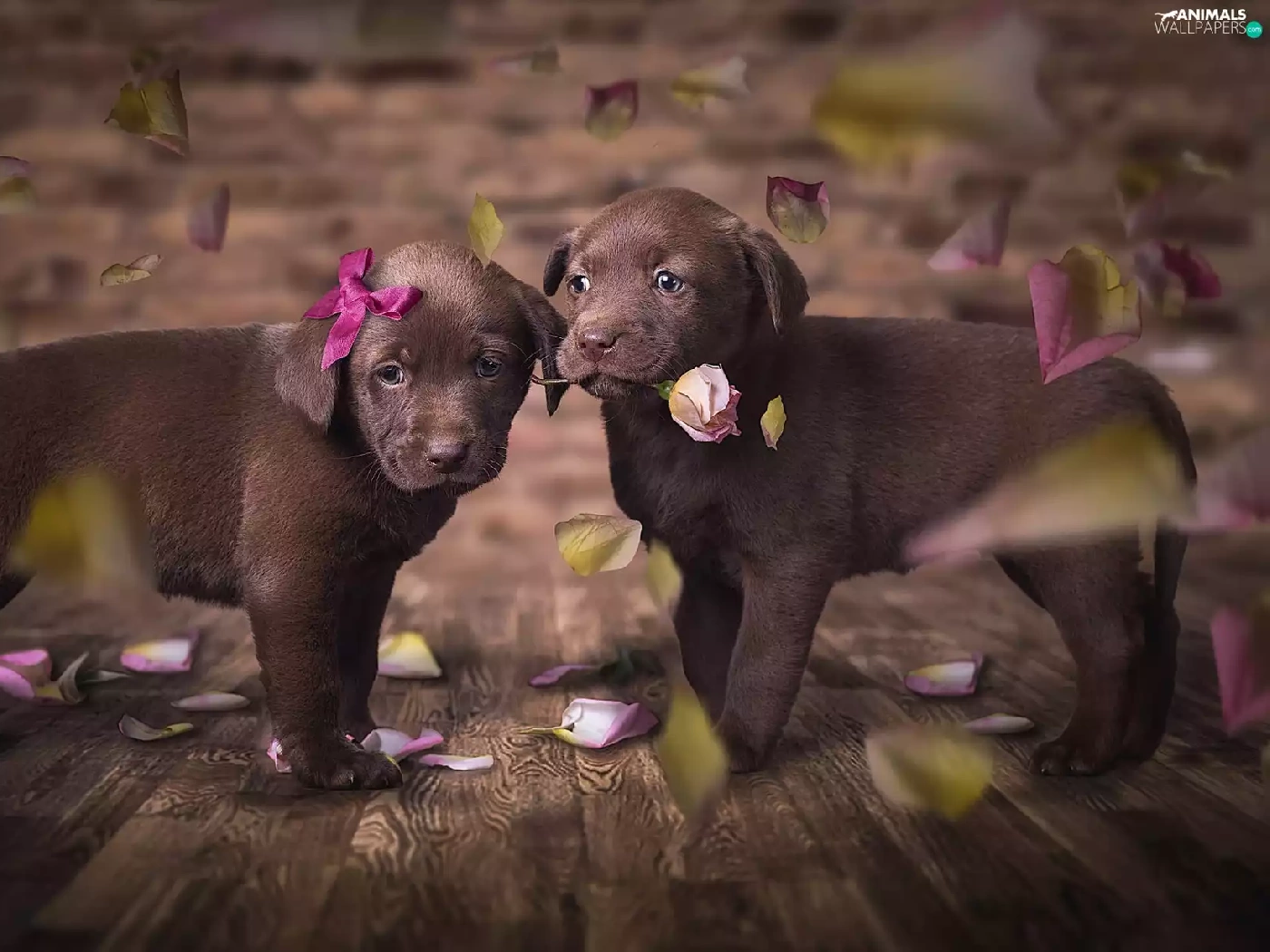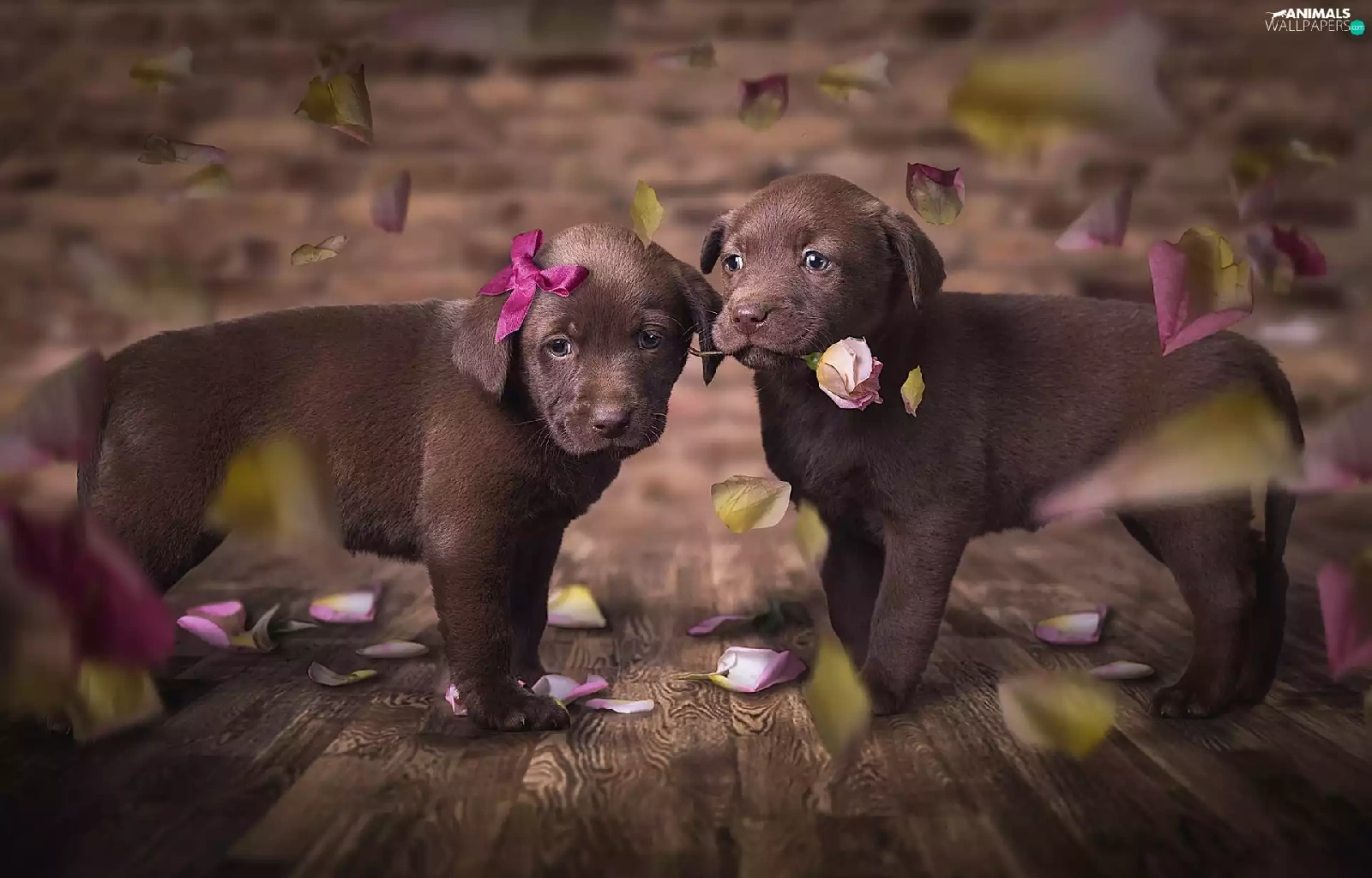 puppies, Retriever Labrador, Two cars, Brown, Dogs