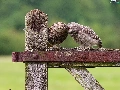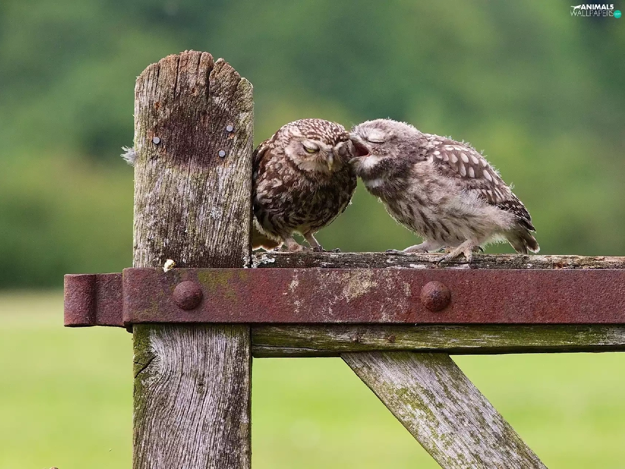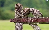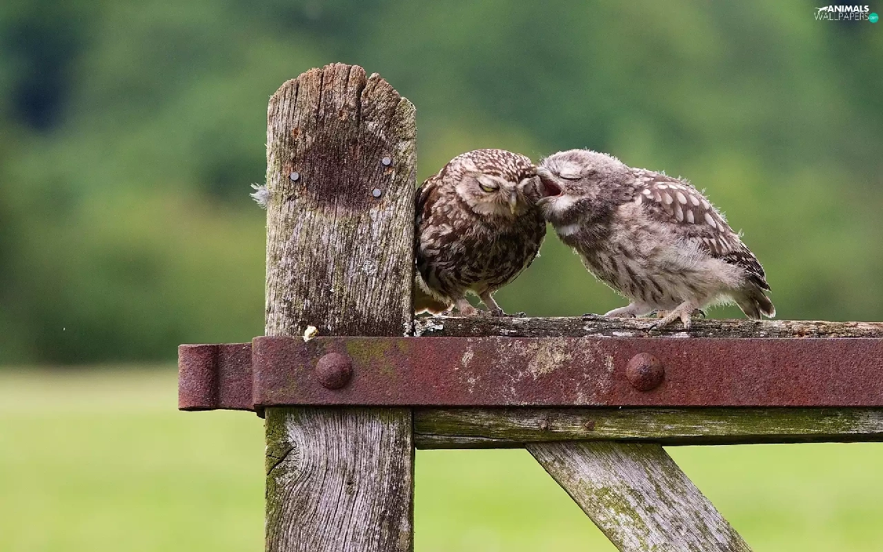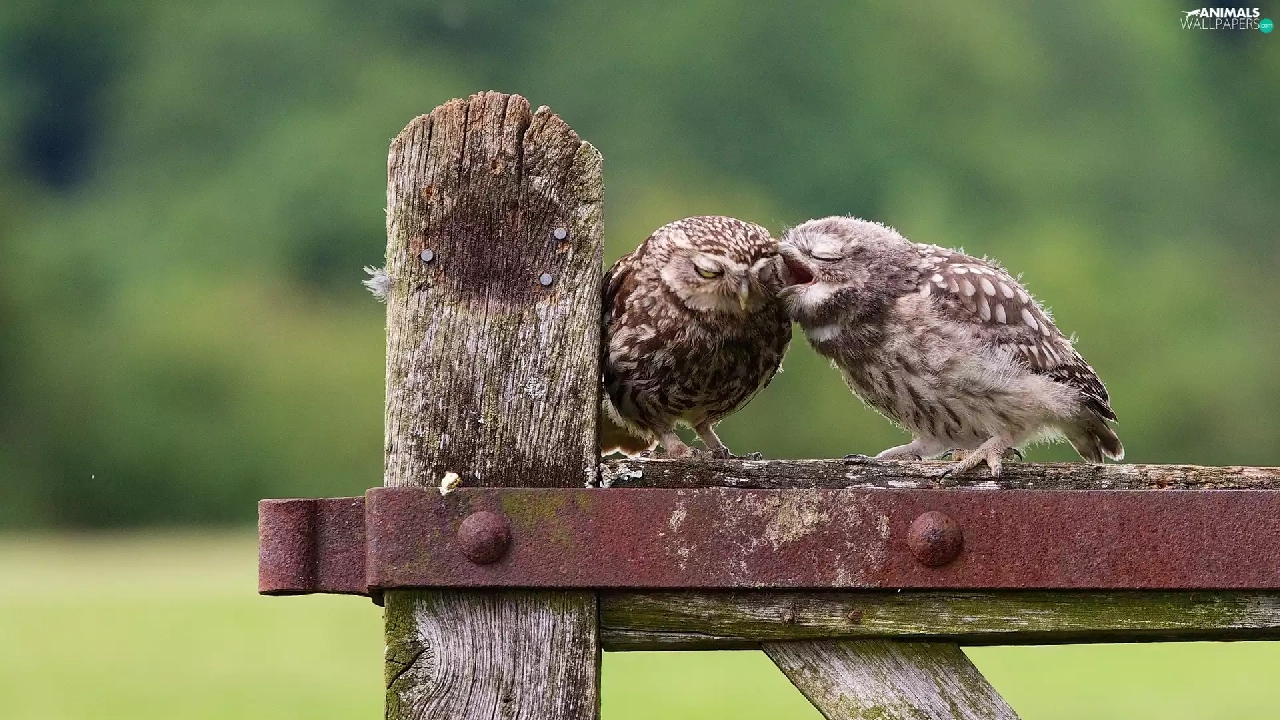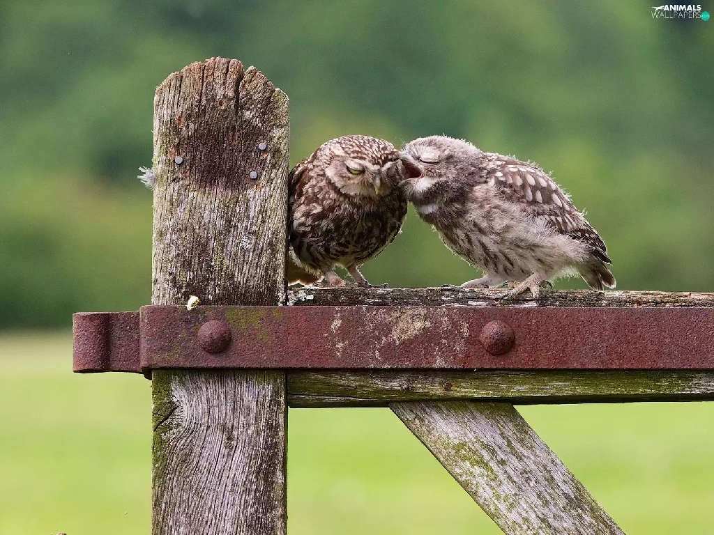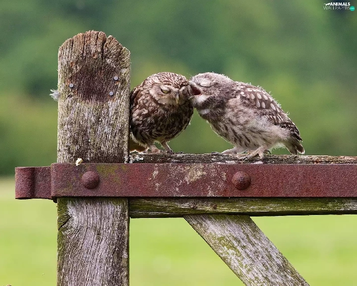 Two cars, owls