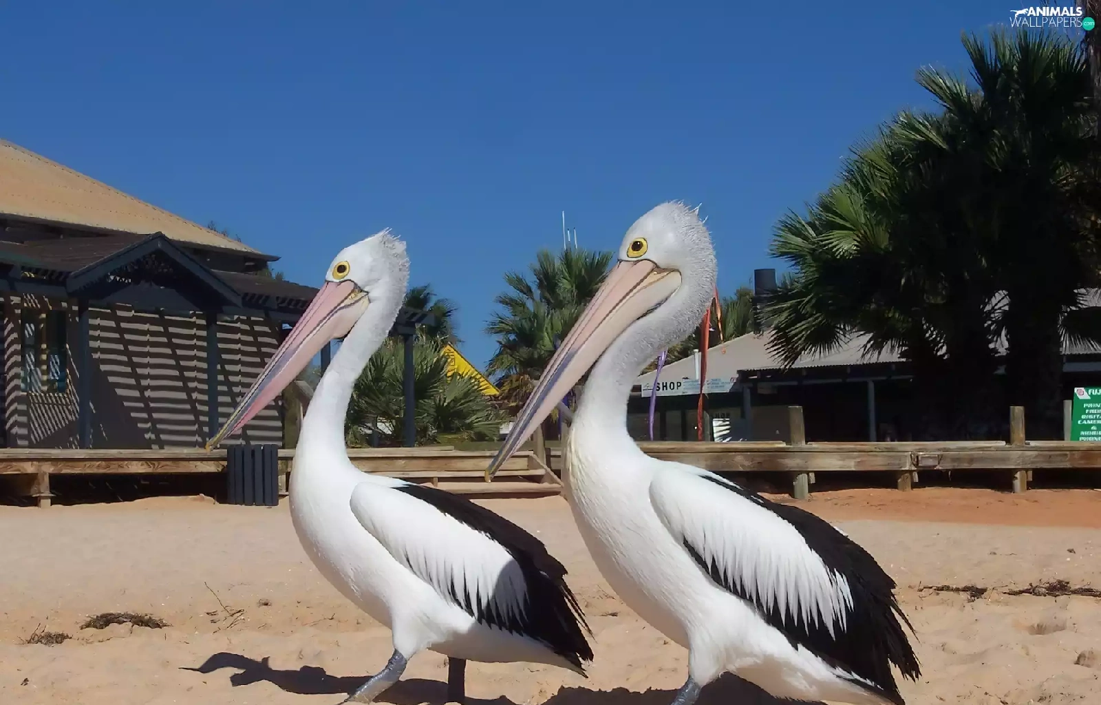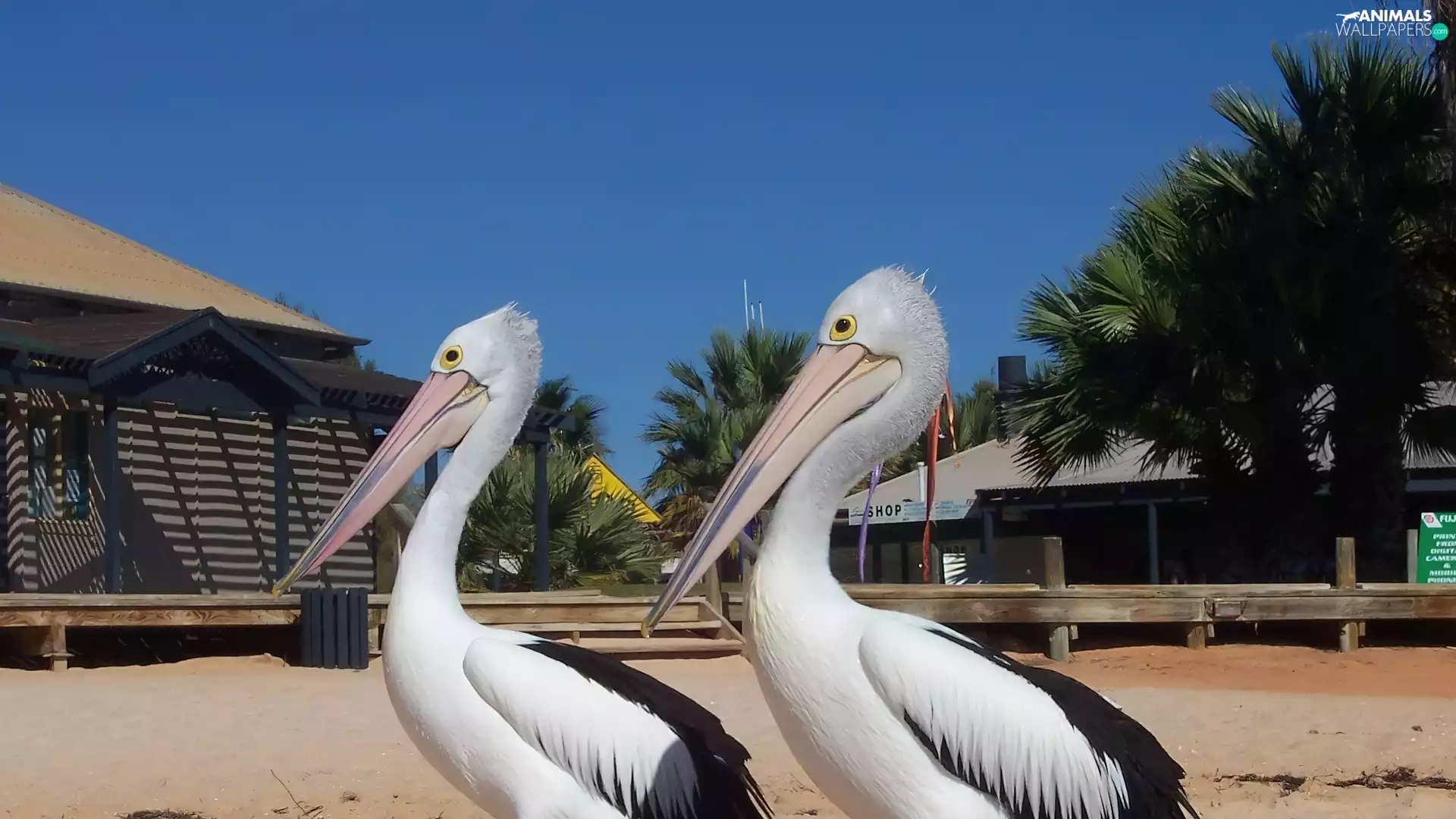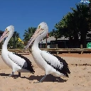 Two cars, pelicans