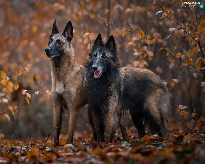 Two cars, Belgian Shepherd Malinois, Belgian Shepherd Tervuren, Dogs