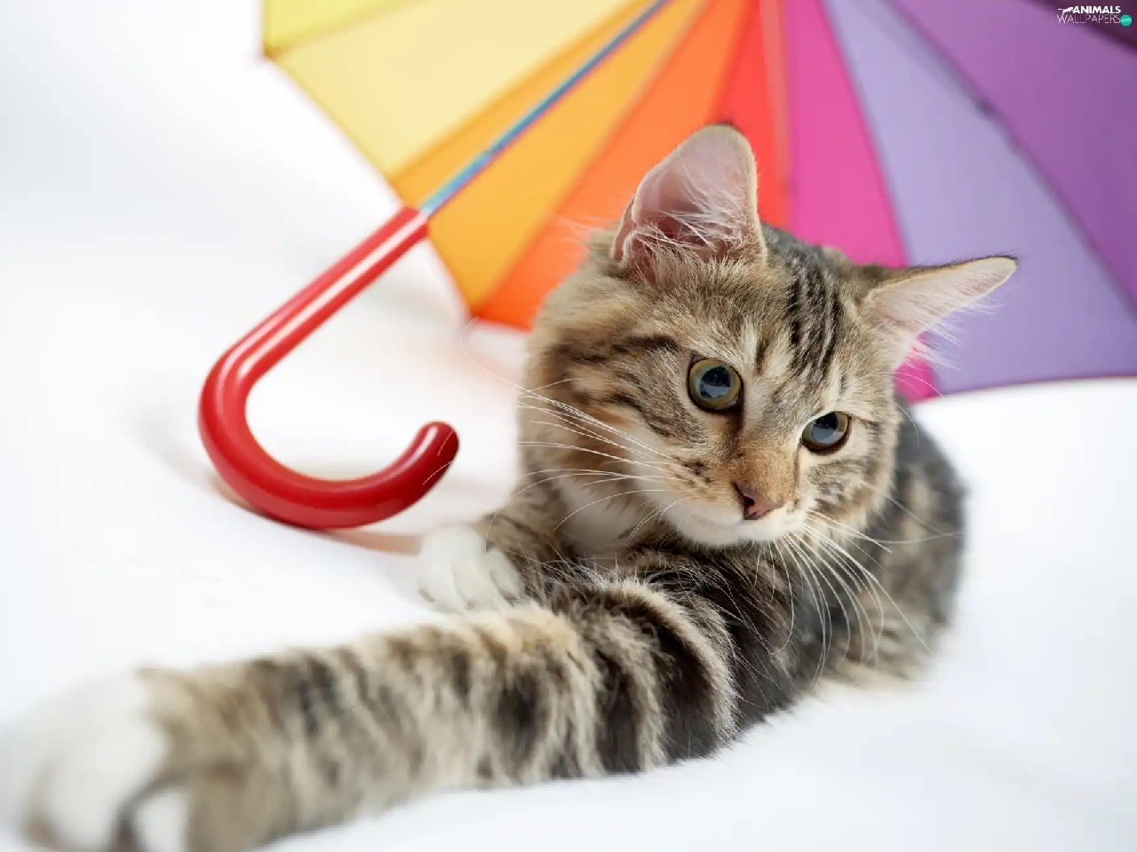 umbrella, cat, Coloured