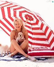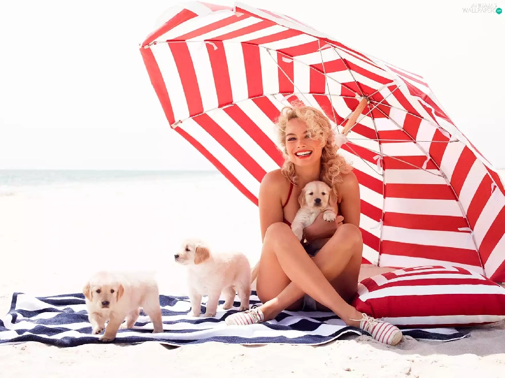 Women, Dogs, puppies, Umbrella