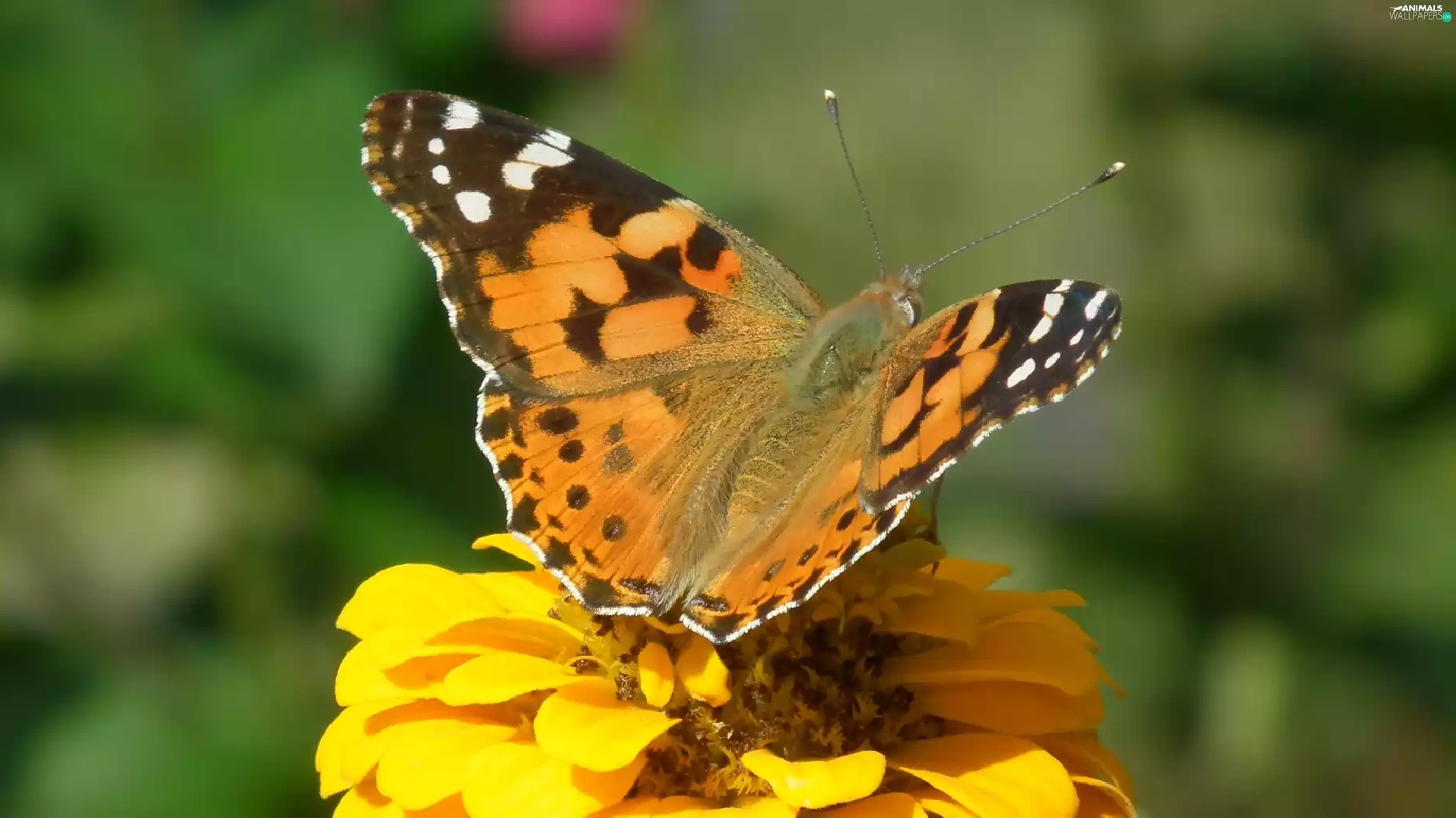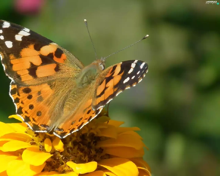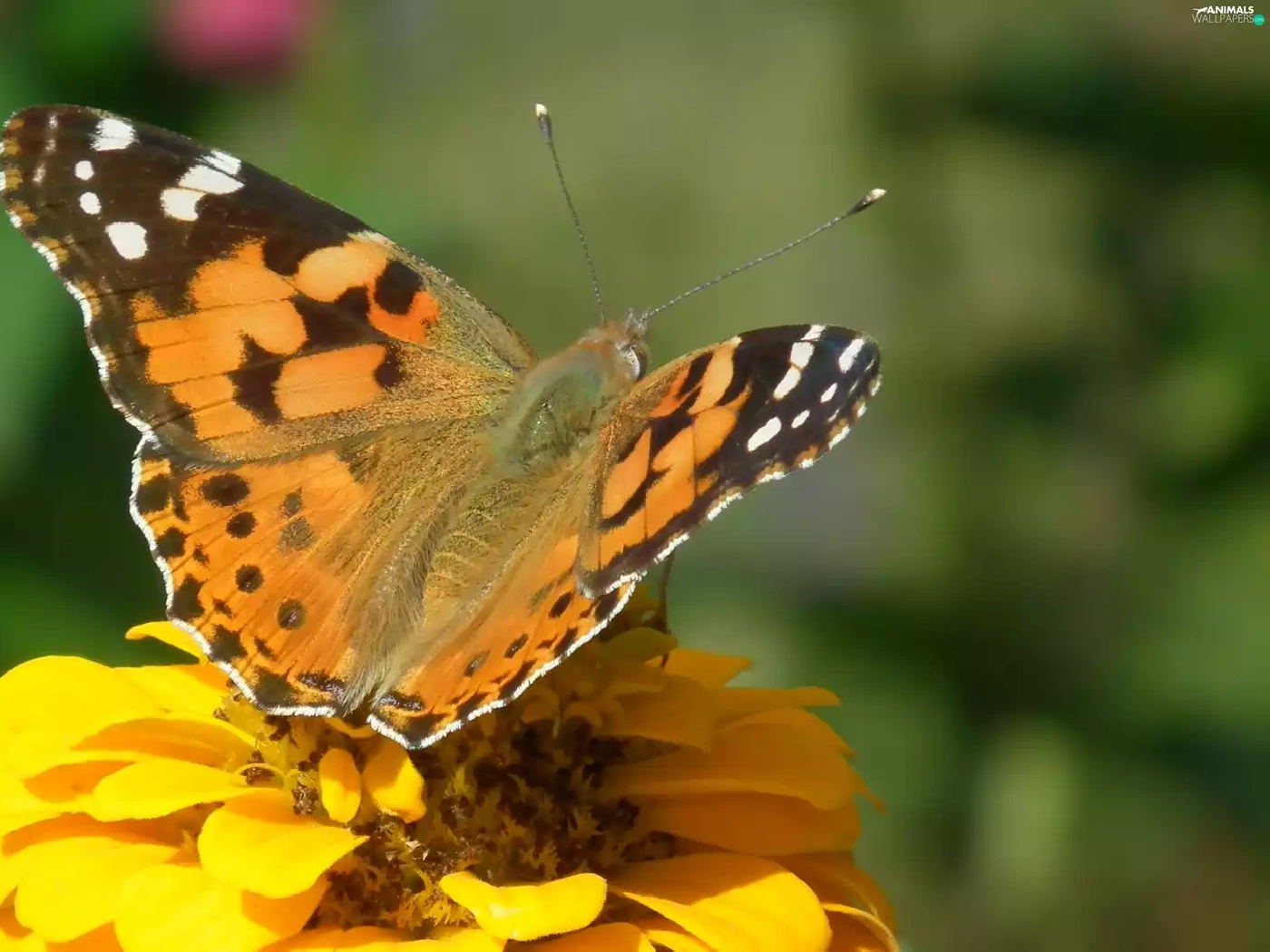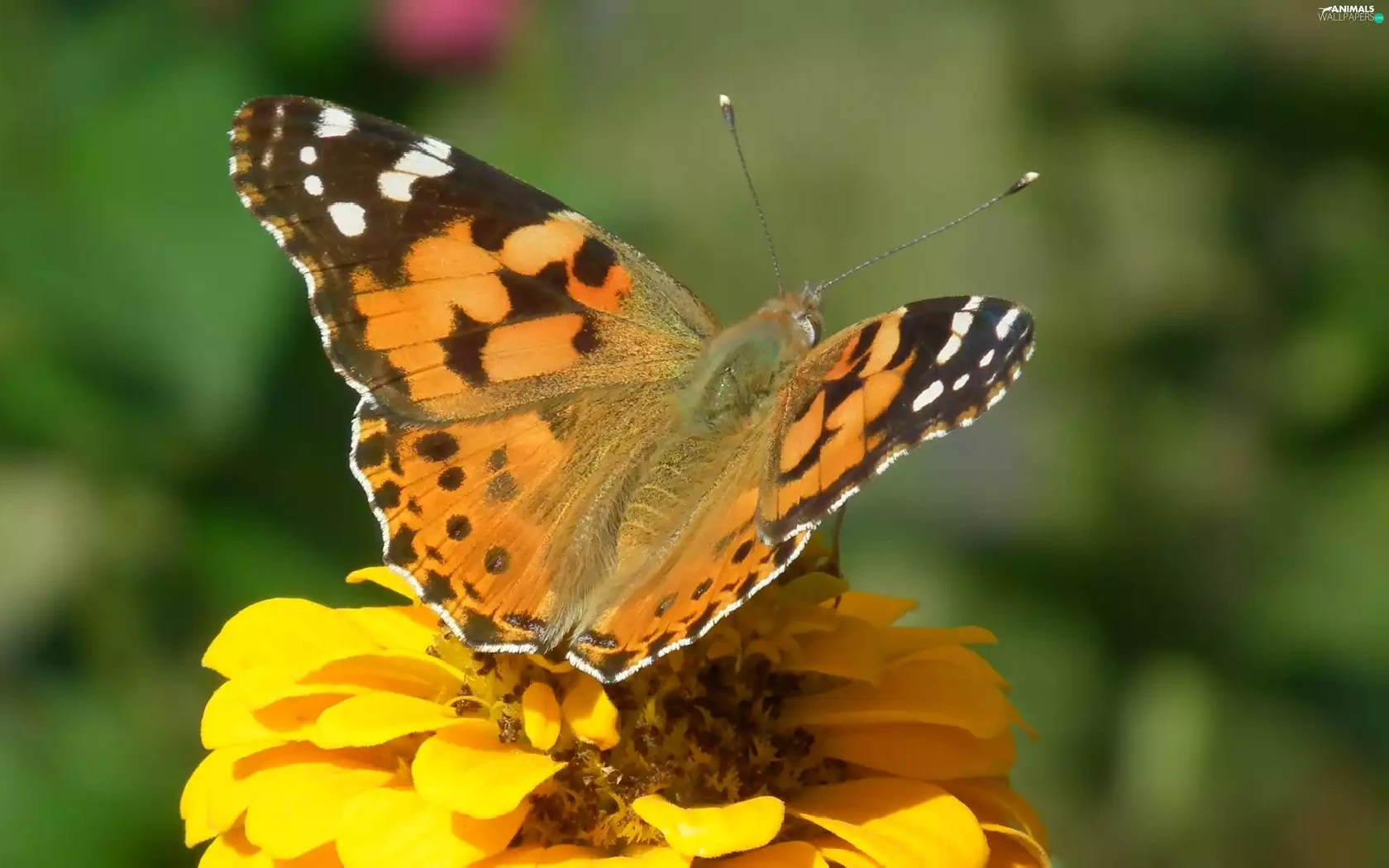 Colourfull Flowers, zinnia, undine, Cardui, butterfly