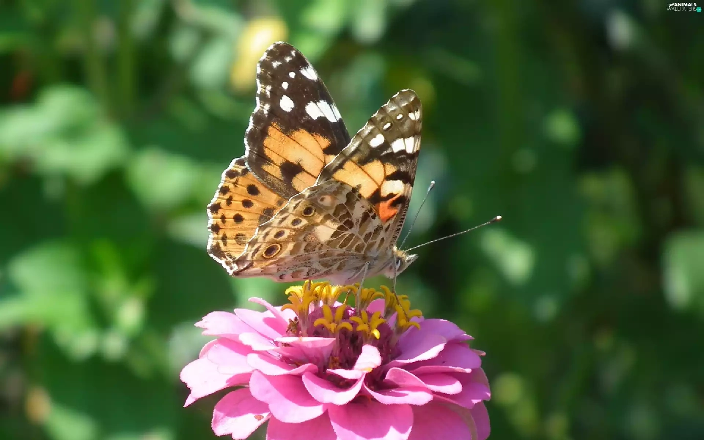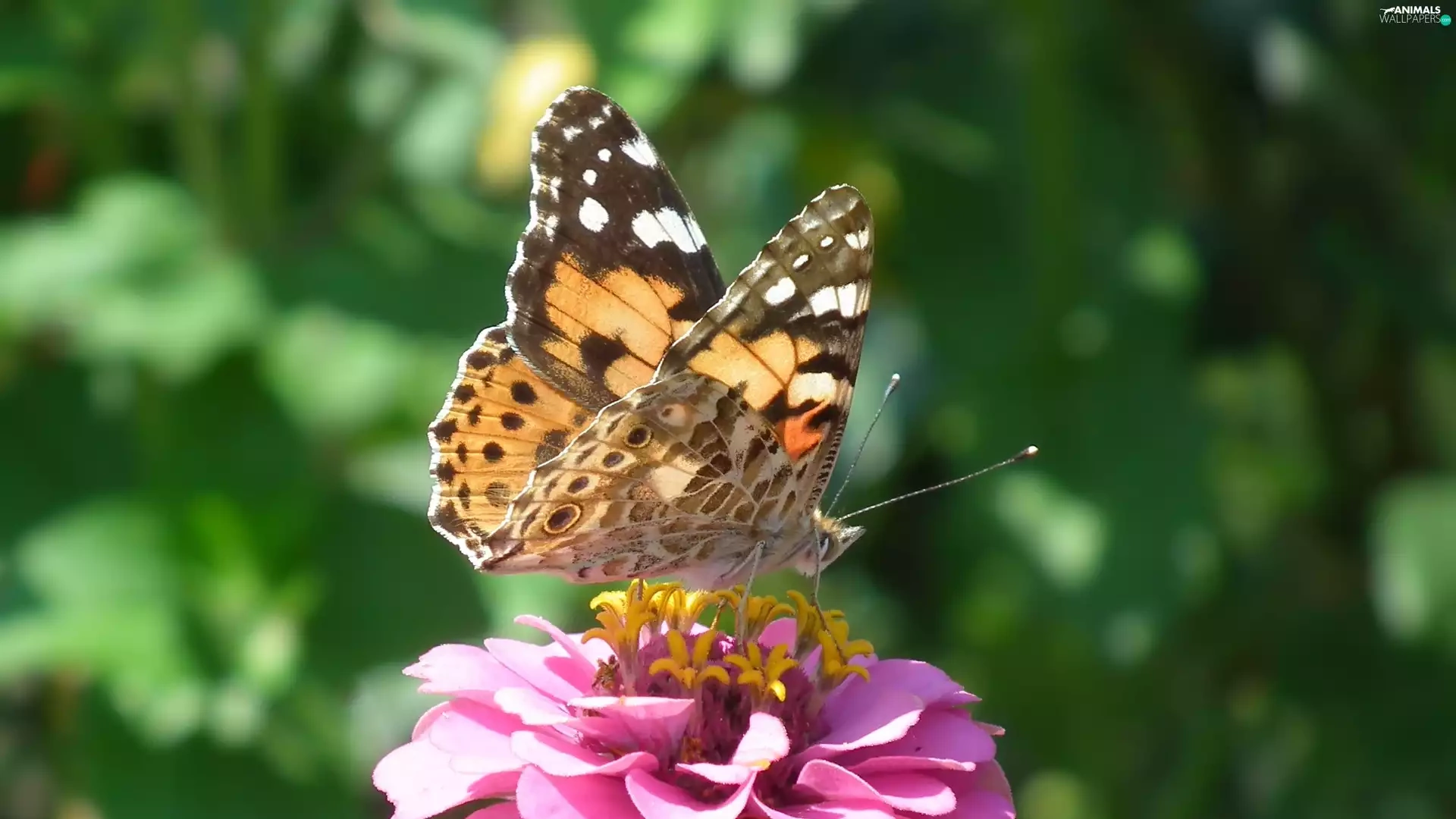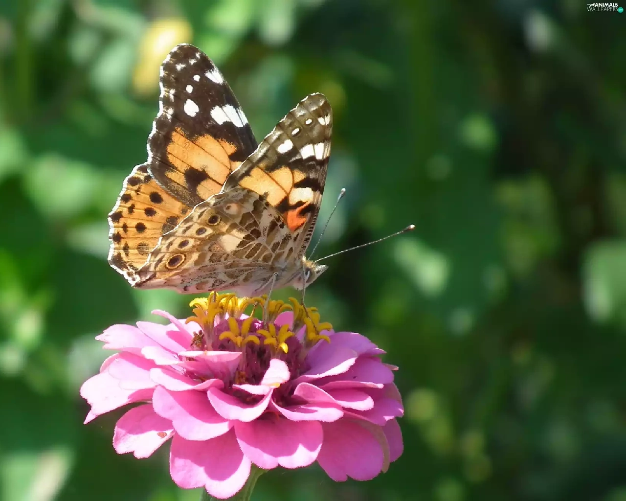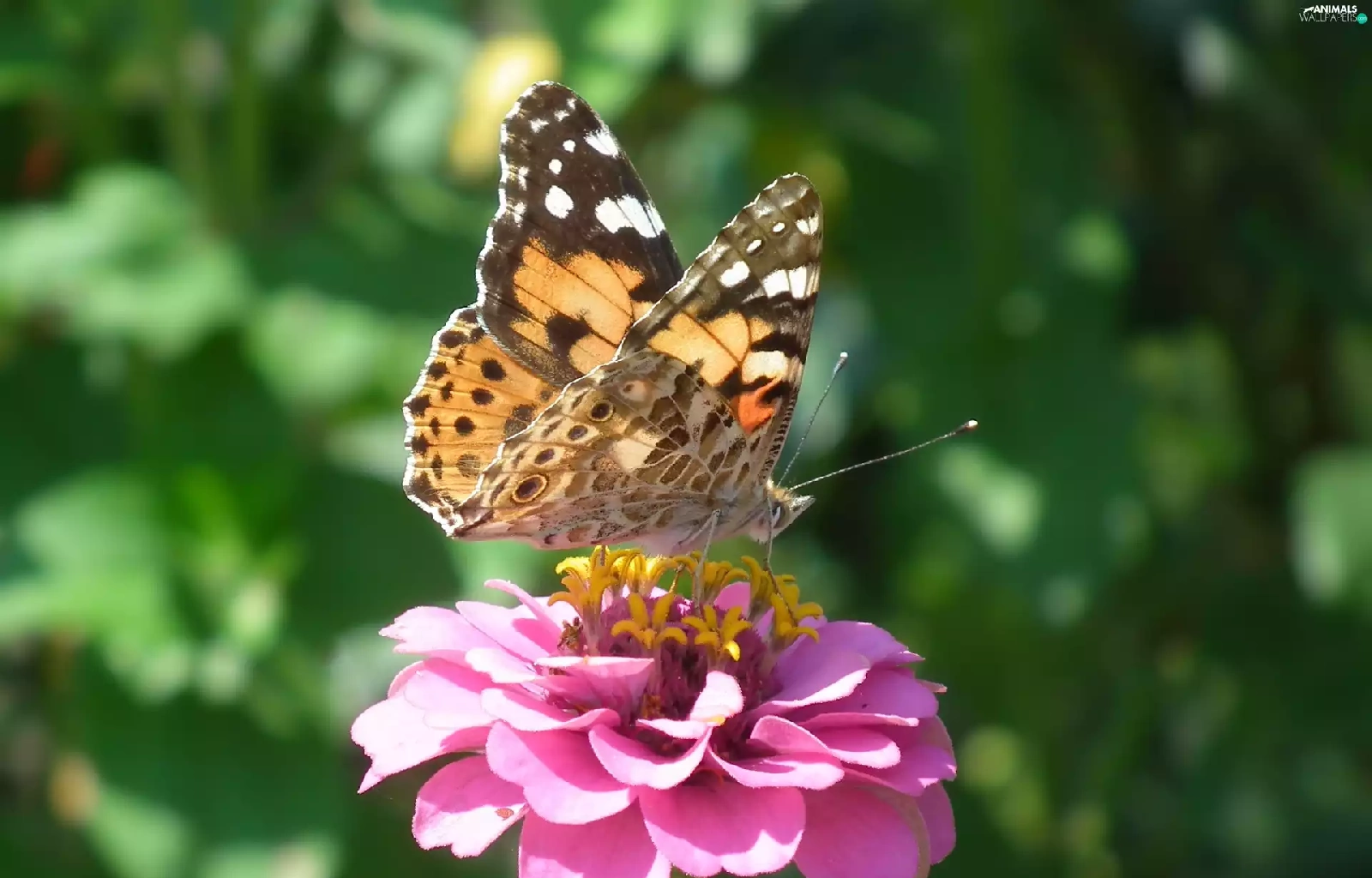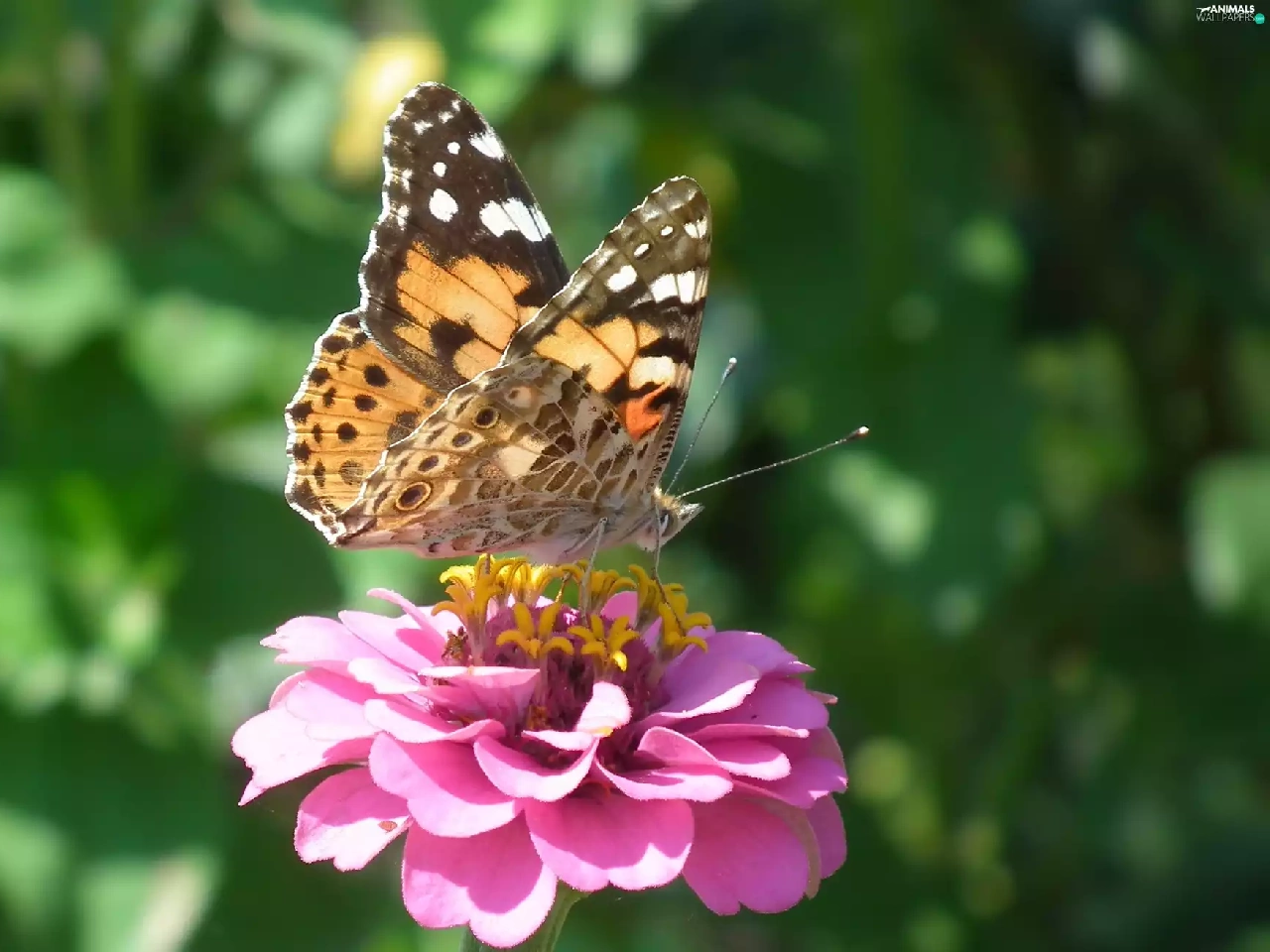 Colourfull Flowers, zinnia, undine, Cardui, butterfly