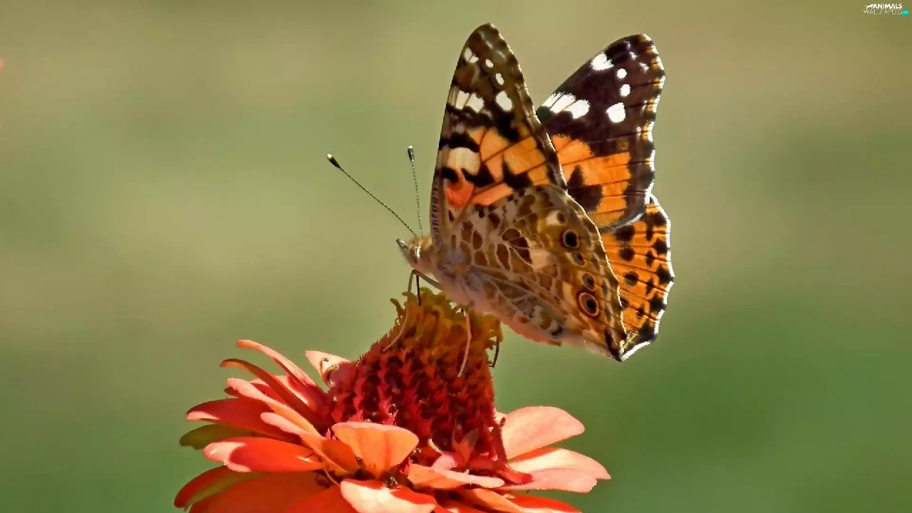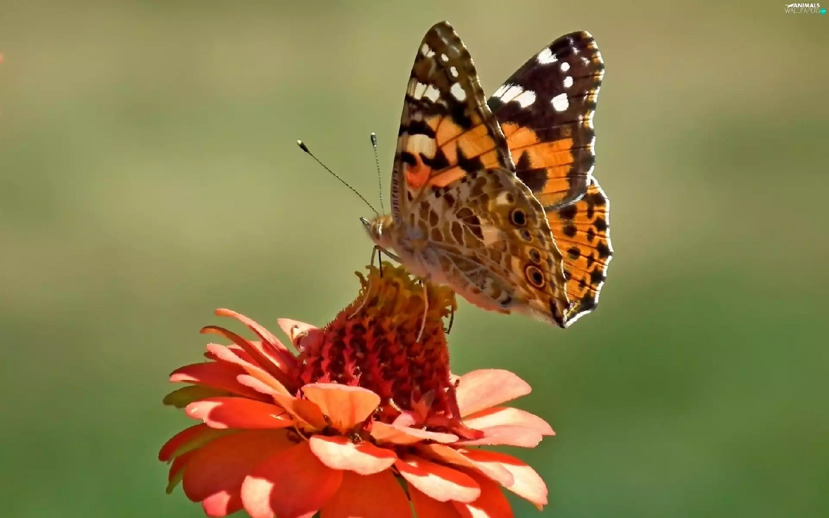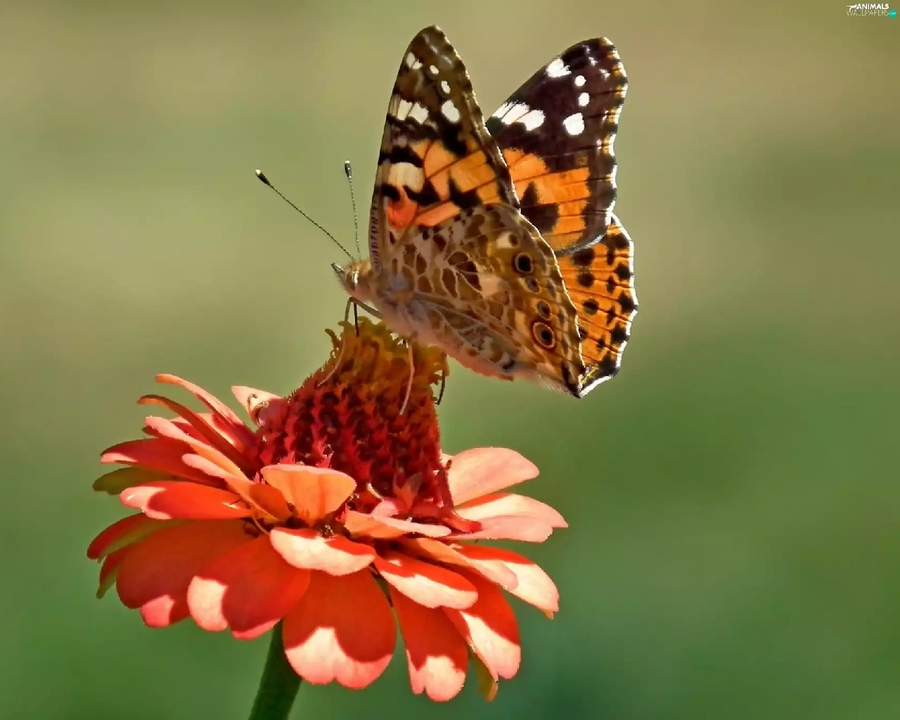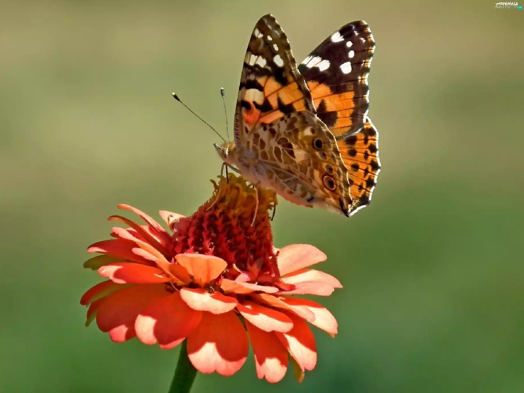 Colourfull Flowers, zinnia, undine, Cardui, butterfly