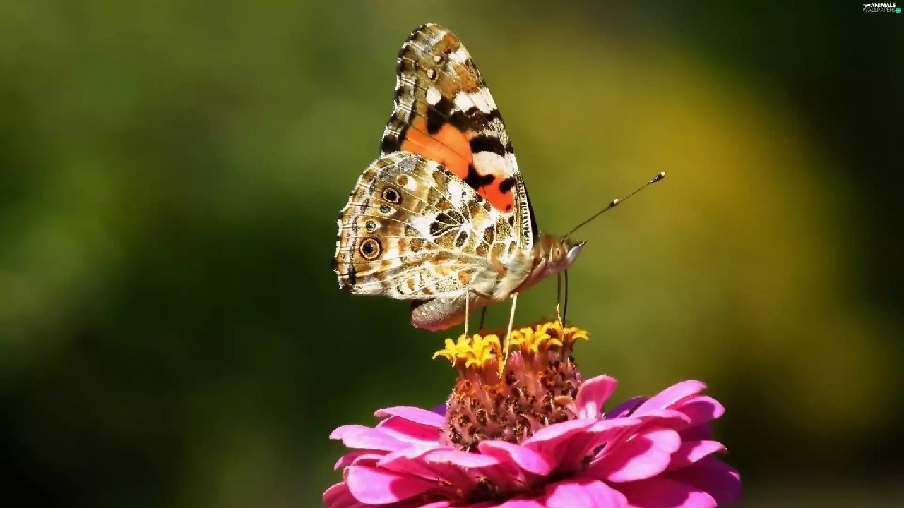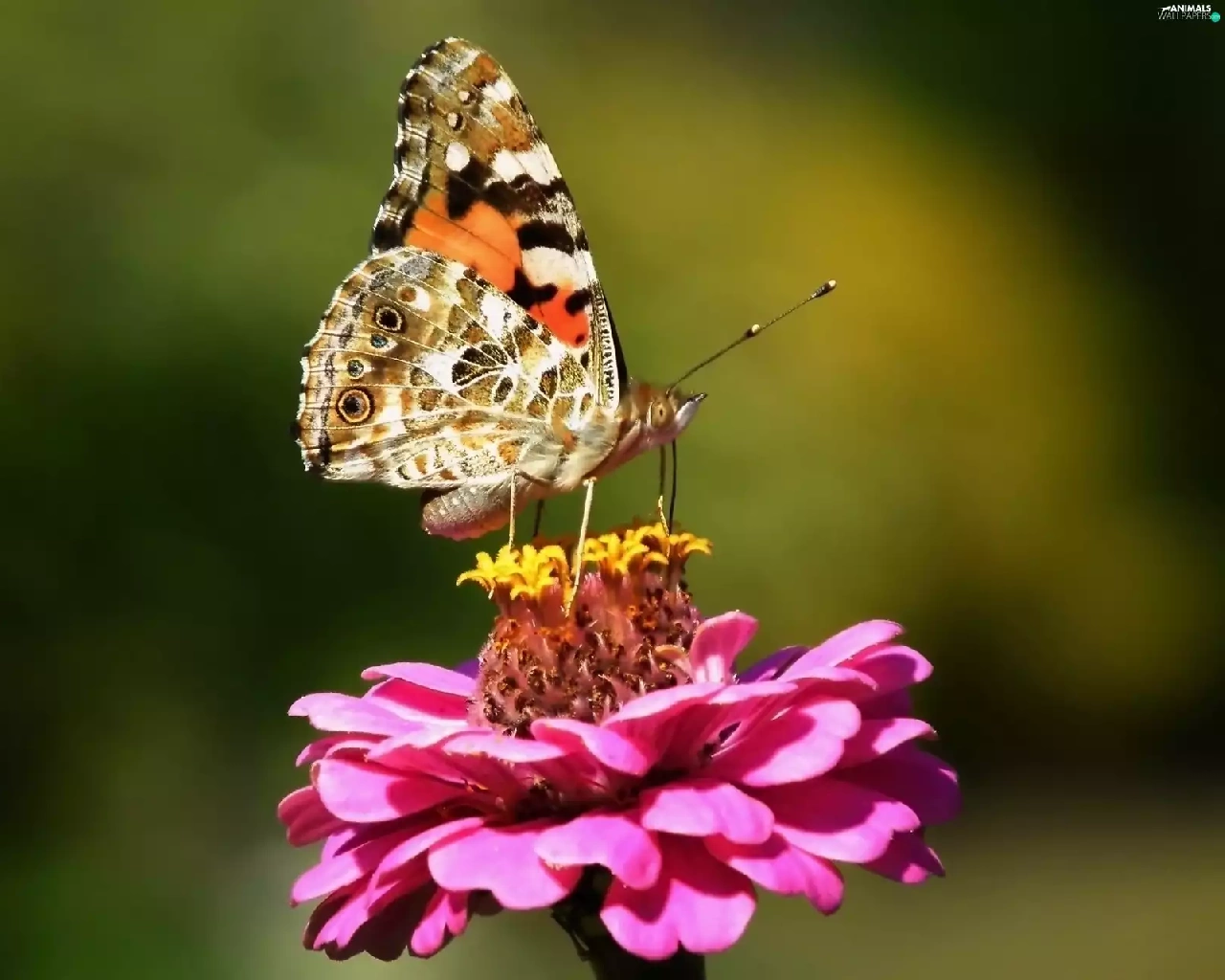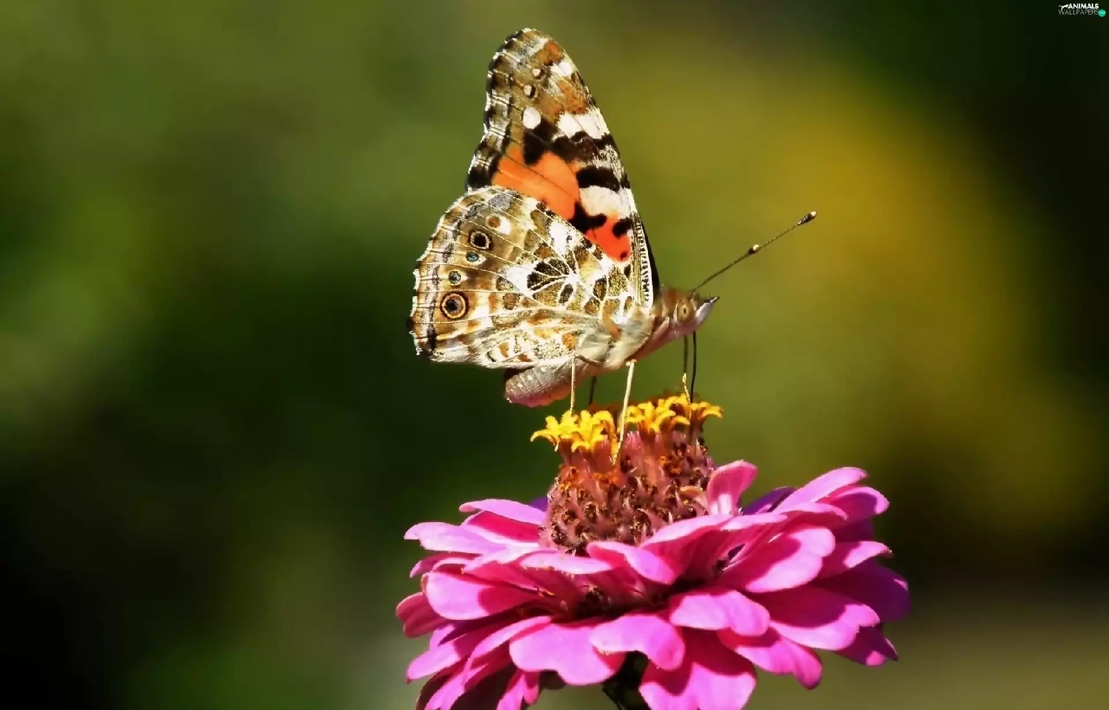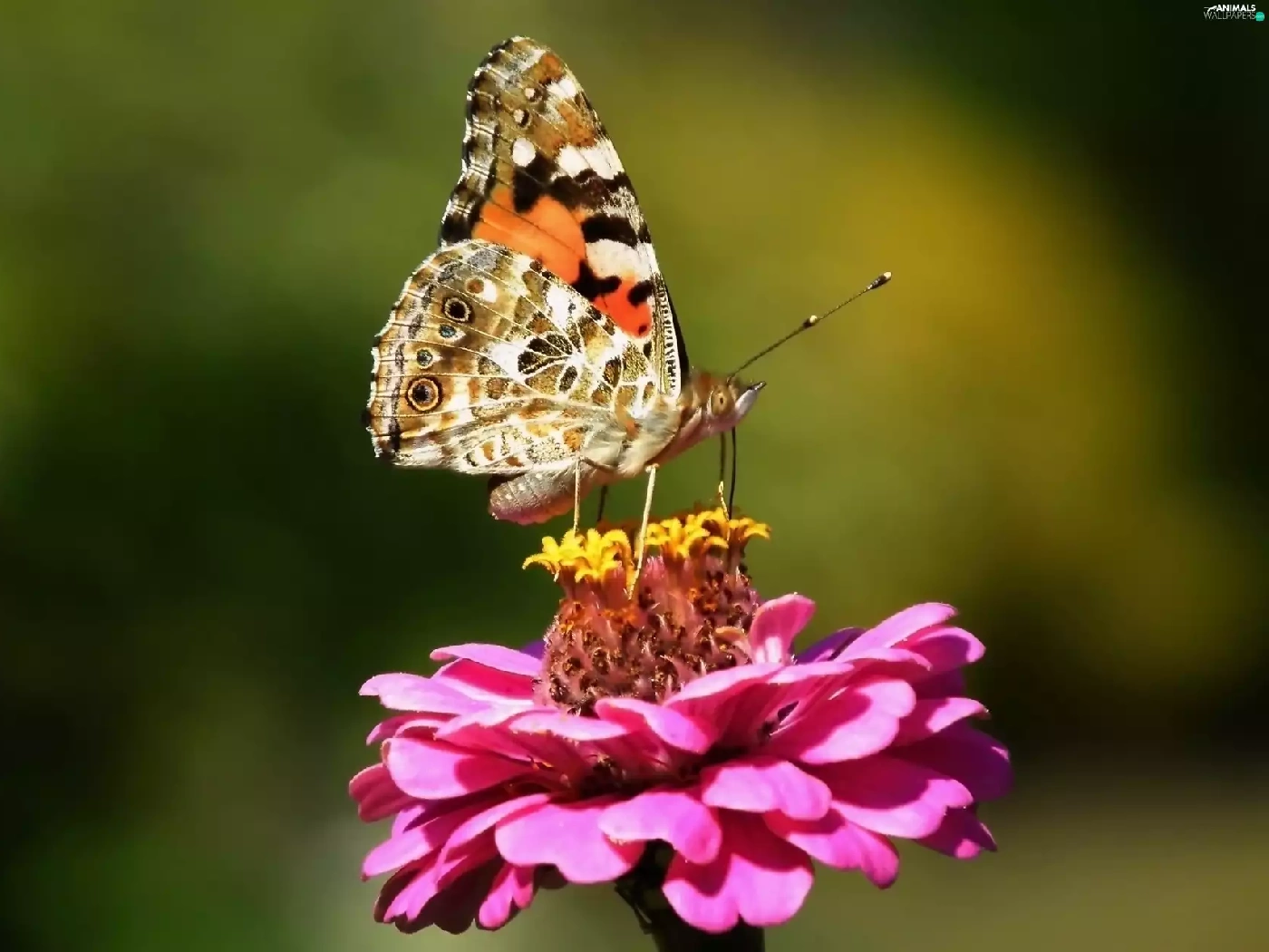 Colourfull Flowers, zinnia, undine, Cardui, butterfly