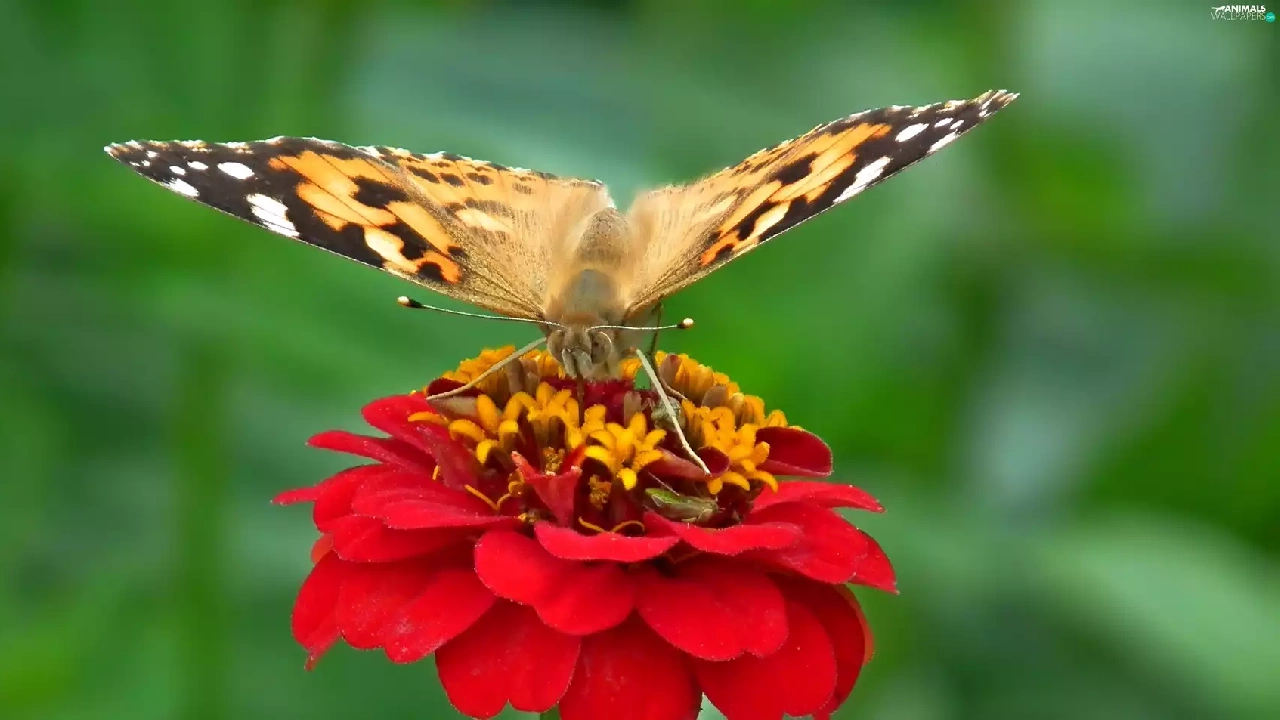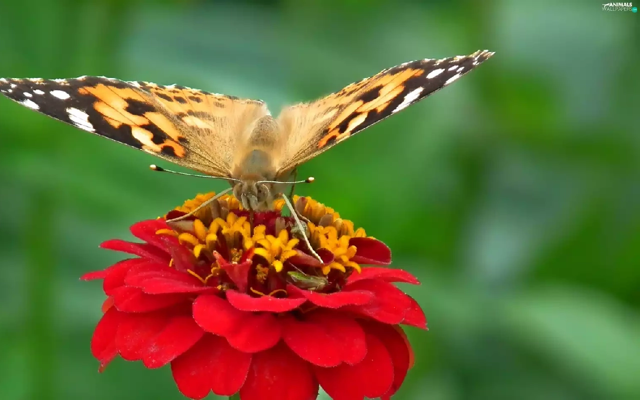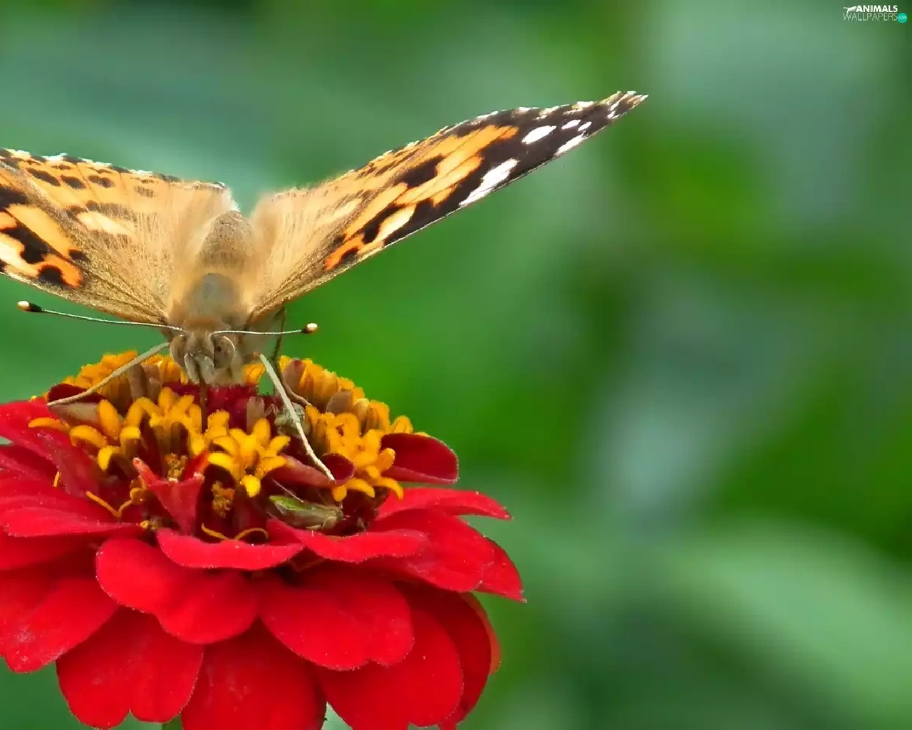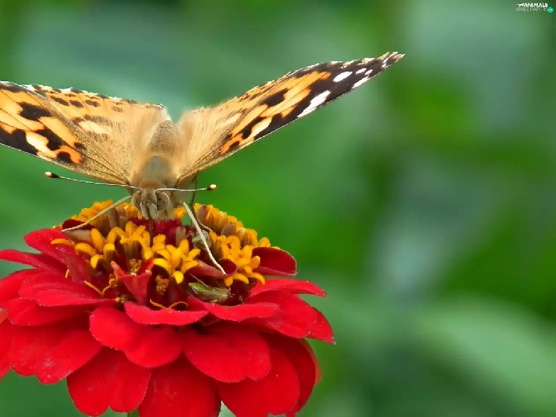 Colourfull Flowers, zinnia, undine, Cardui, butterfly