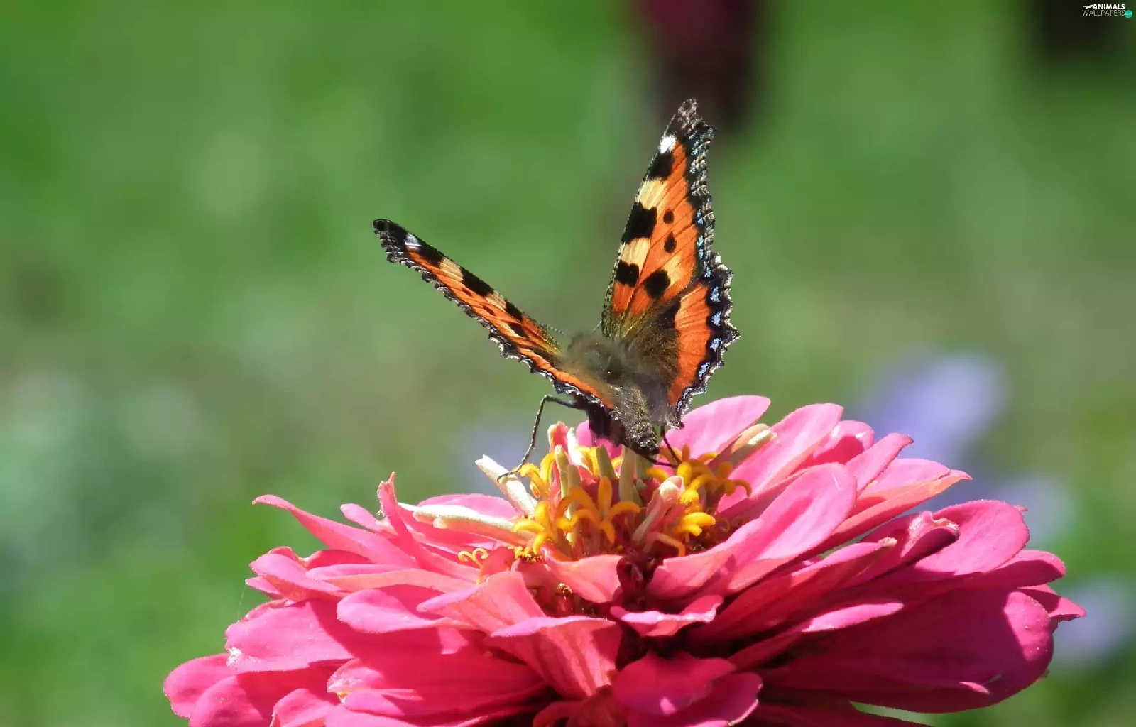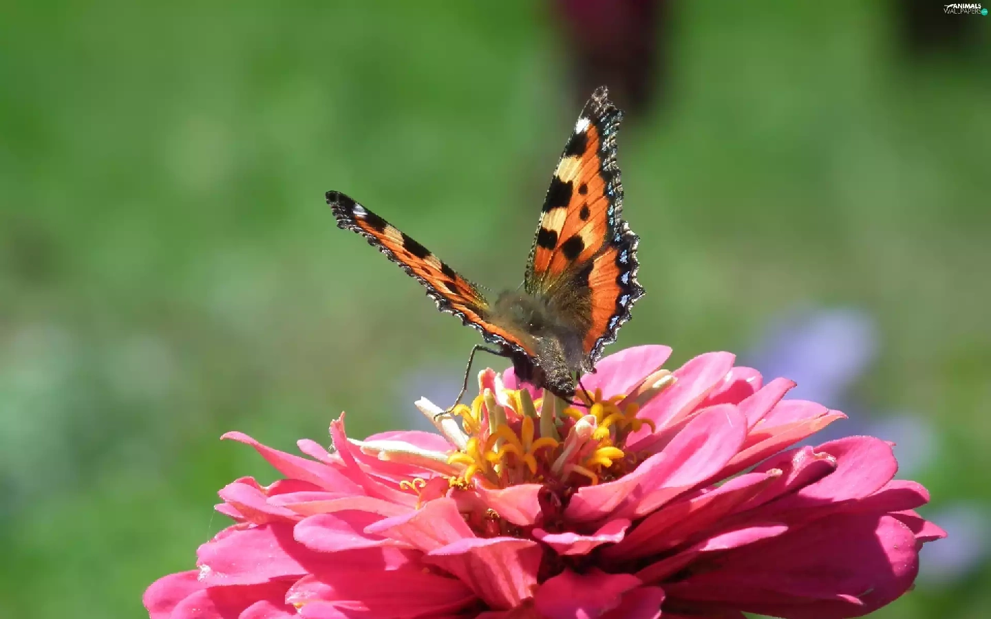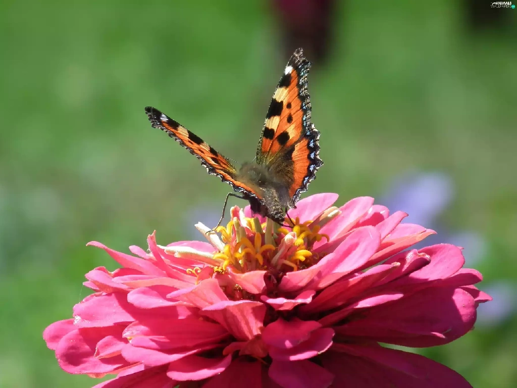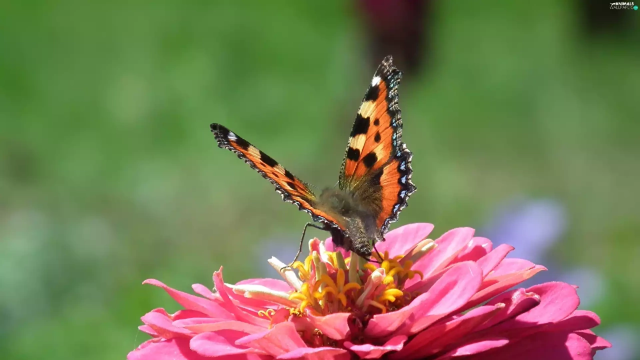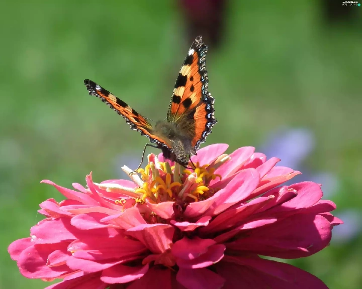 Colourfull Flowers, zinnia, undine, tortoiseshell, butterfly