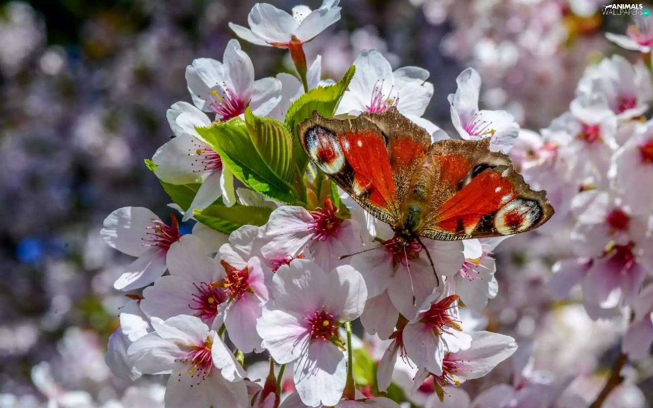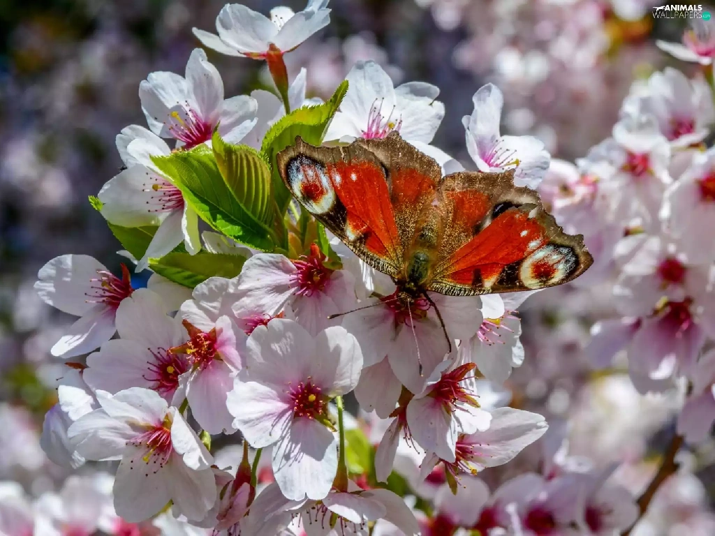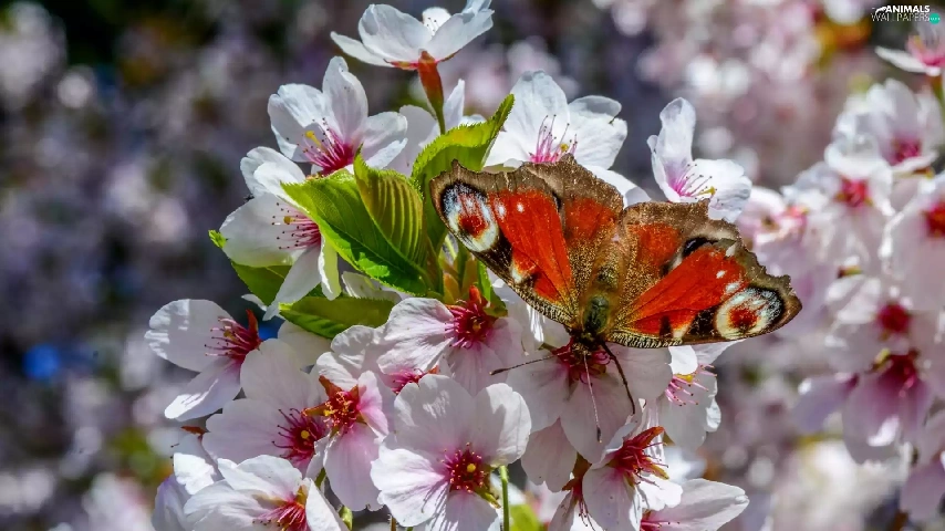 Fruit Tree, Spring, undine, io, butterfly, Flowers