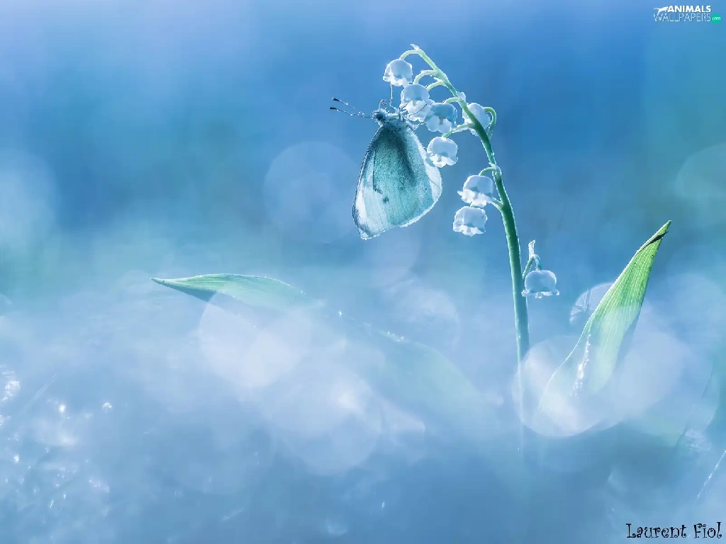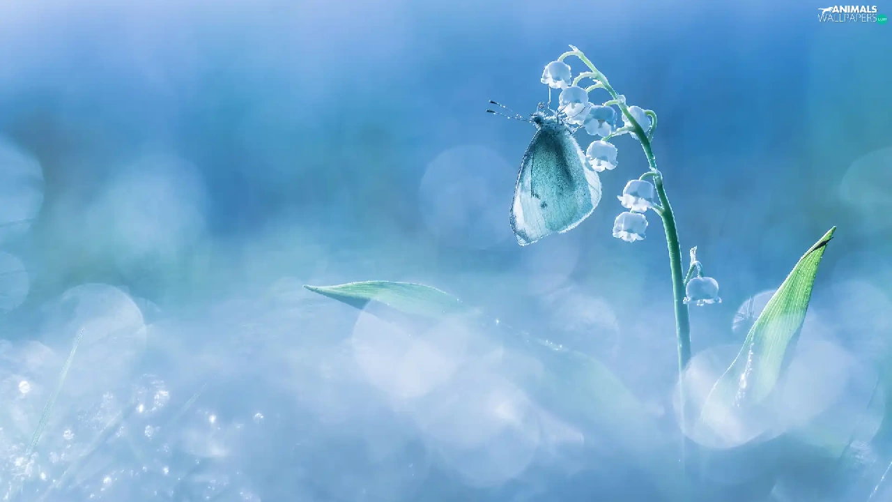 Colourfull Flowers, butterfly, Cabbage, lily of the Valley