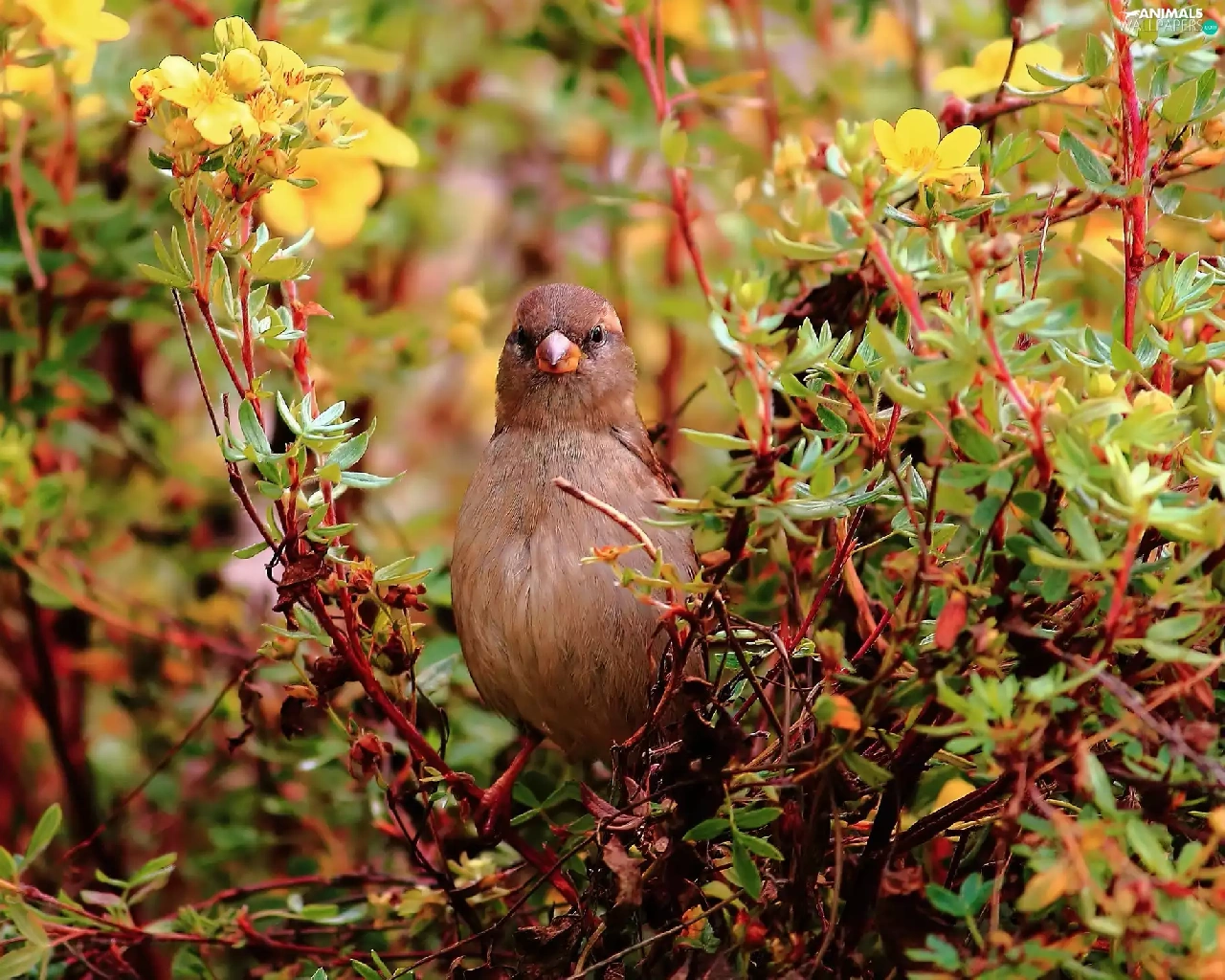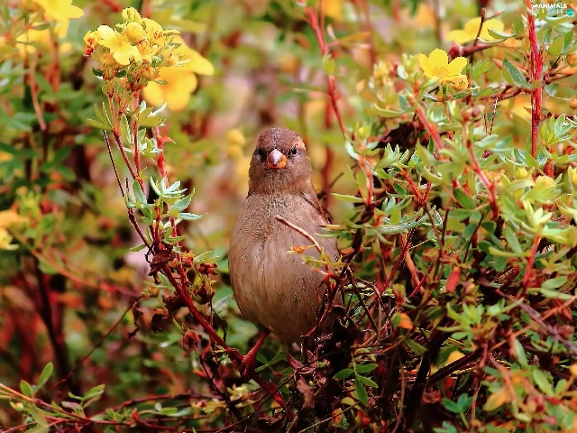 Coloured, VEGETATION, Yellow, Flowers, Bird