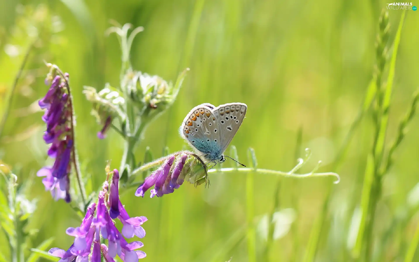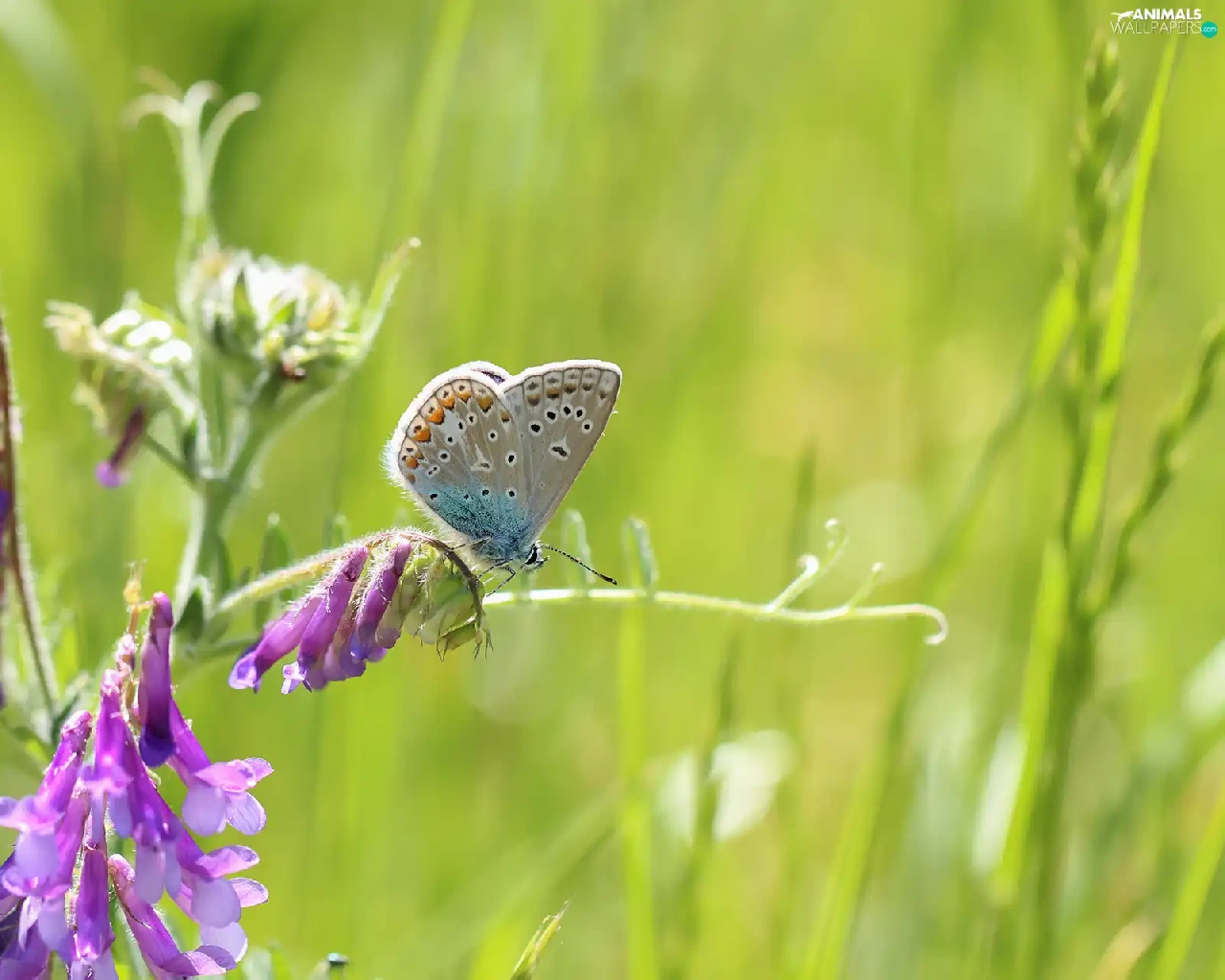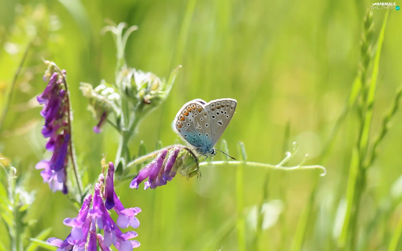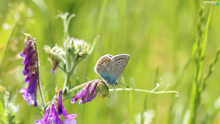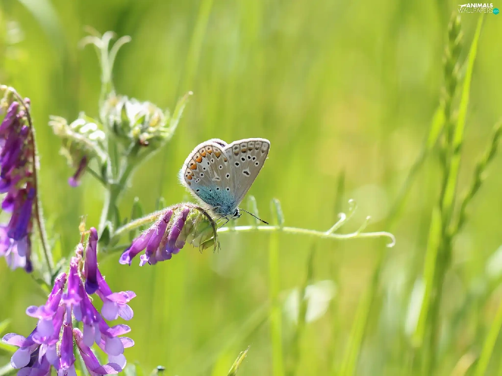 butterfly, Colourfull Flowers, Vetch, Dusky Icarus
