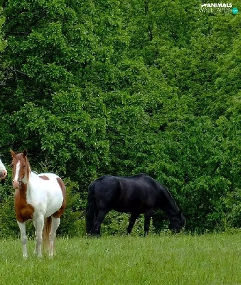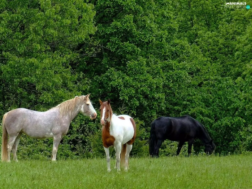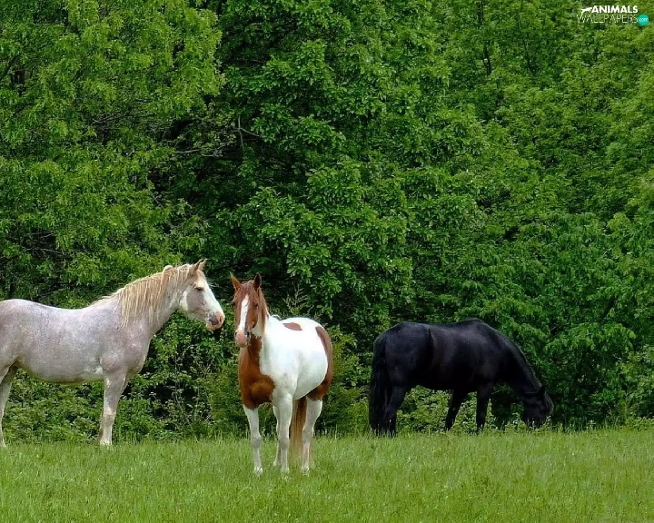 trees, viewes, bloodstock, Meadow, Three