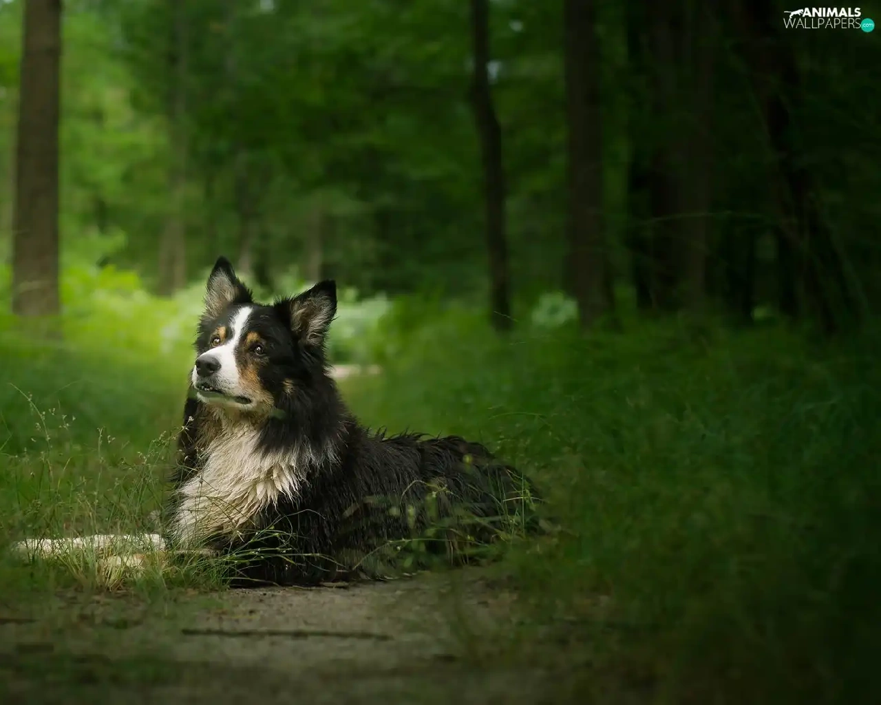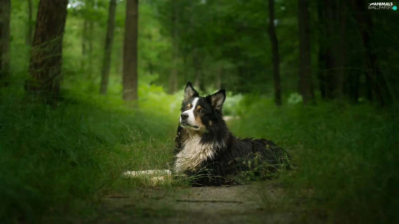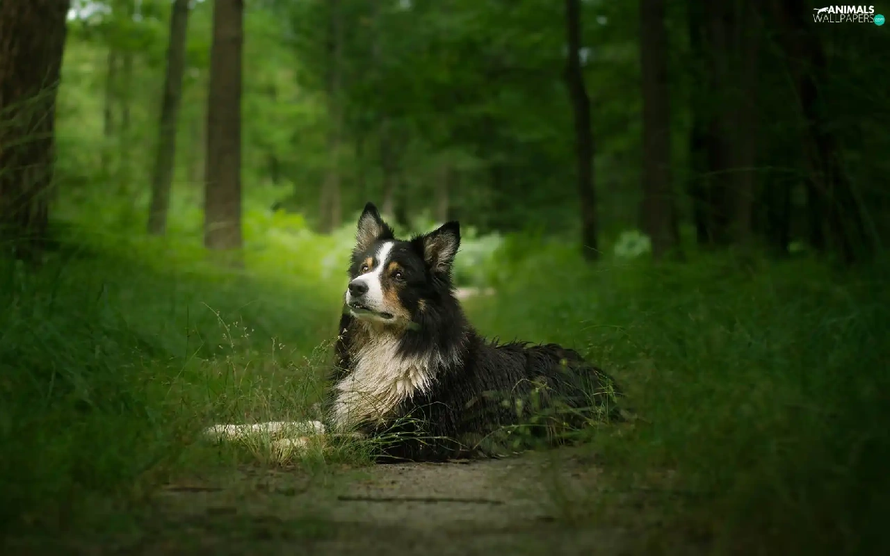 viewes, grass, Border Collie, trees, dog