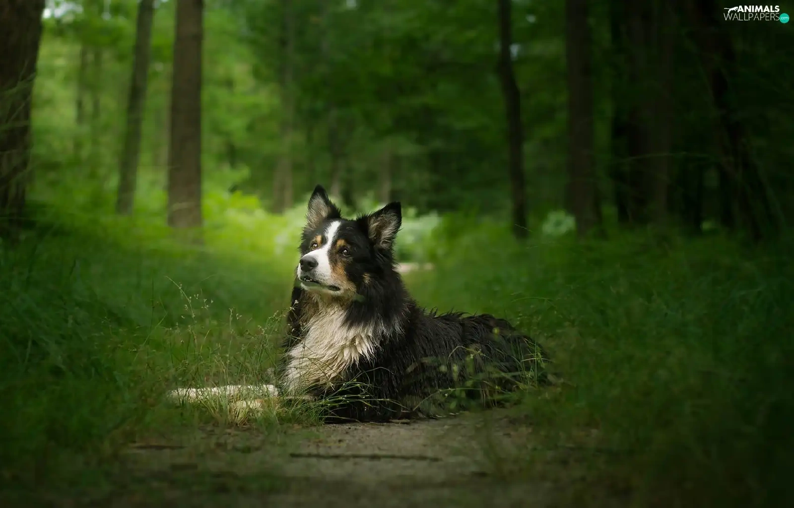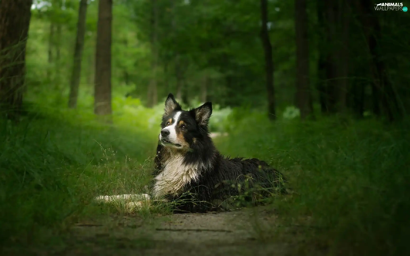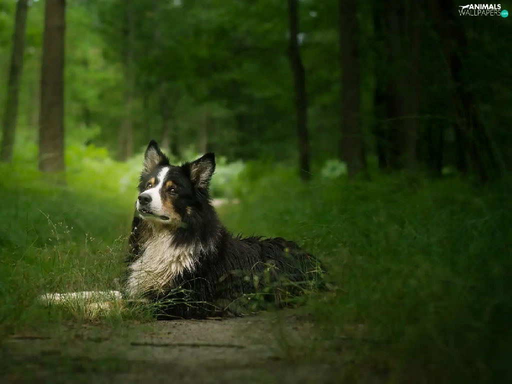 viewes, grass, Border Collie, trees, dog