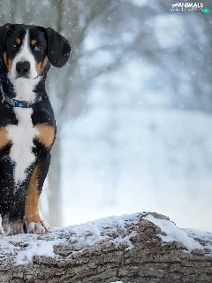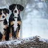Entlebucher, Two cars, viewes, winter, trees, Dogs