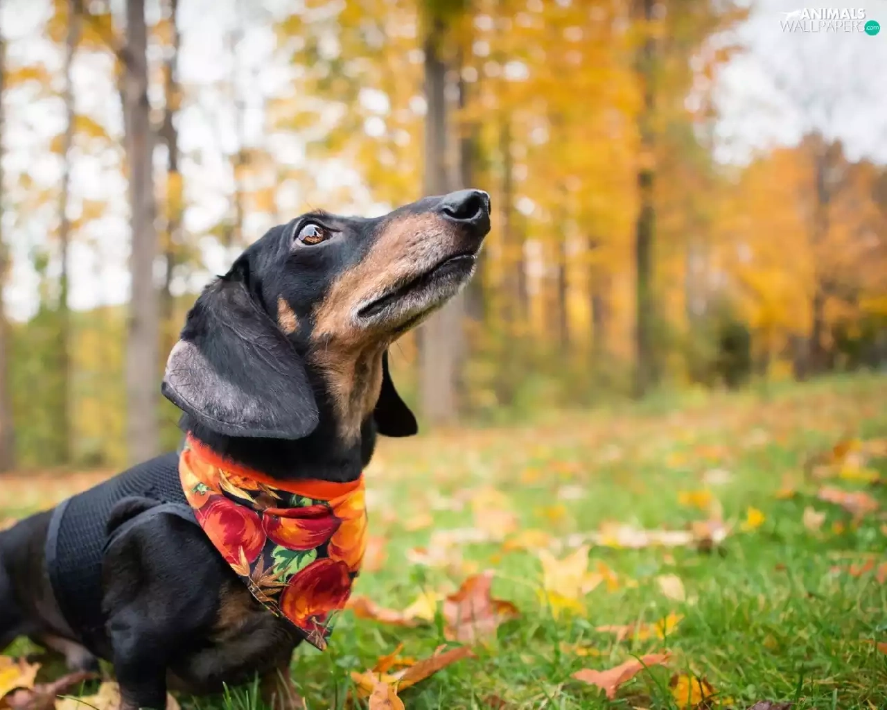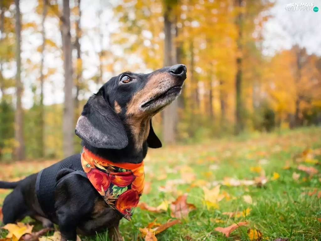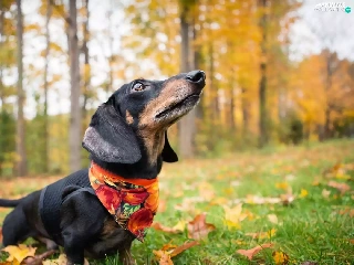 trees, viewes, dog, forest, dachshund