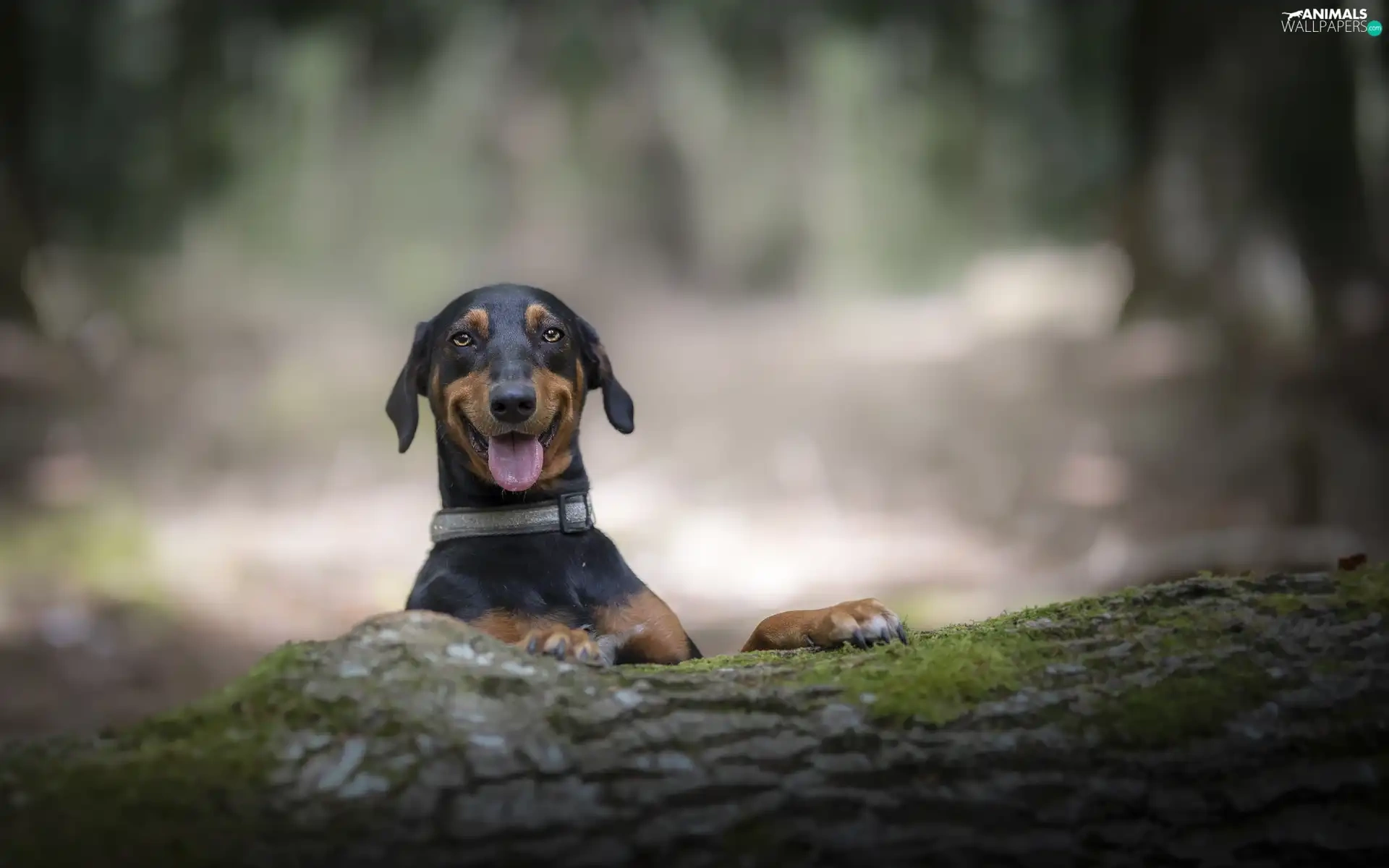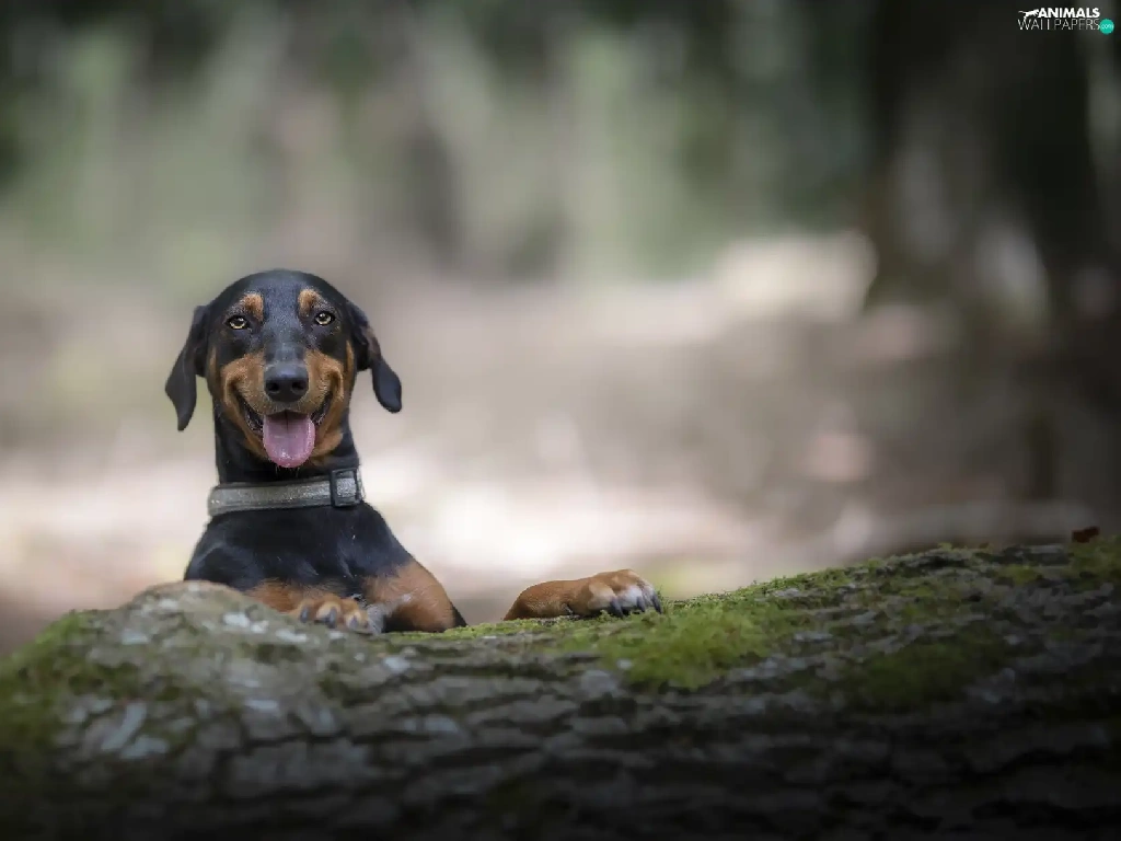 trees, viewes, dog, trunk, smiling