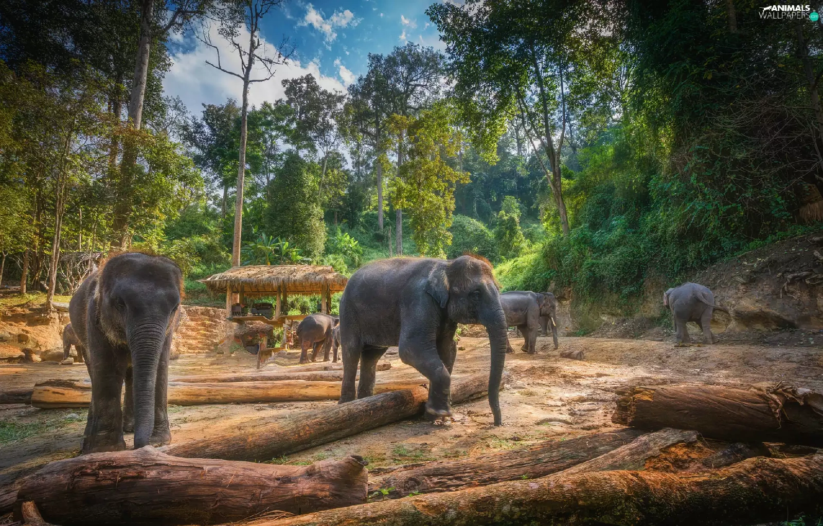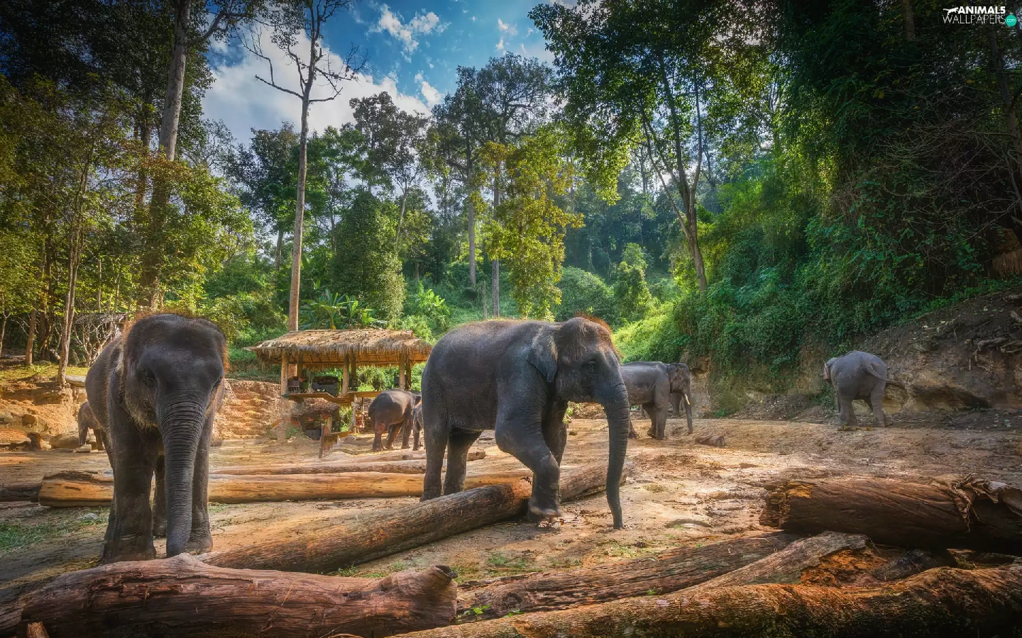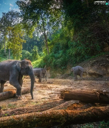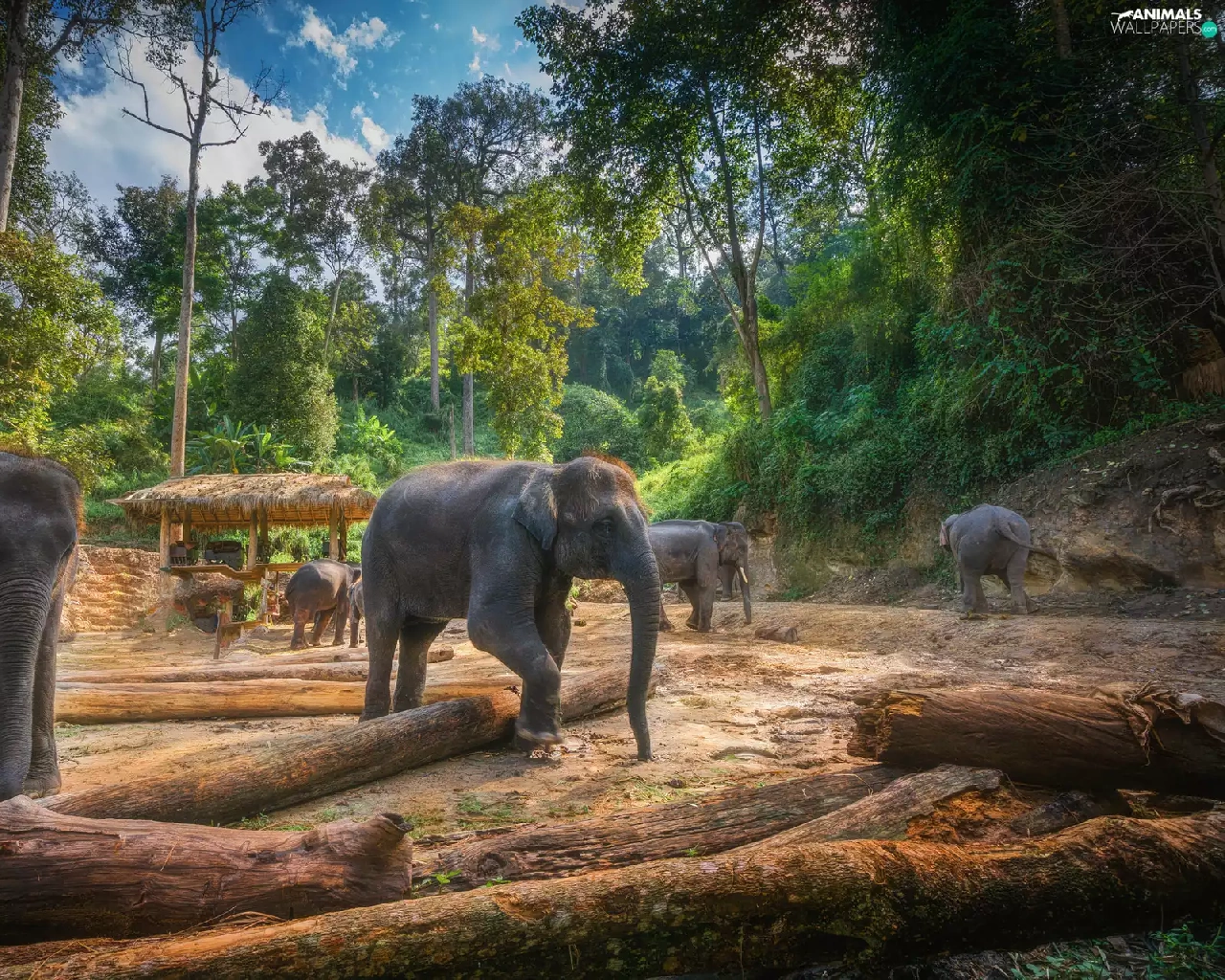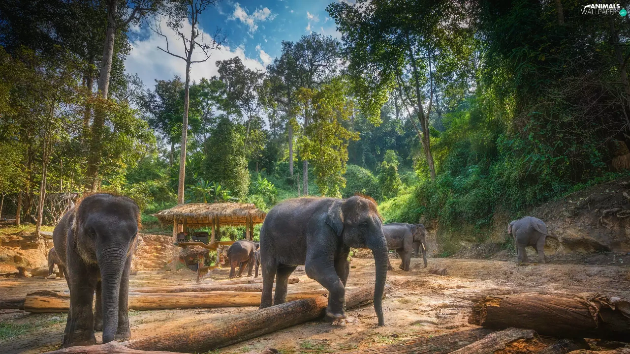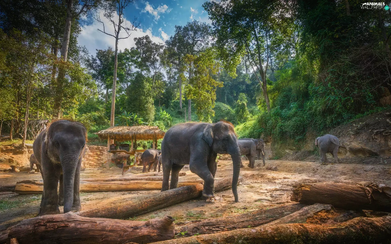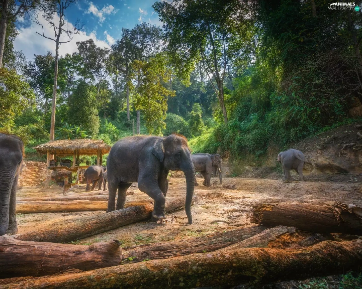 trees, viewes, forest, Logs, Elephants