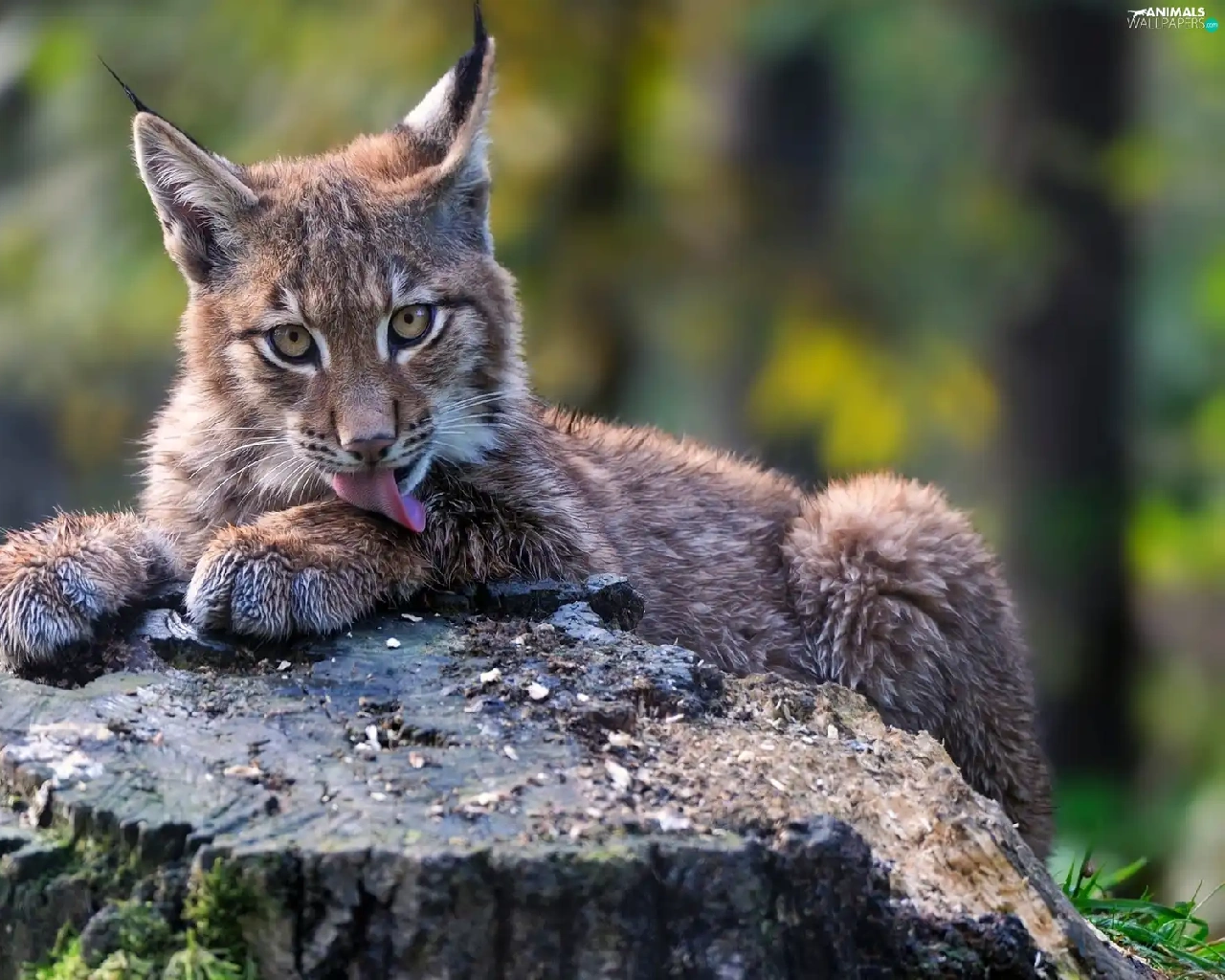 viewes, forest, trunk, trees, Lynx
