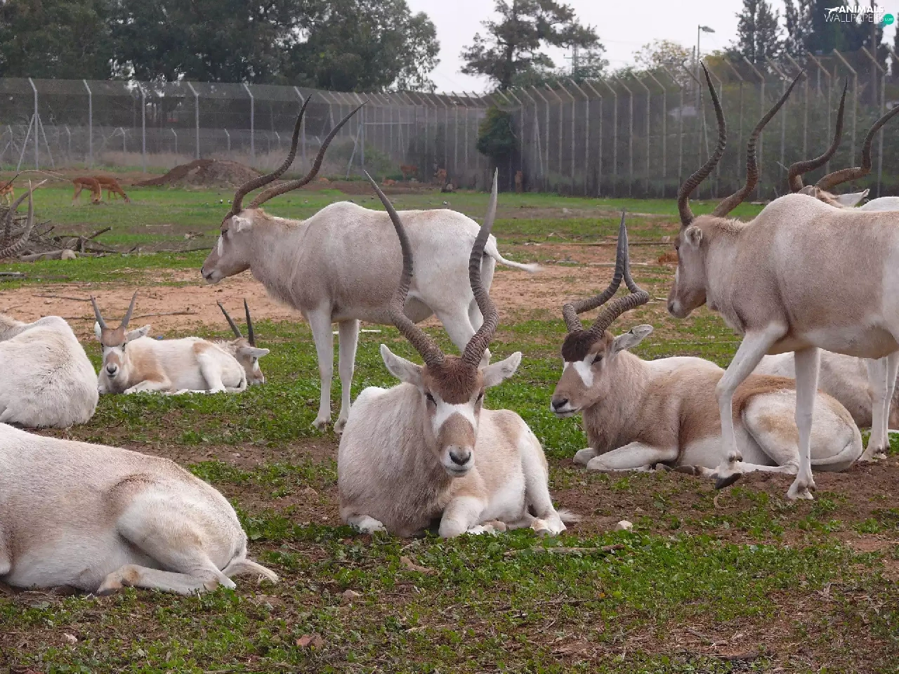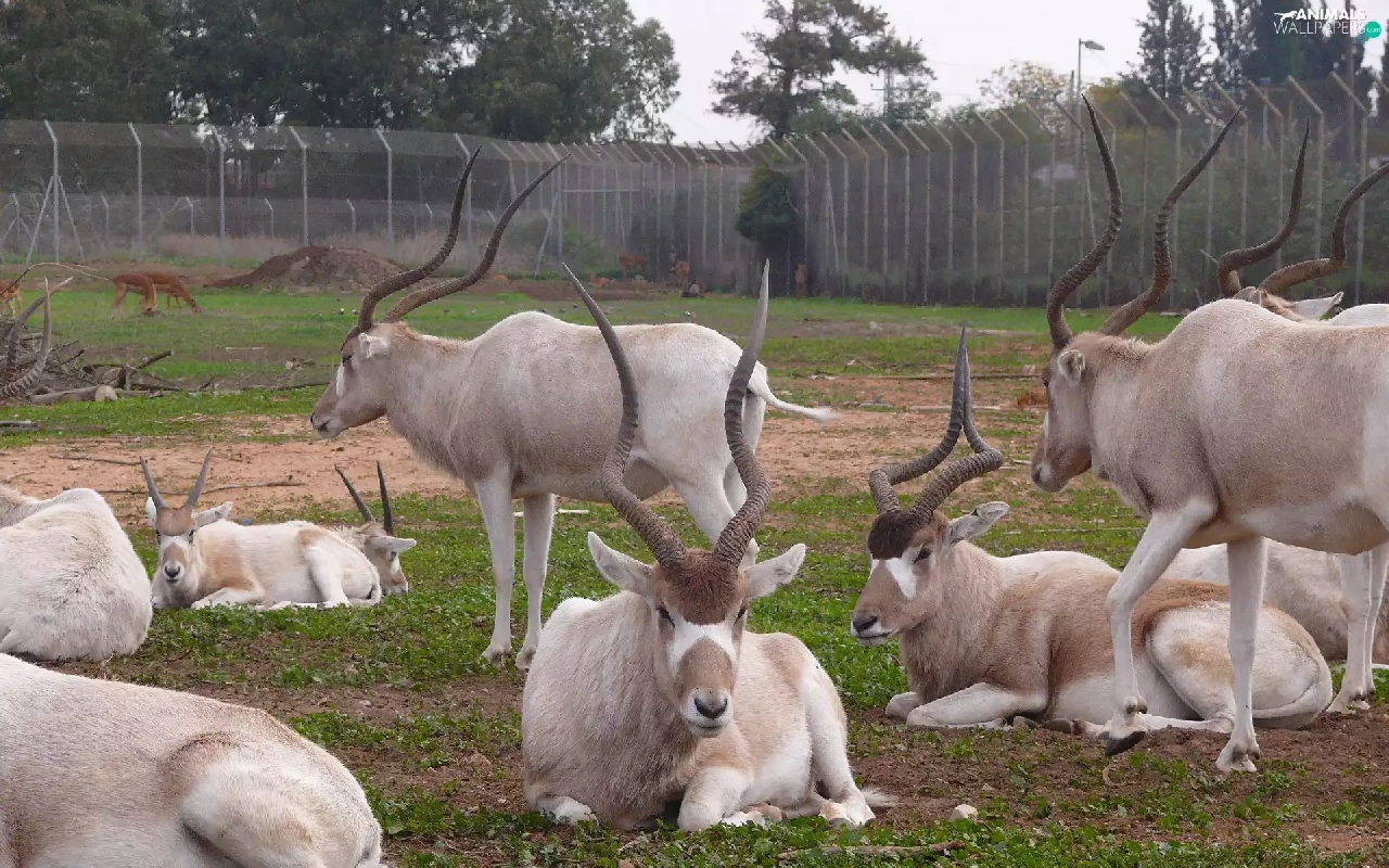trees, viewes, grass, Fance, Antelope