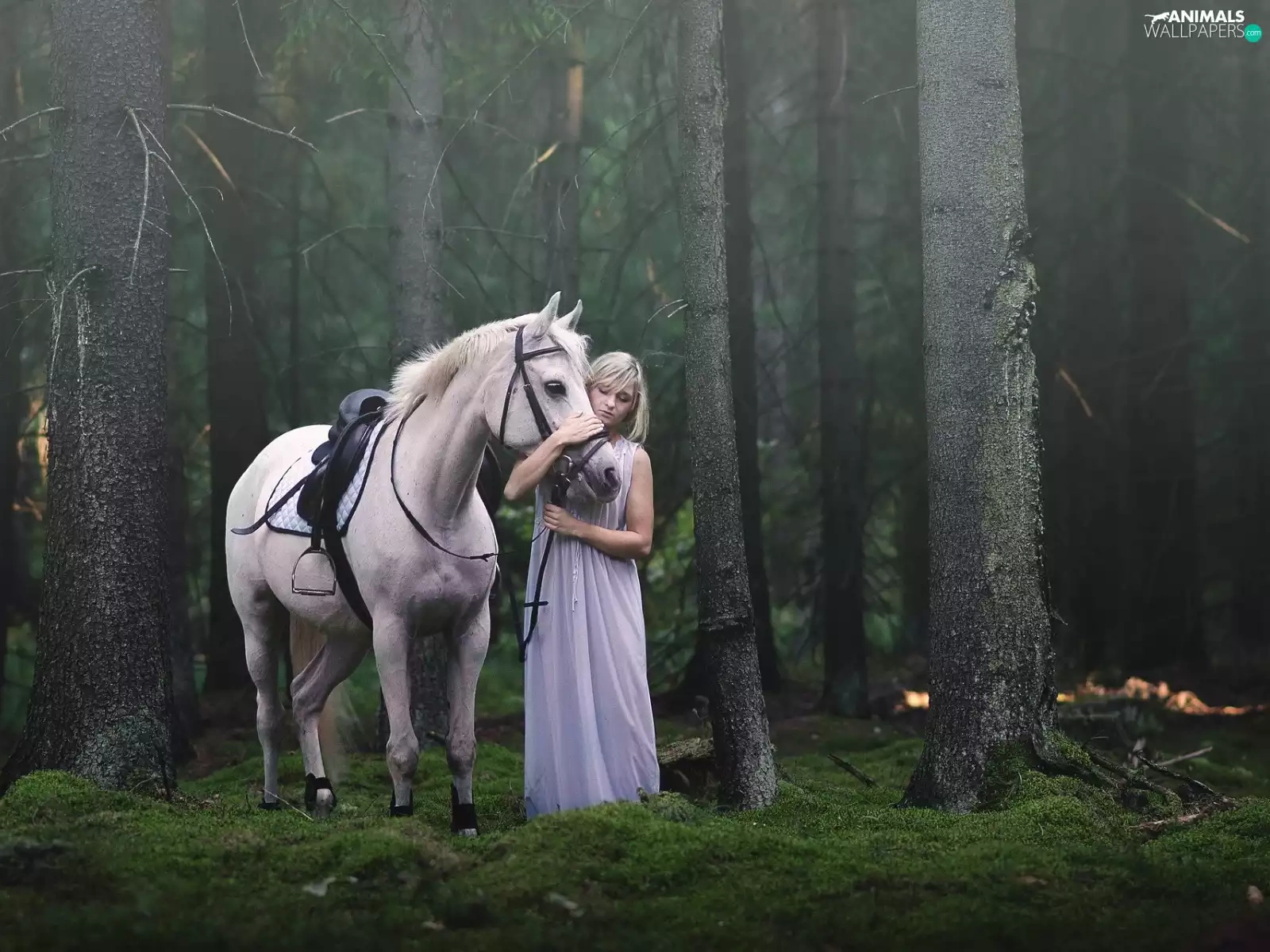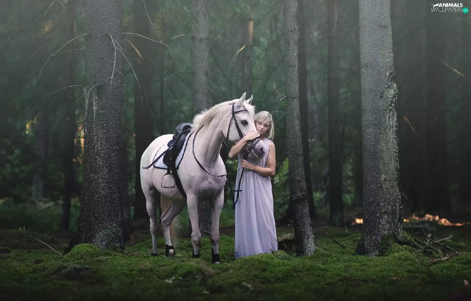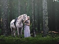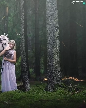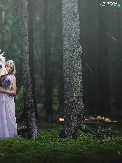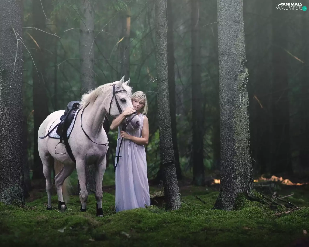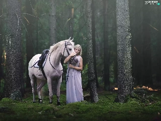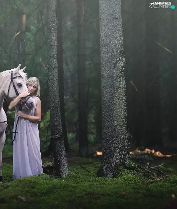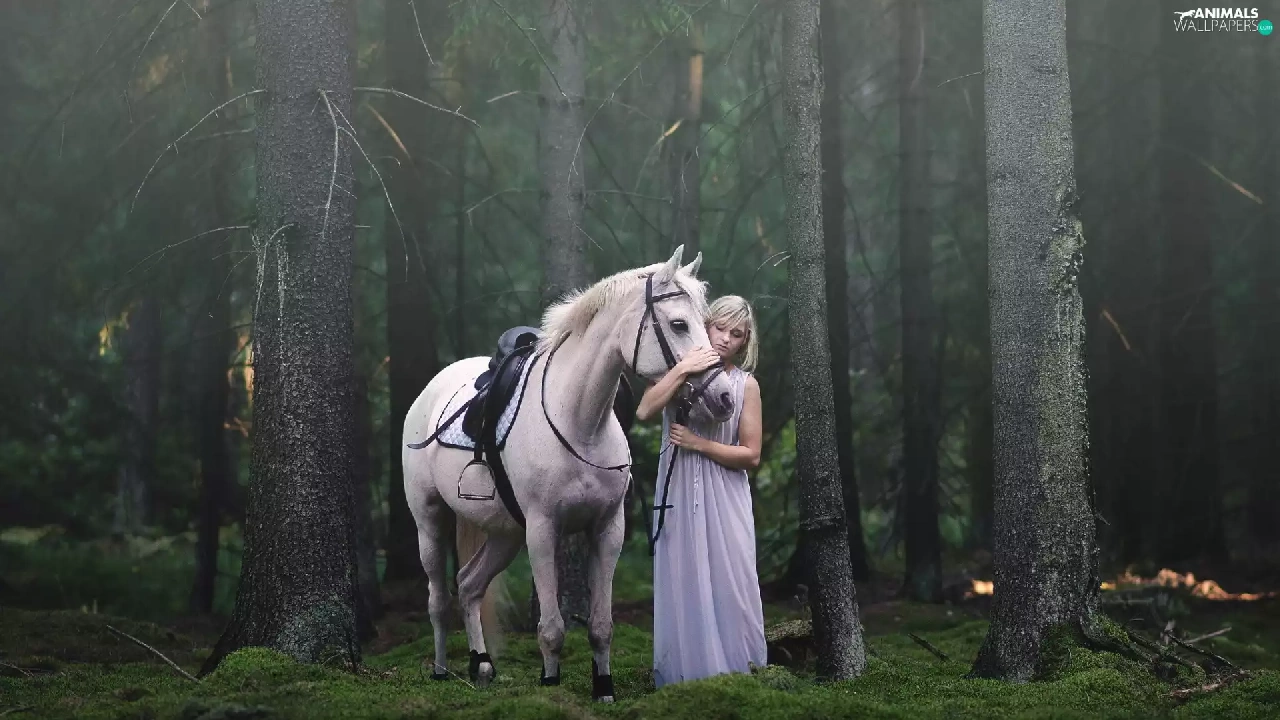 trees, viewes, Horse, forest, Women