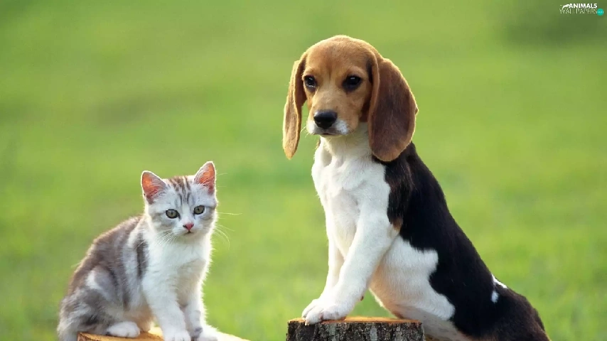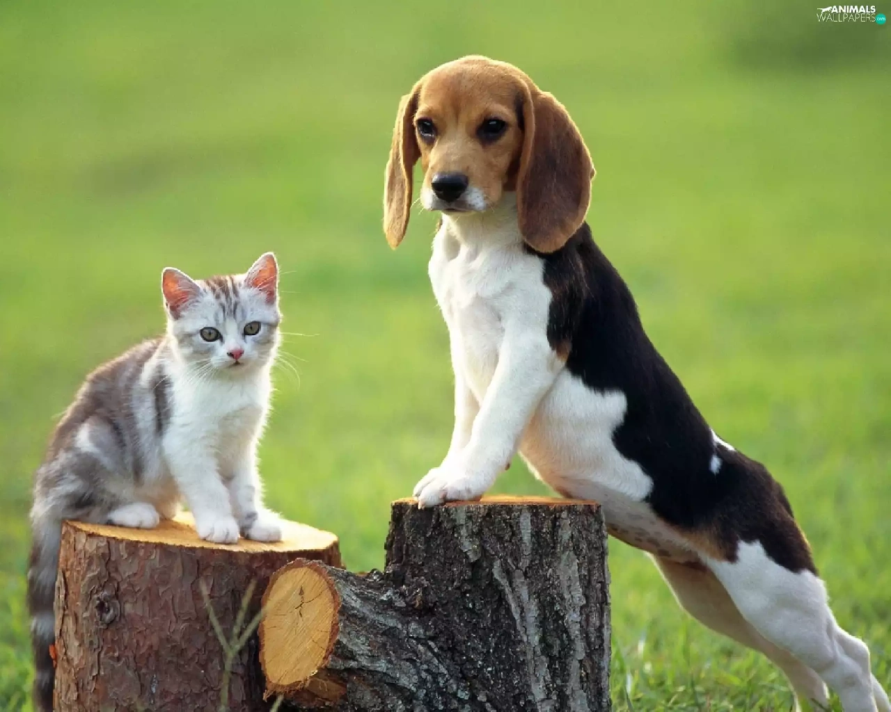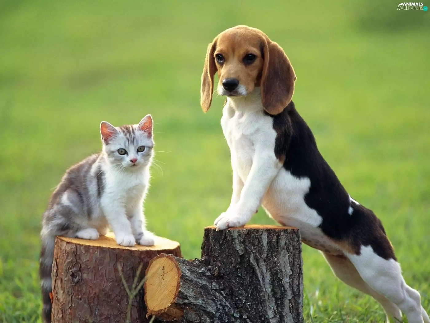 trees, viewes, kitten, Stems, doggy