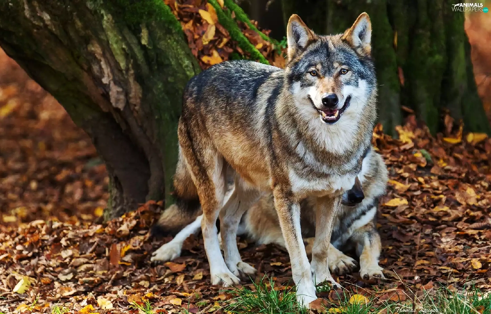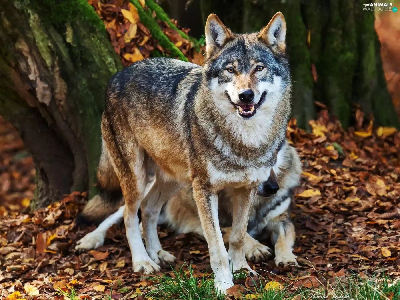 trees, viewes, Leaf, trunk, wolves