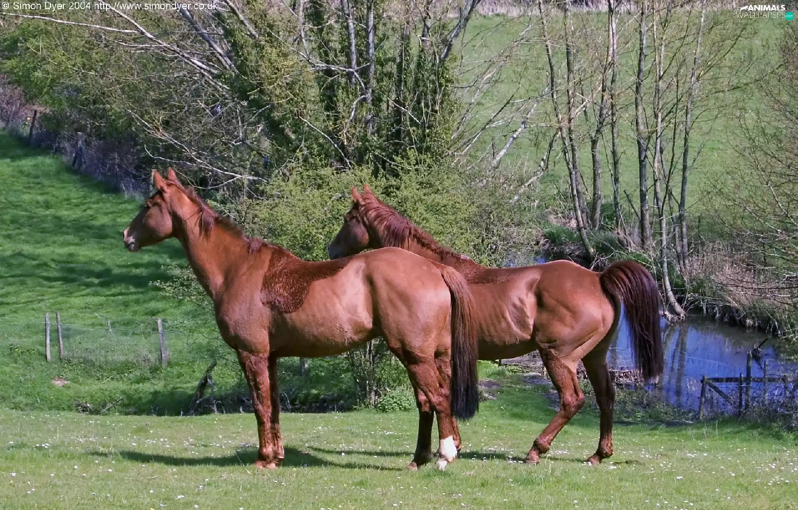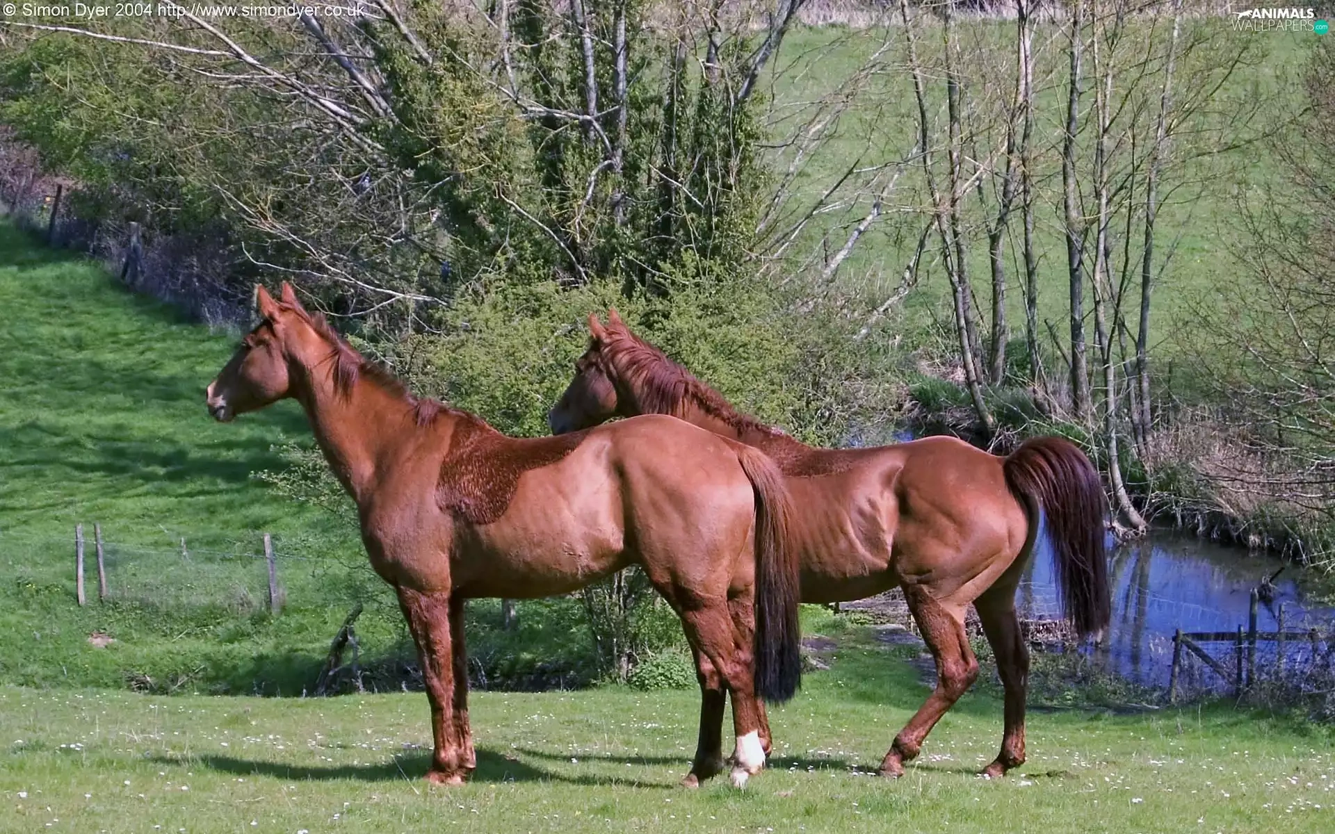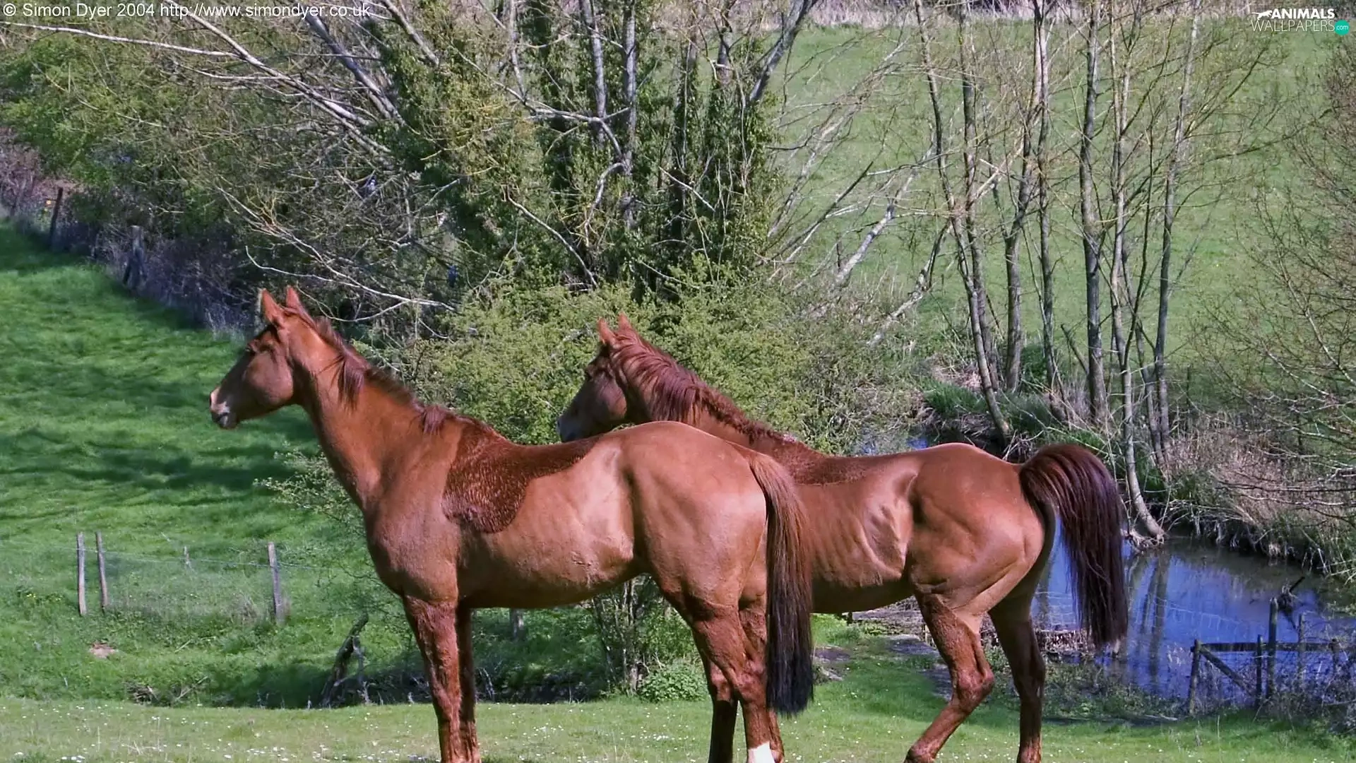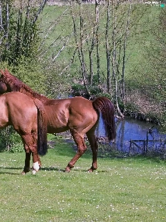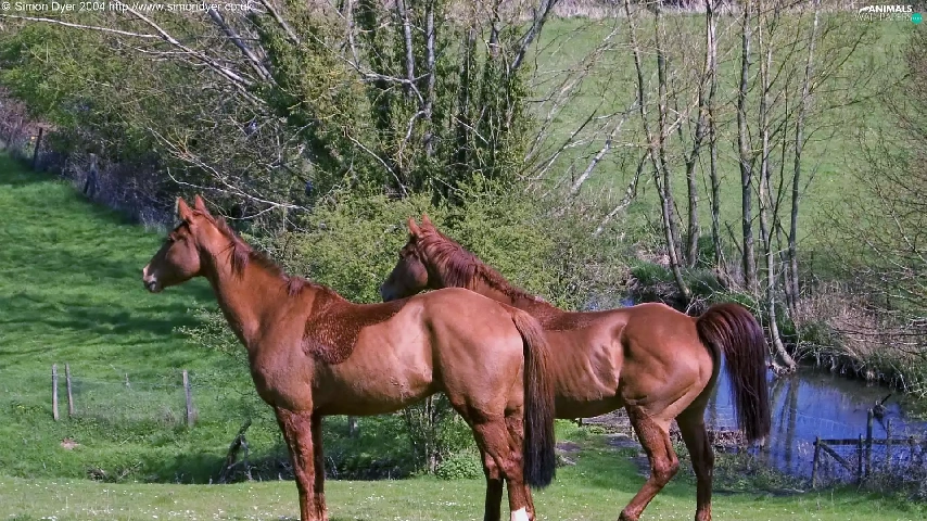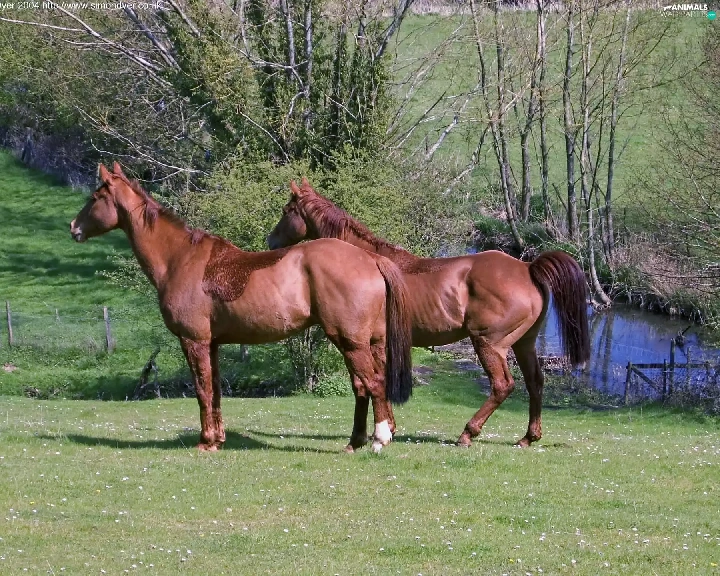 trees, viewes, Meadow, water, bloodstock