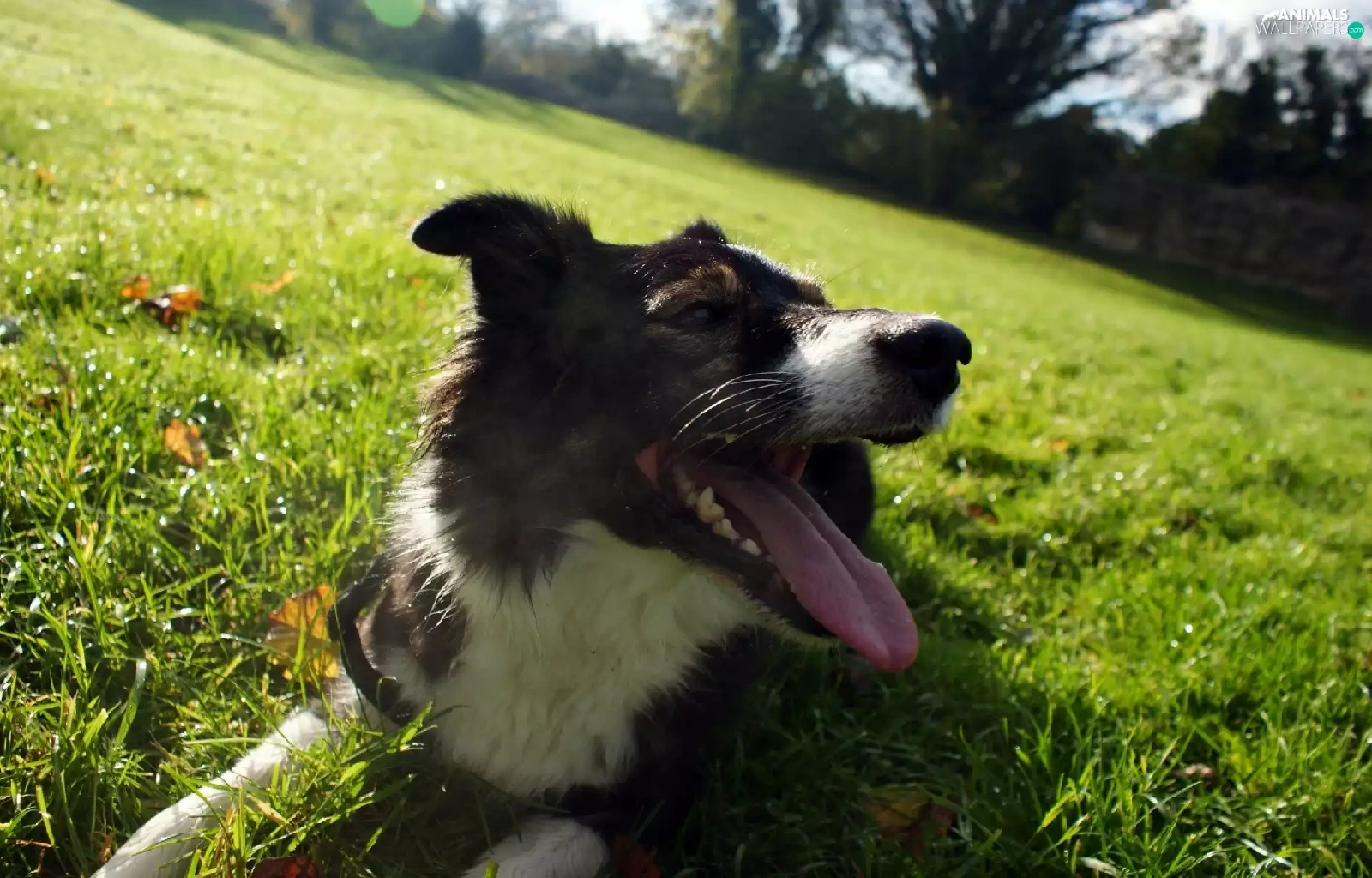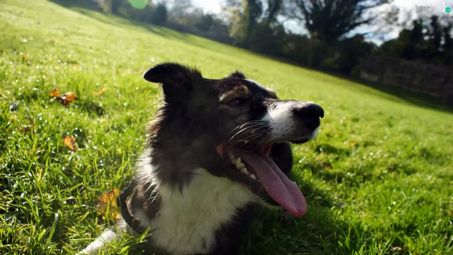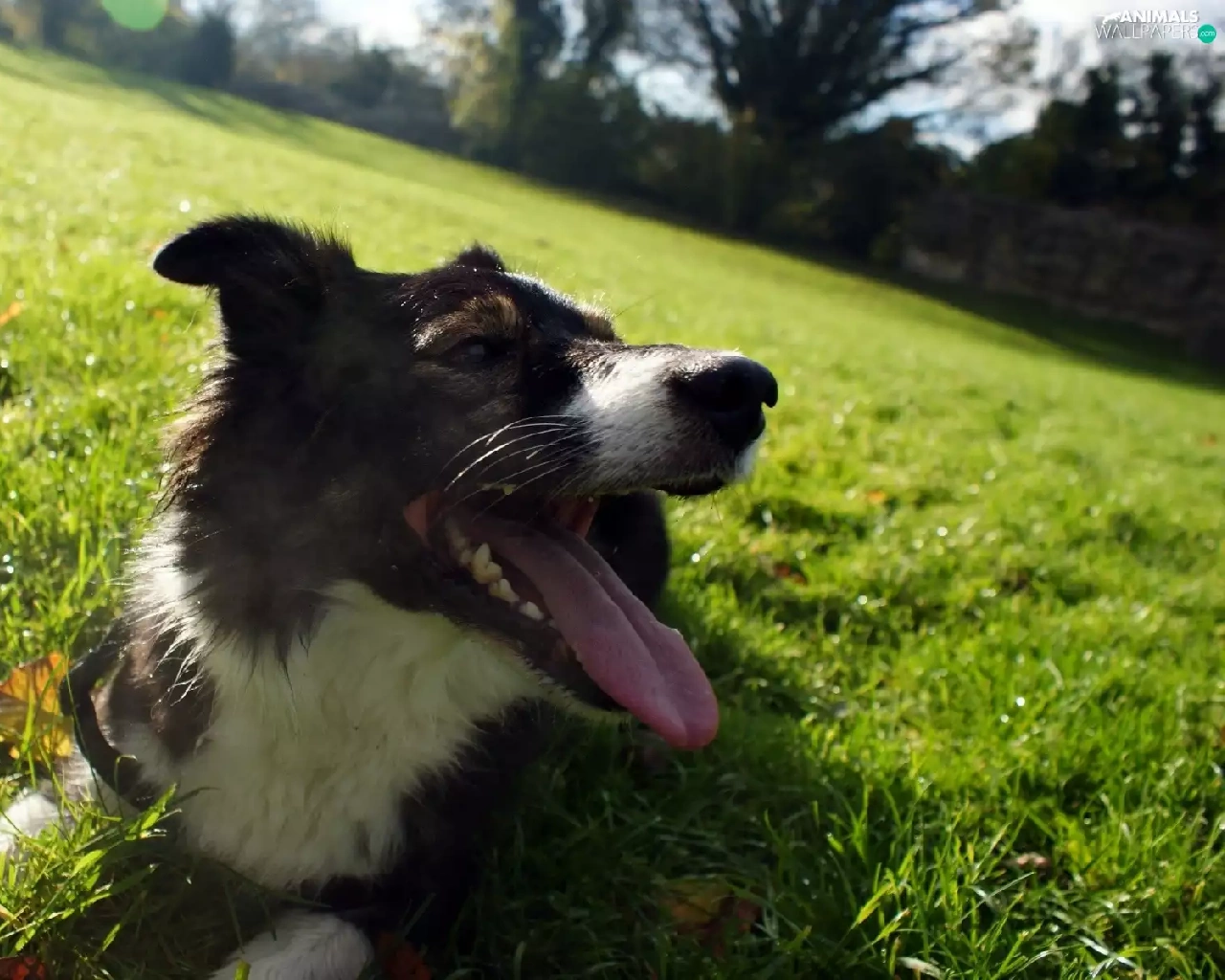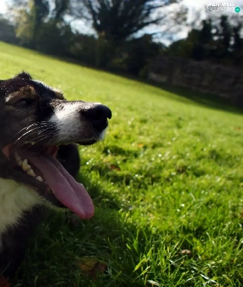 Tounge, dog, trees, viewes, Meadow, outstanding