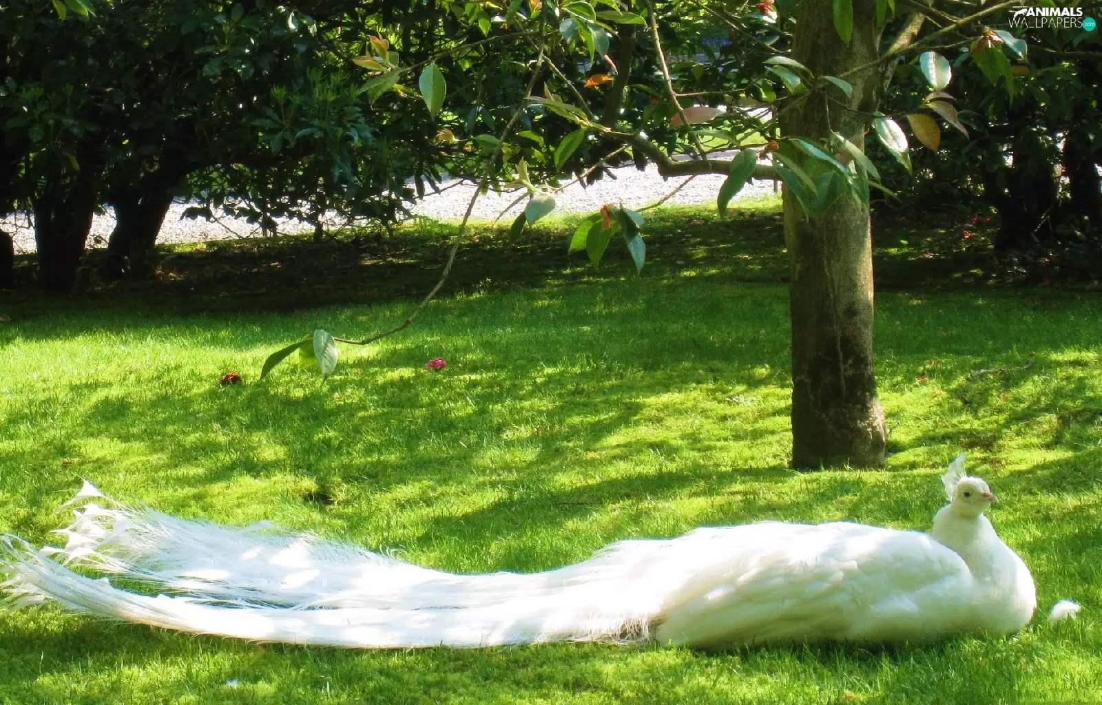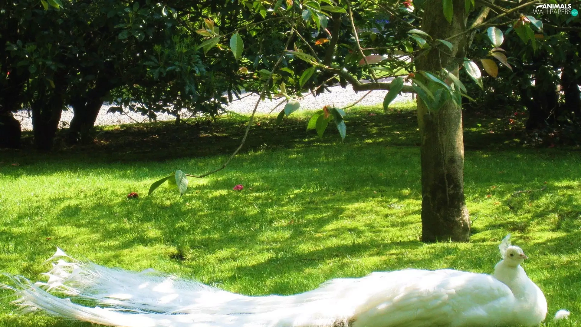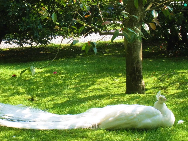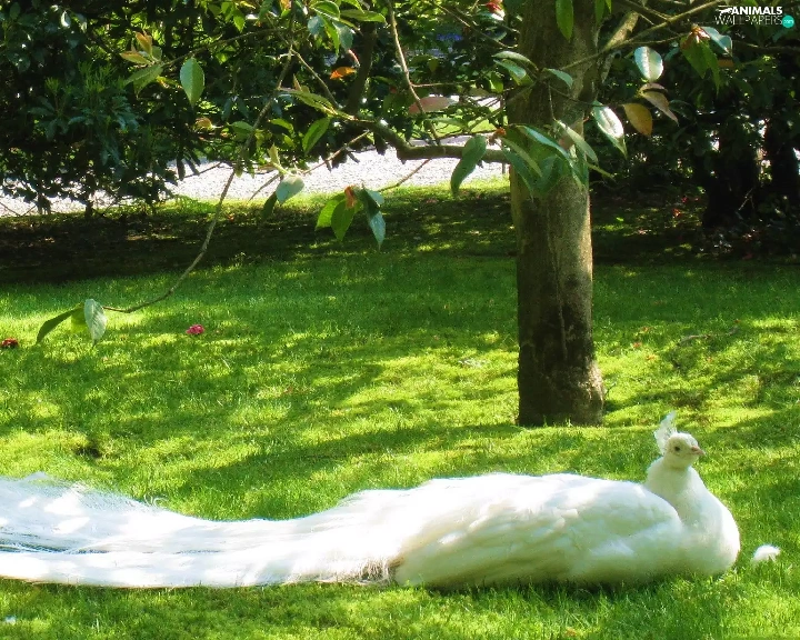 trees, viewes, peacock, Park, White