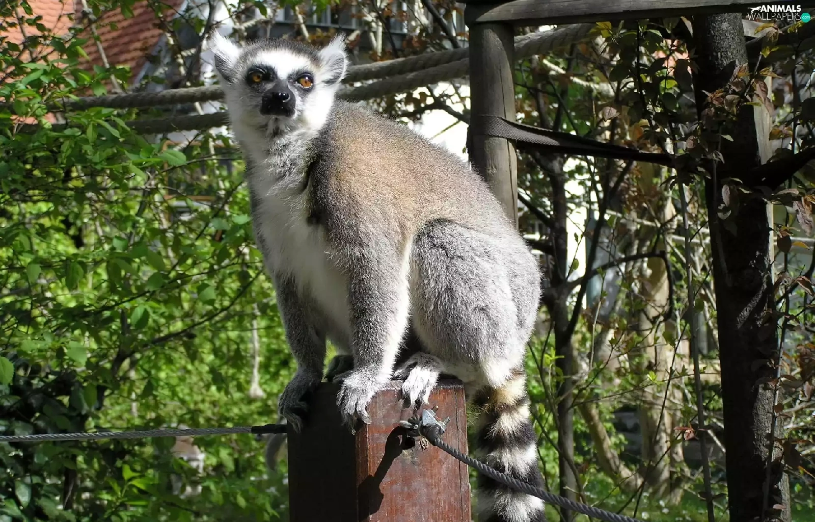 trees, viewes, post, ropes, lemur