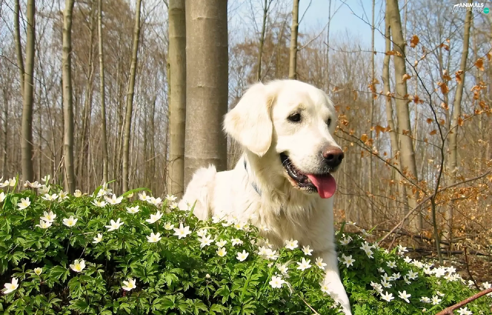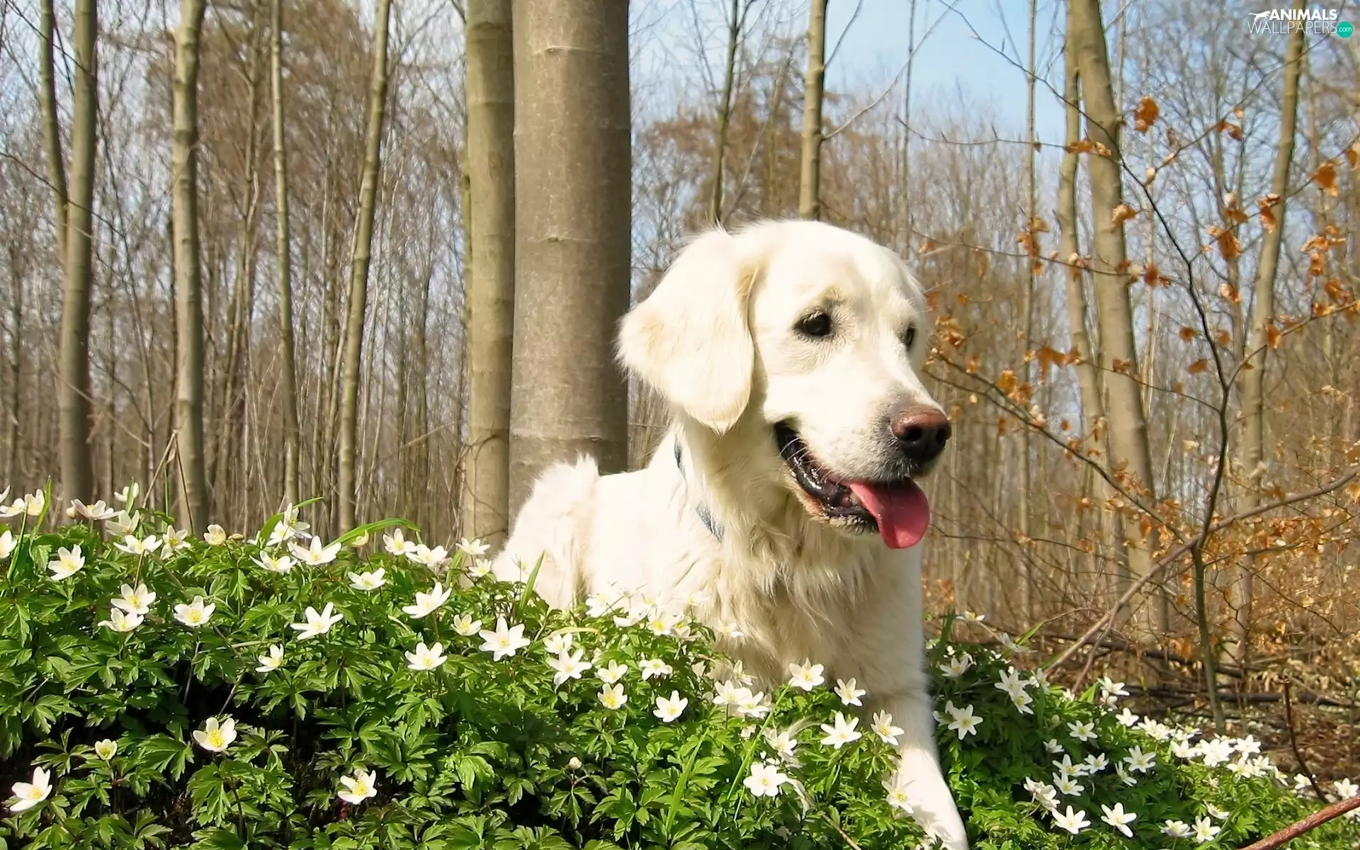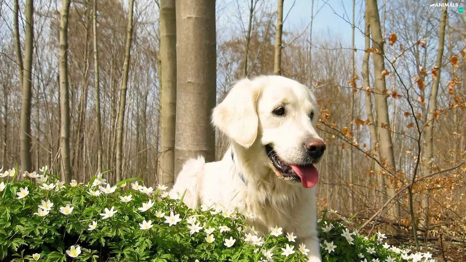 trees, viewes, retriever, Flowers, golden