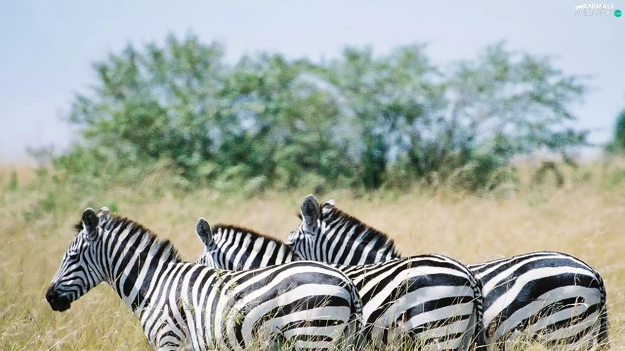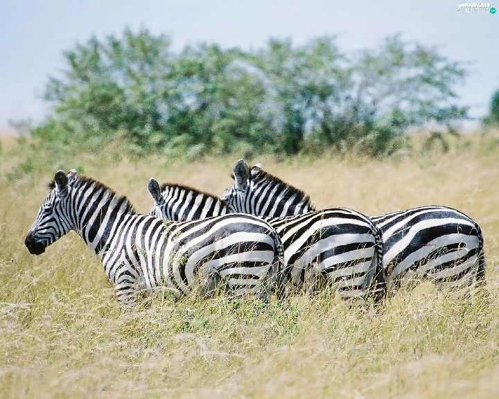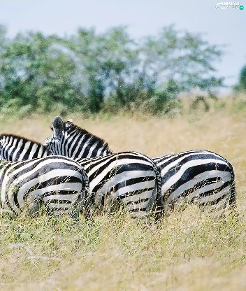 trees, viewes, savanna, grass, zebra
