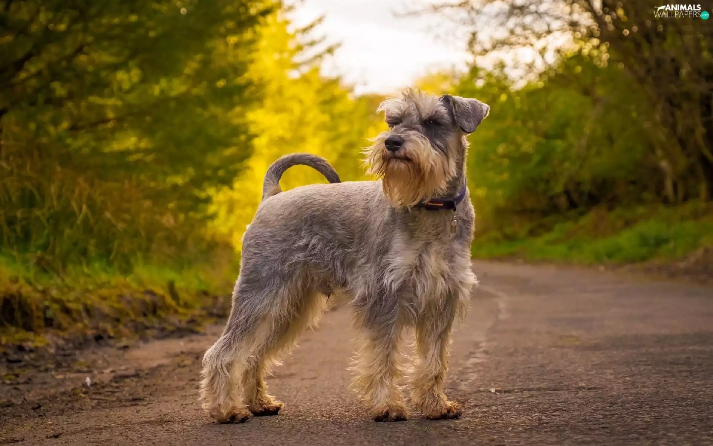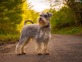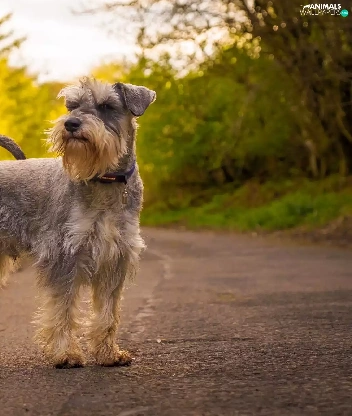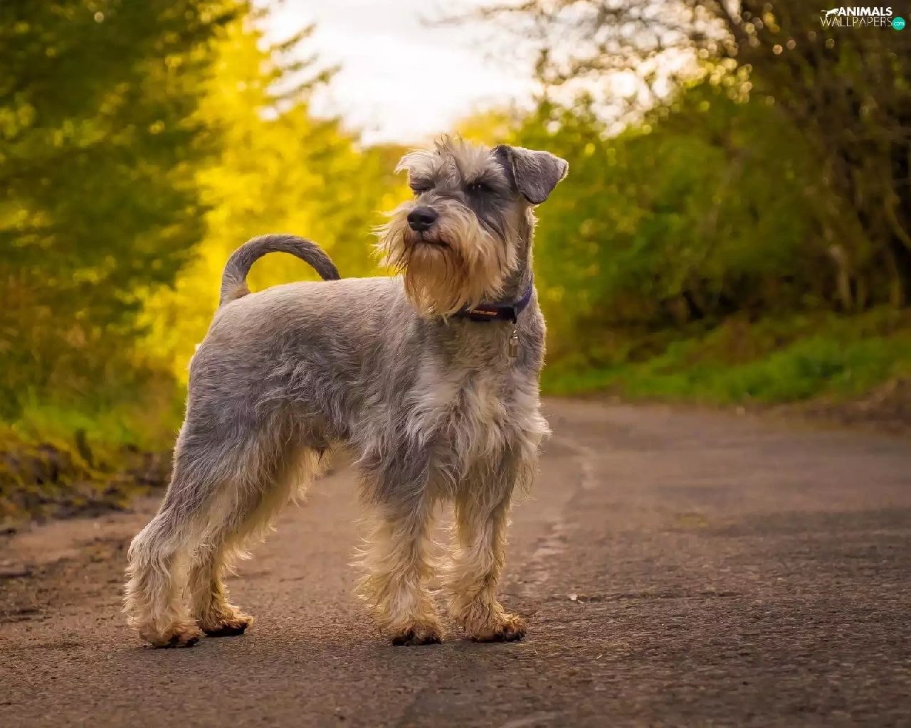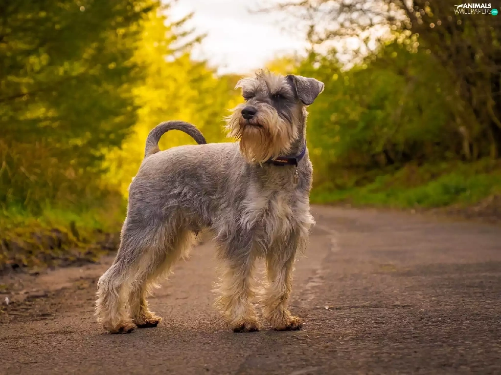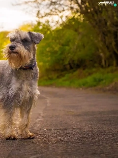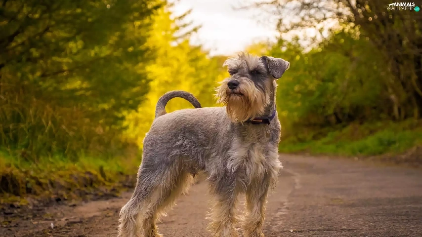 trees, viewes, Schnauzer, Way, dog